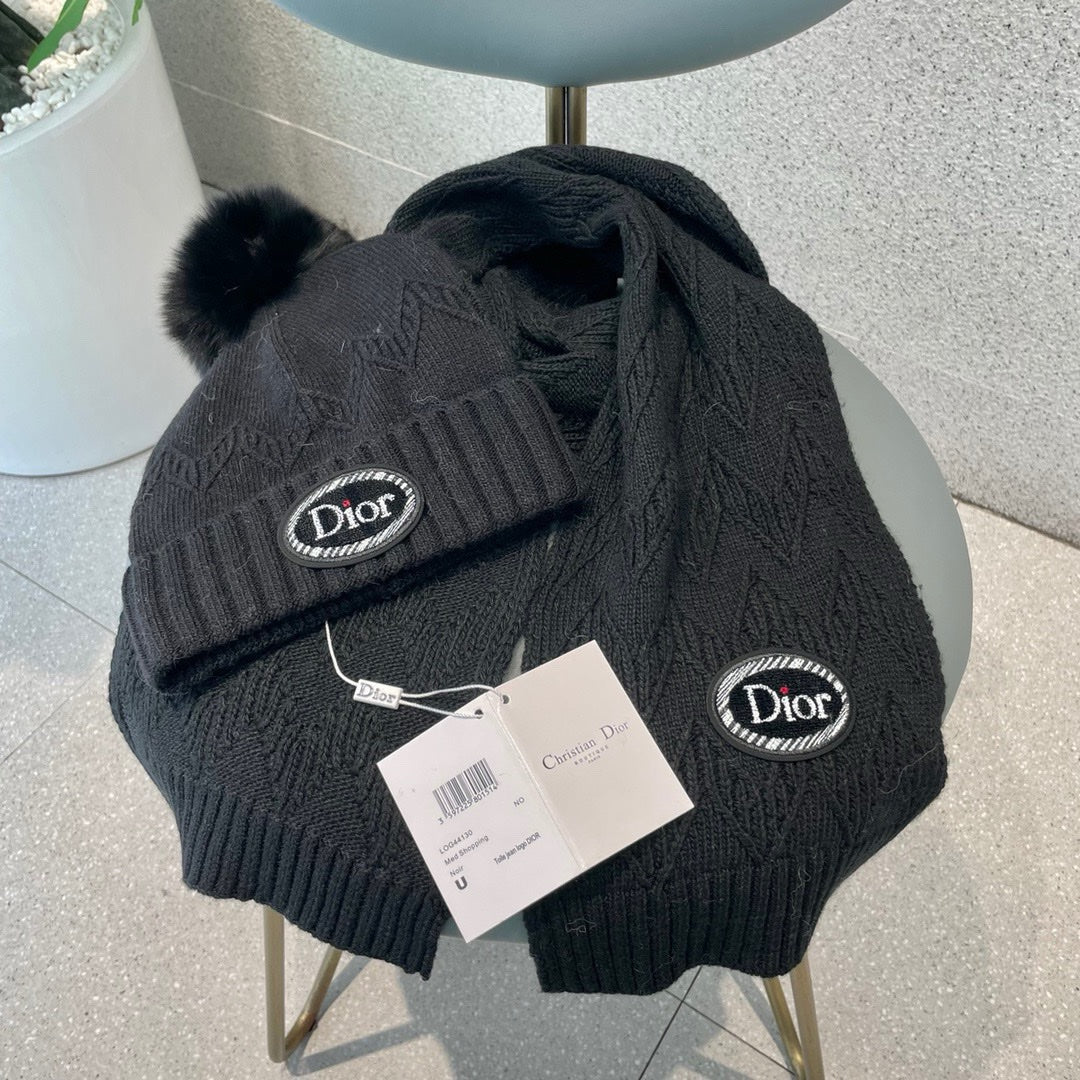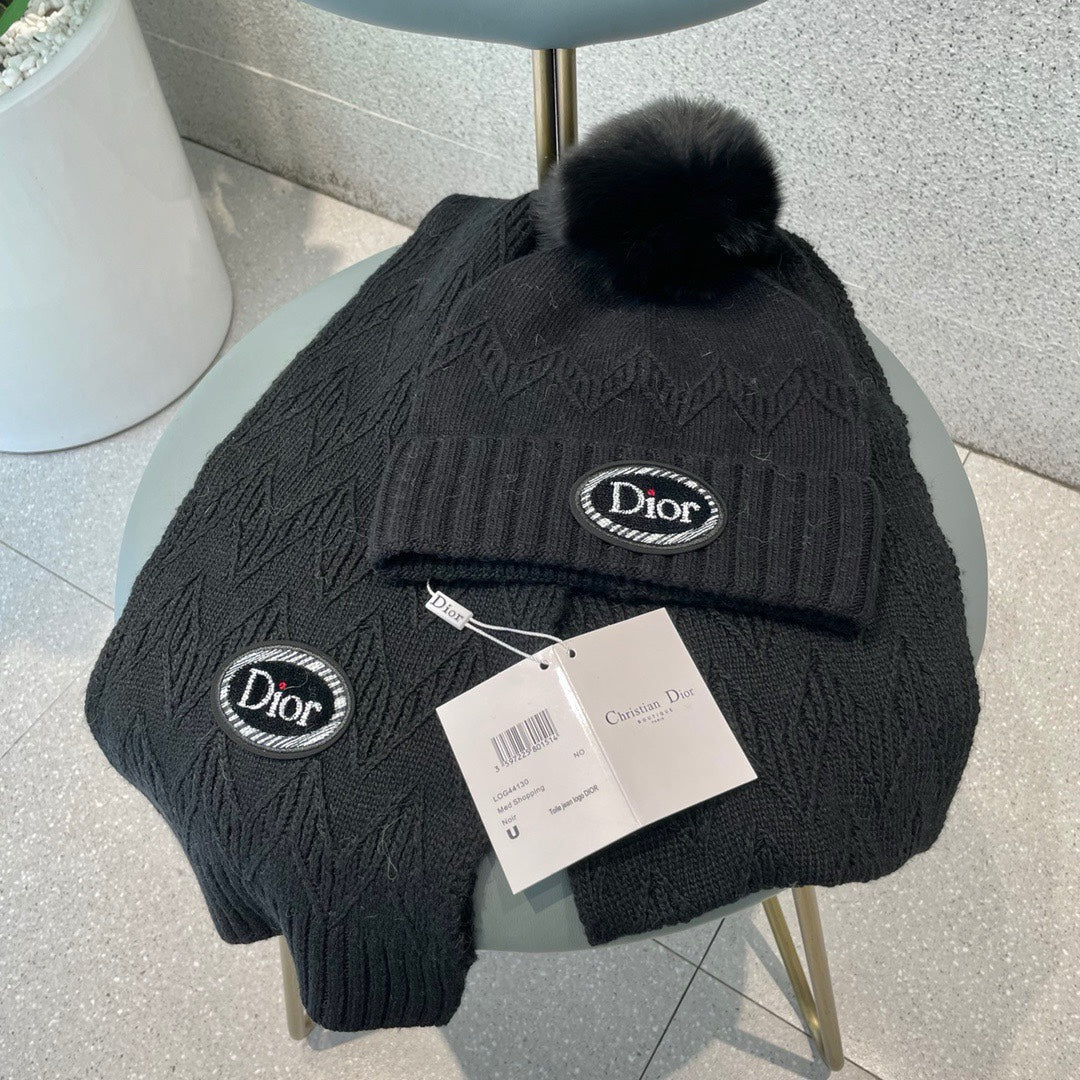 SET KNITTED SCARF AND HAT IN BLACK WOOL AND FOX FUR 434631