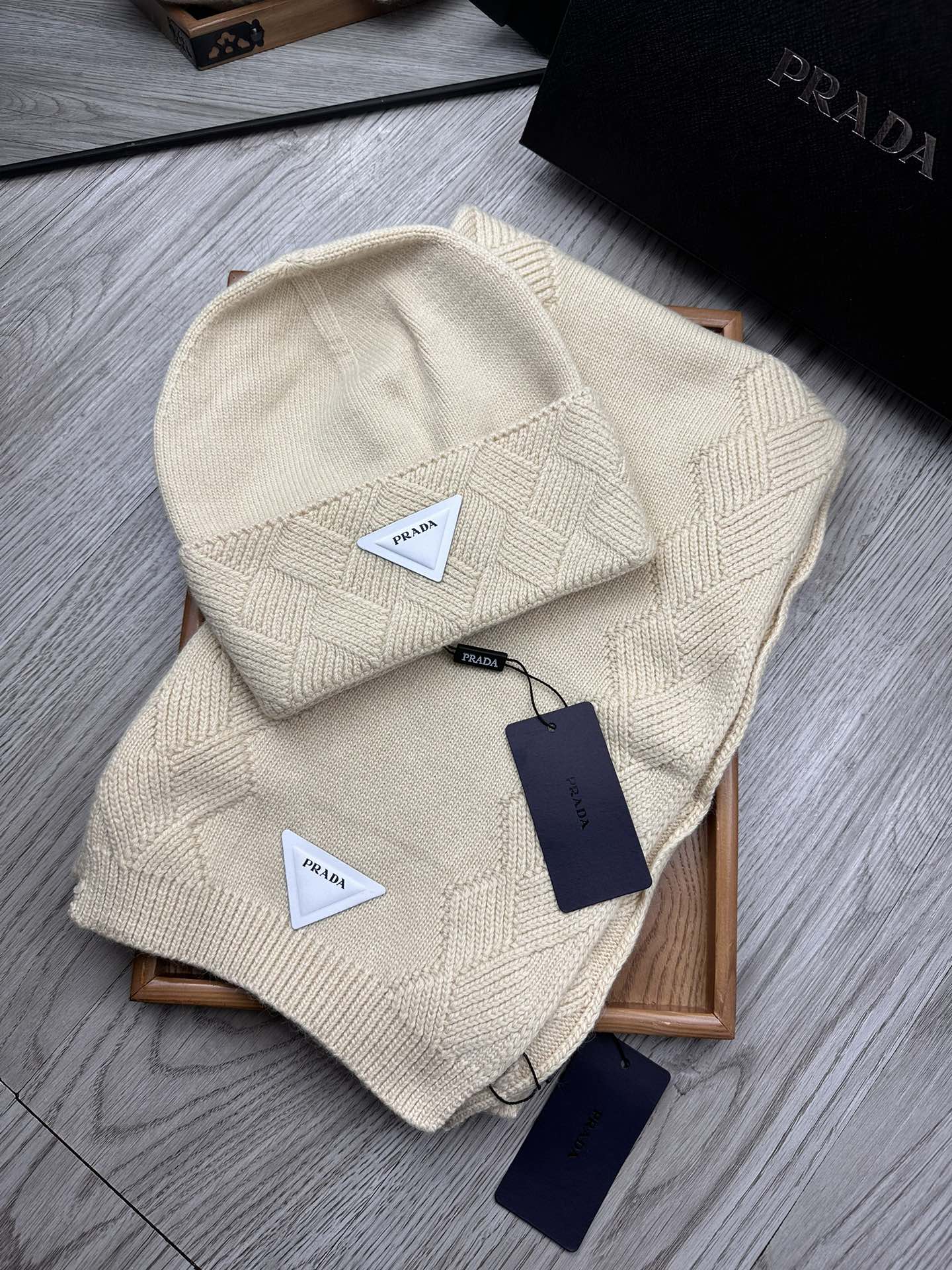 SET SCARF AND HAT IN BISQUE BEIGE WOOL AND RABBIT FUR 397405