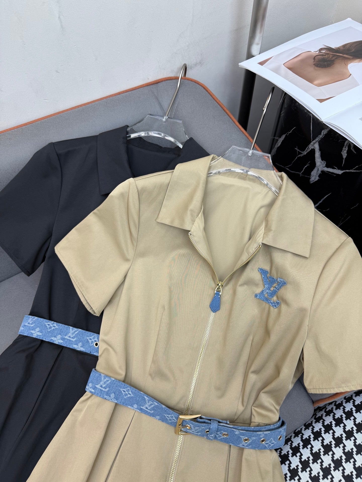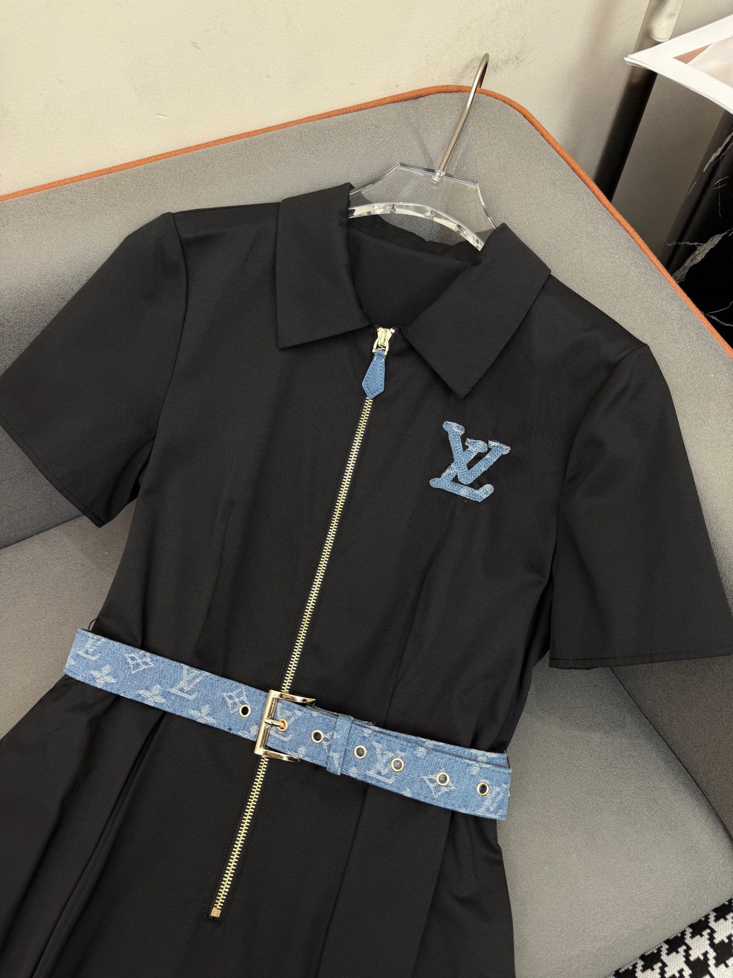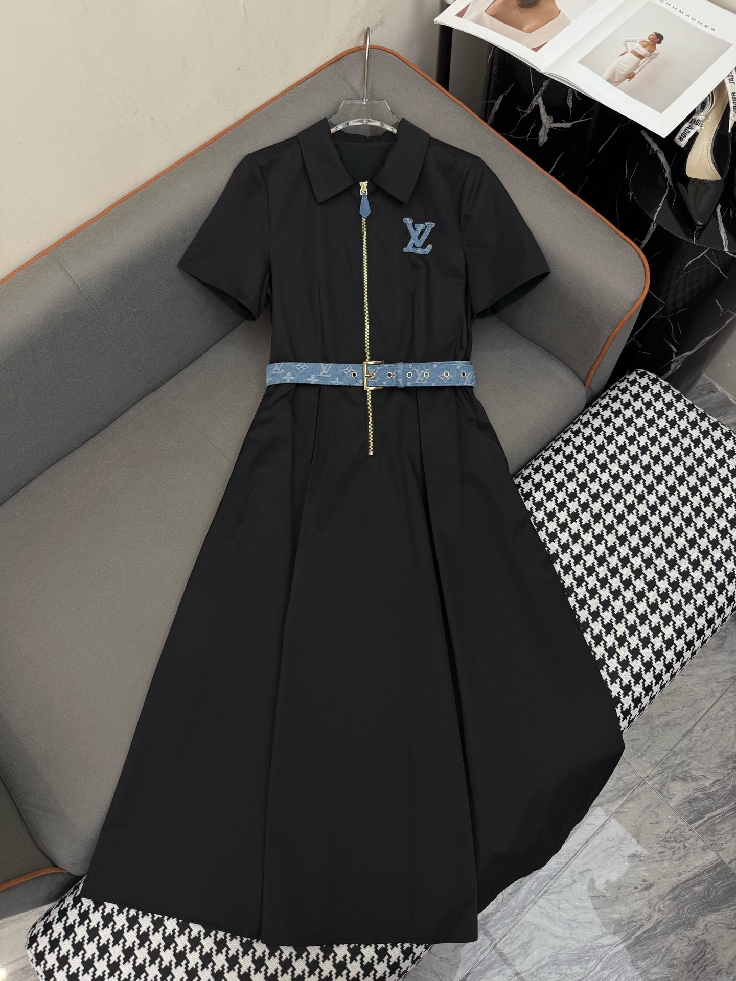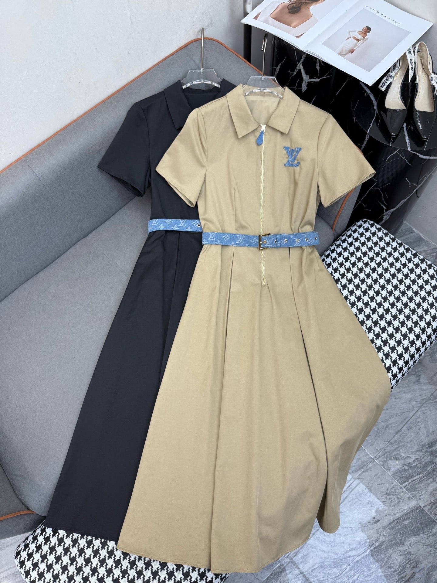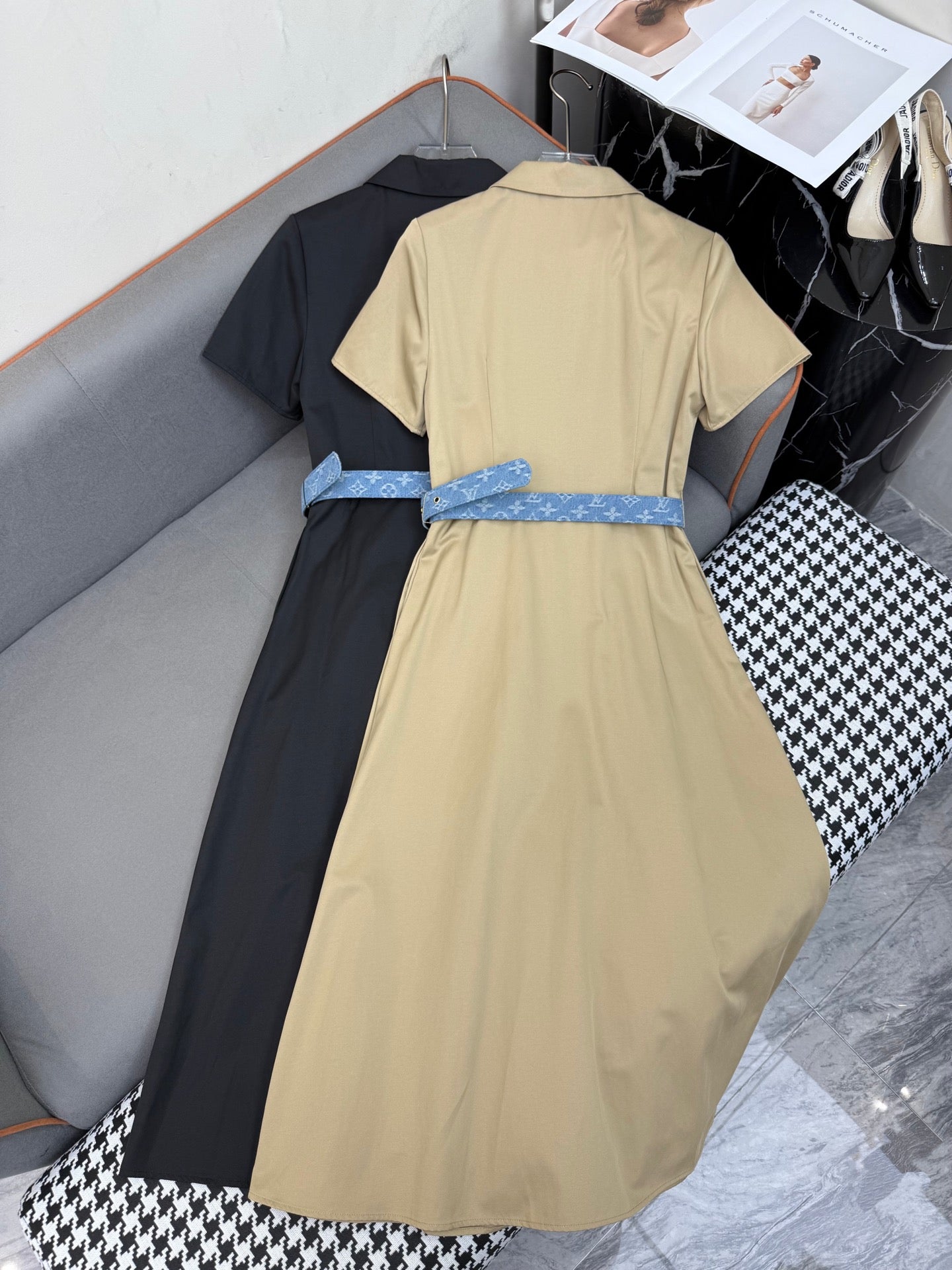SHIRT DRESS WITH SHORT SLEEVES AND LOGO BELT