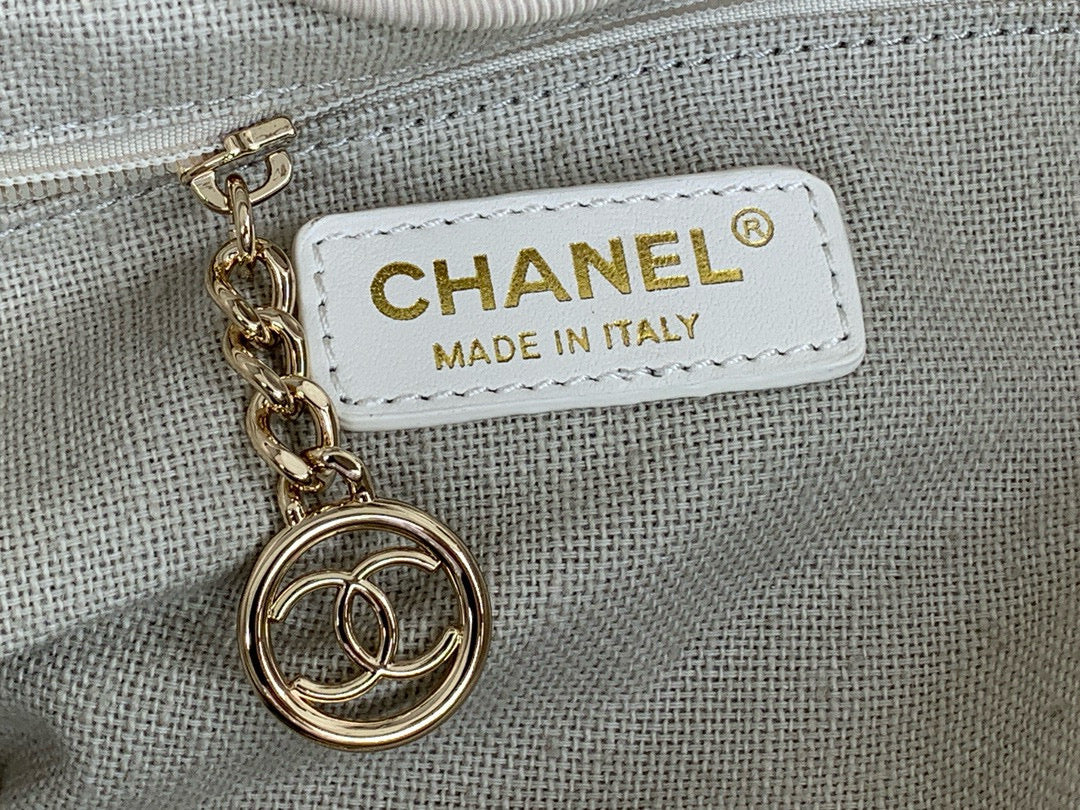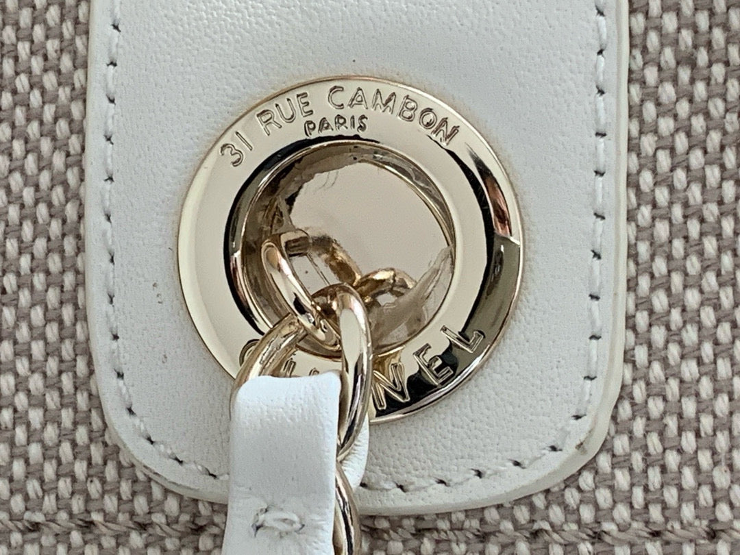 SHOPPING BAG 38 IN BEIGE AND WHITE CANVAS