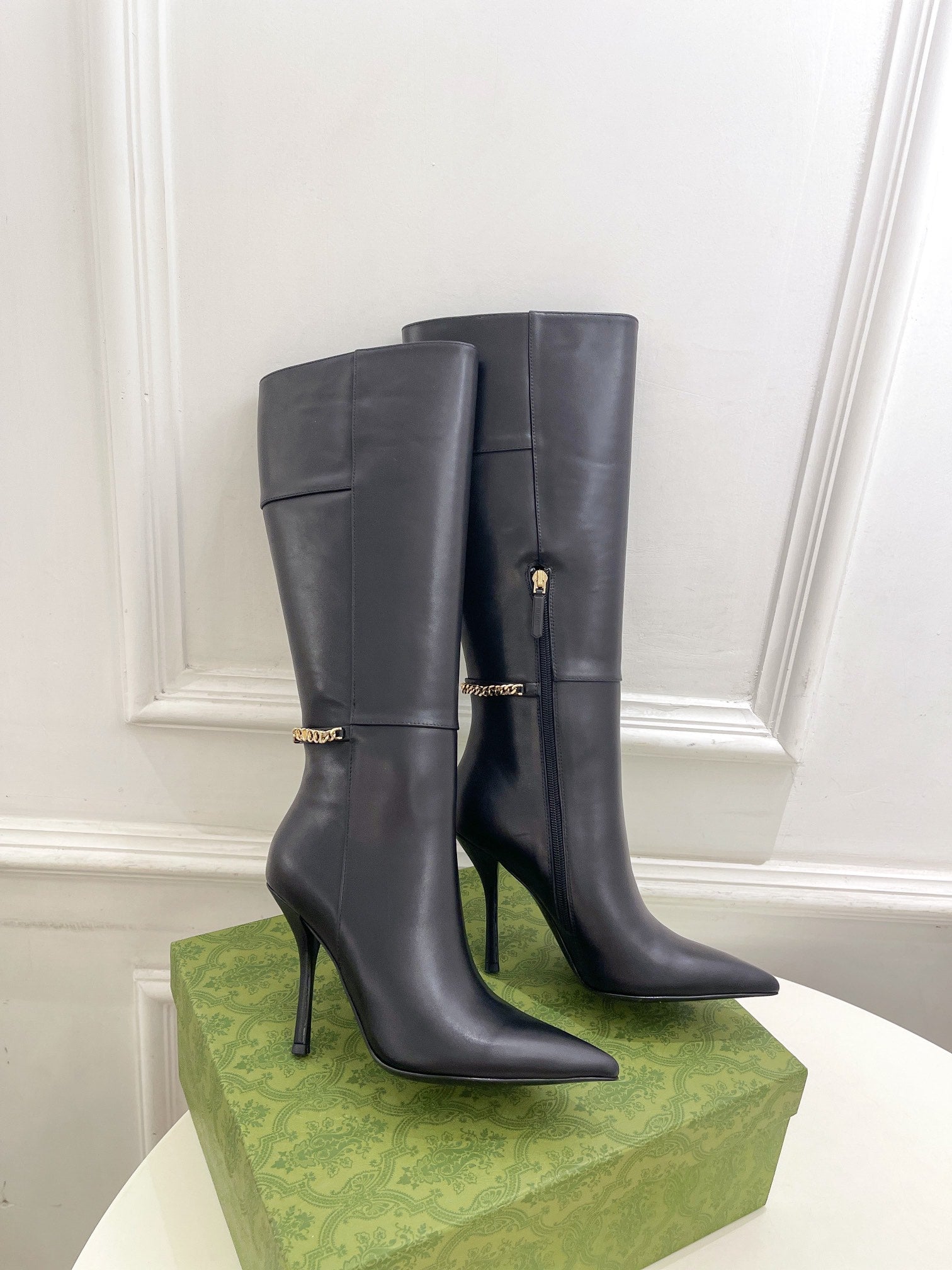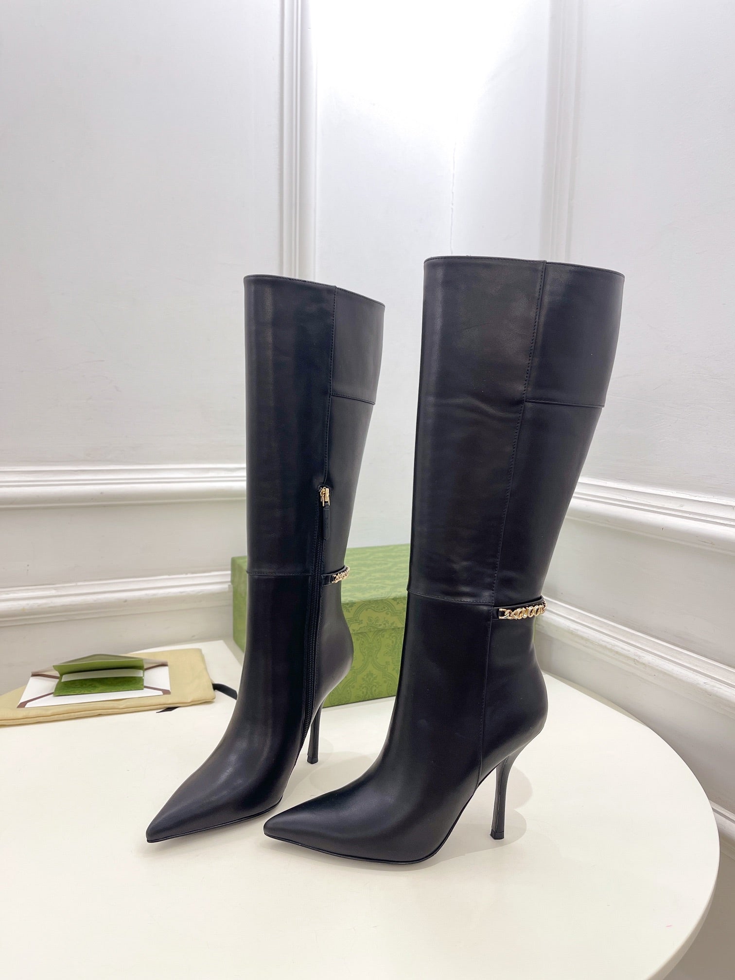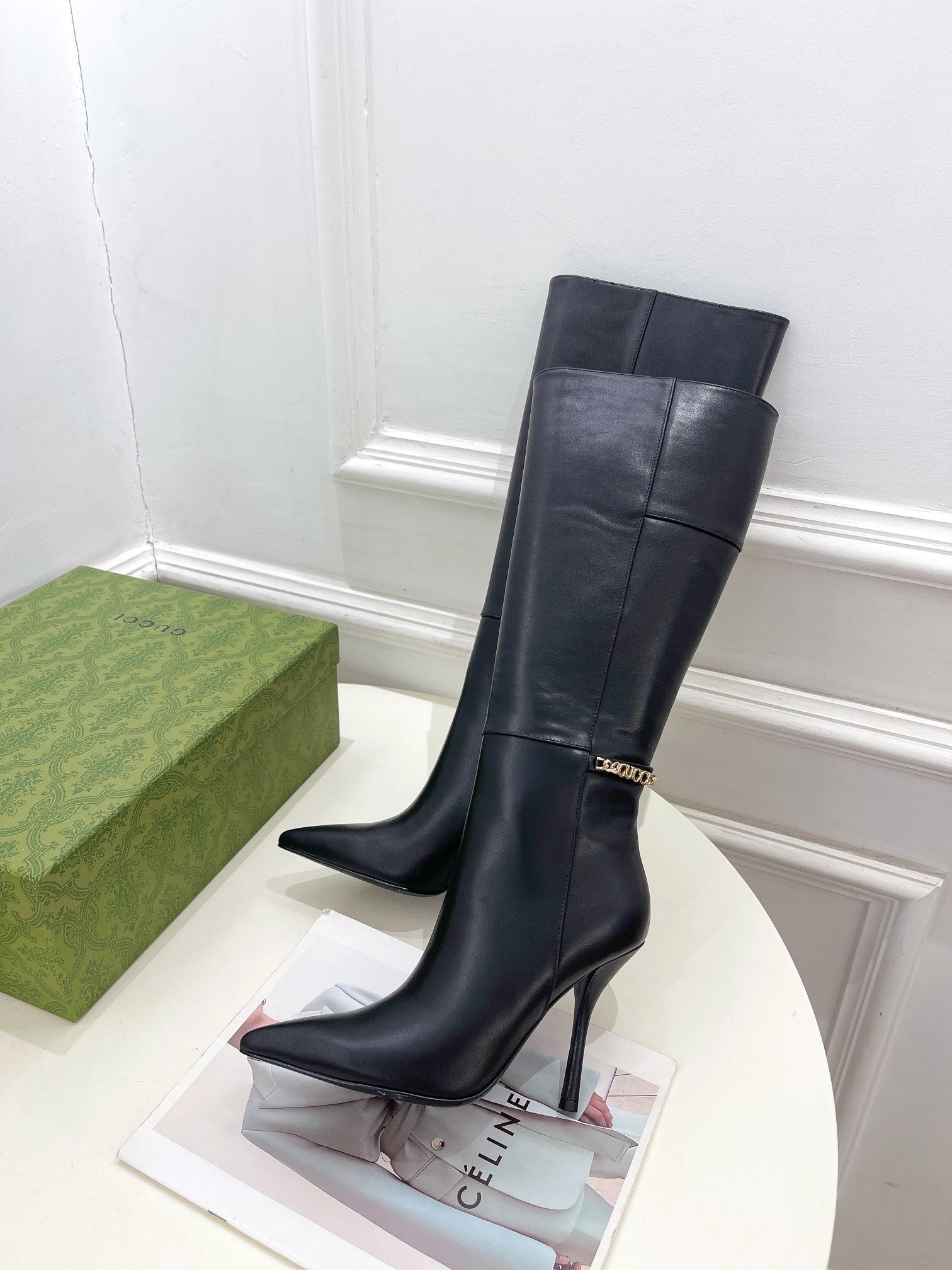 SIGNORIA KNEE BOOTS 10.5CM IN BLACK CALFSKIN
