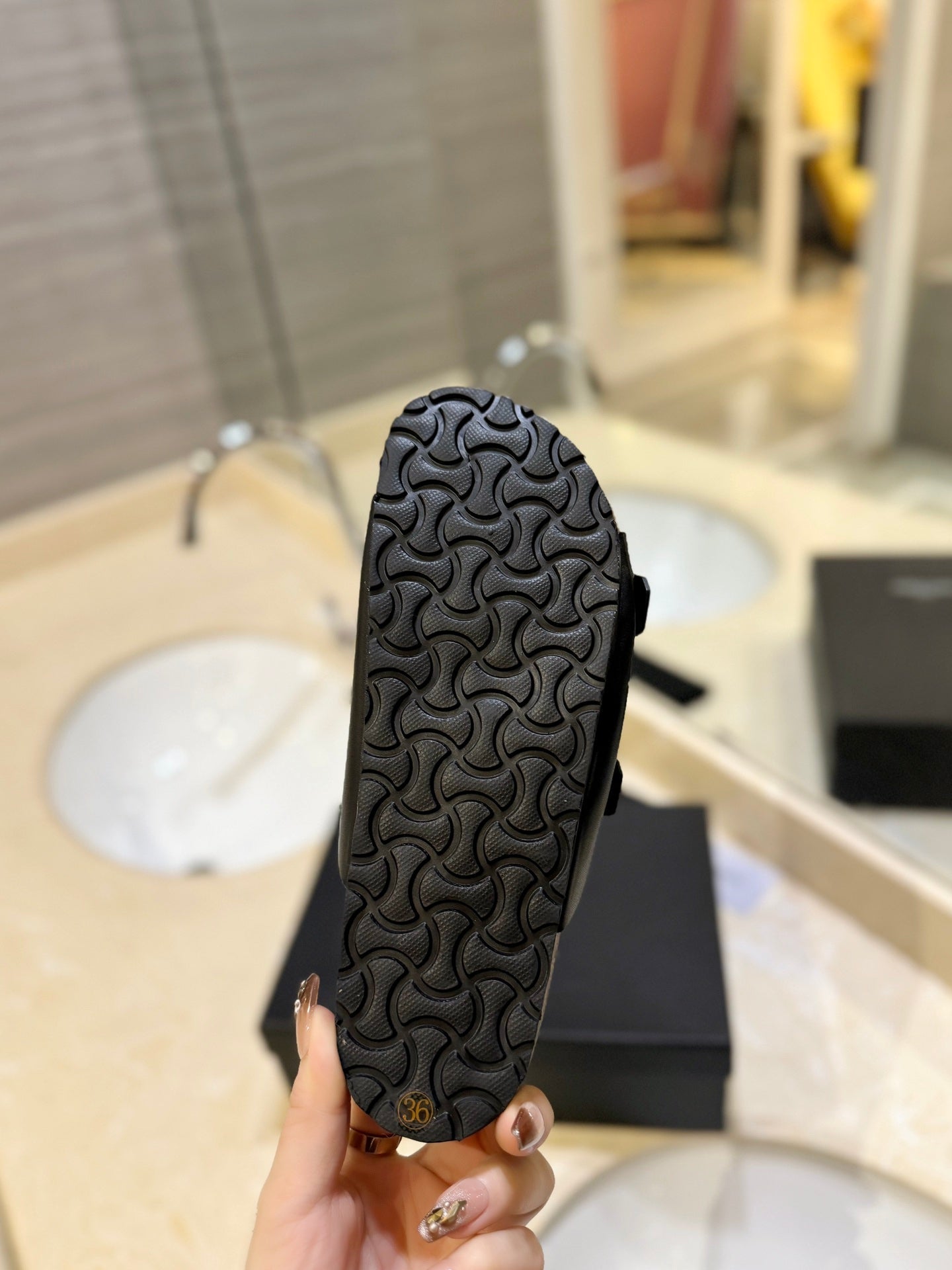 SL Flat Sandal Women Brown Seude Black Calfskin