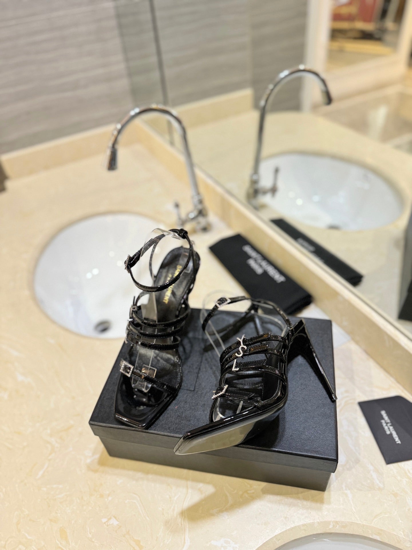 SL JERRY HEELED SANDALS BLACK POLISHED CALFSKIN