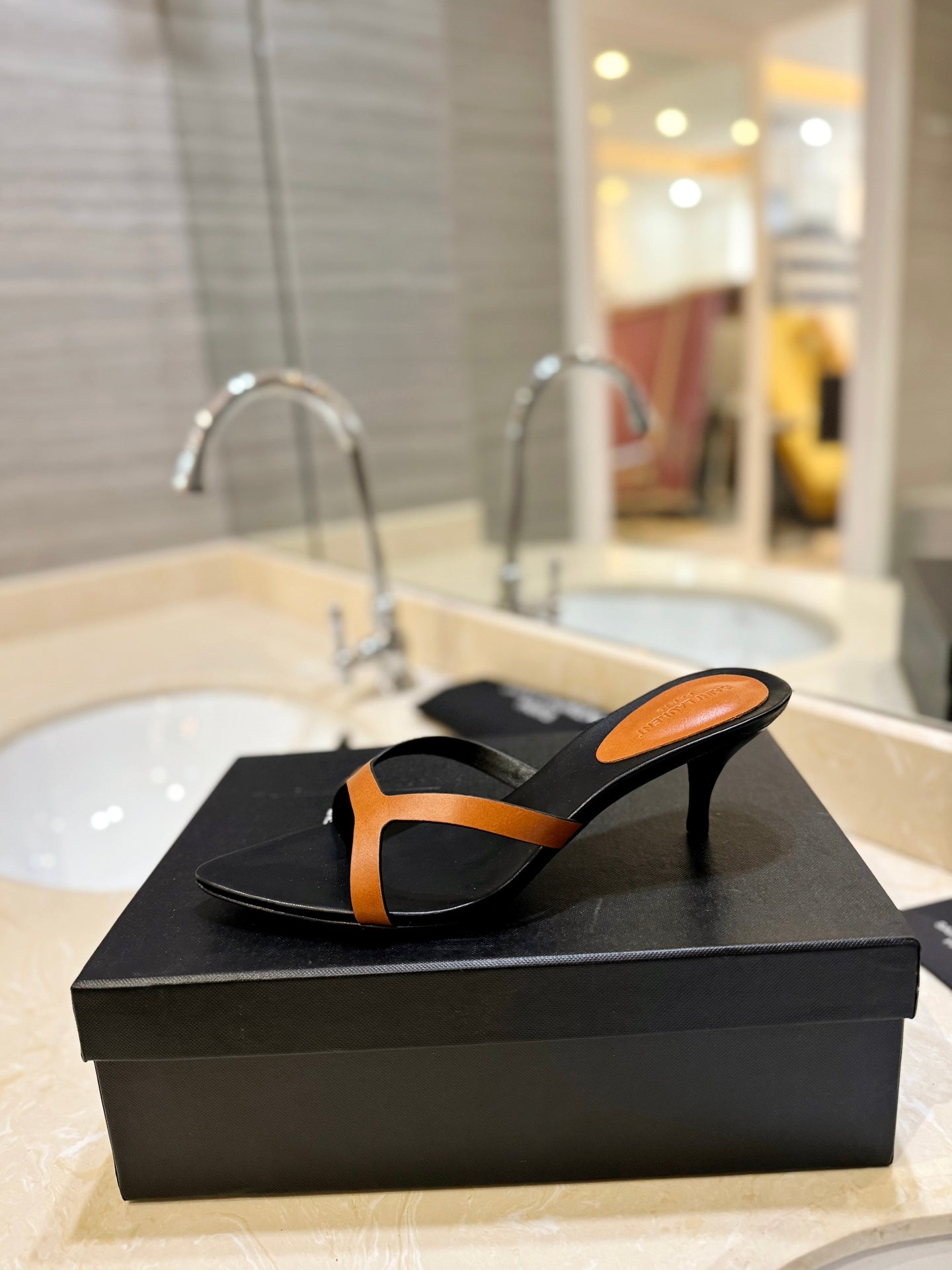 SL OPEN-TOES HIGH HEELS SLIPPER COPPER CALFSKIN