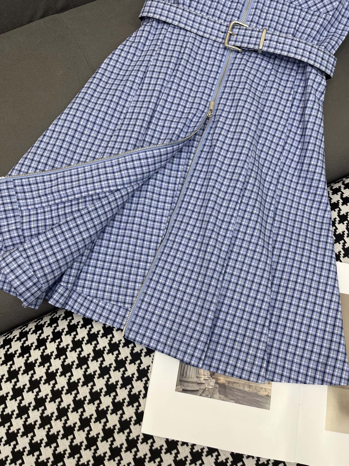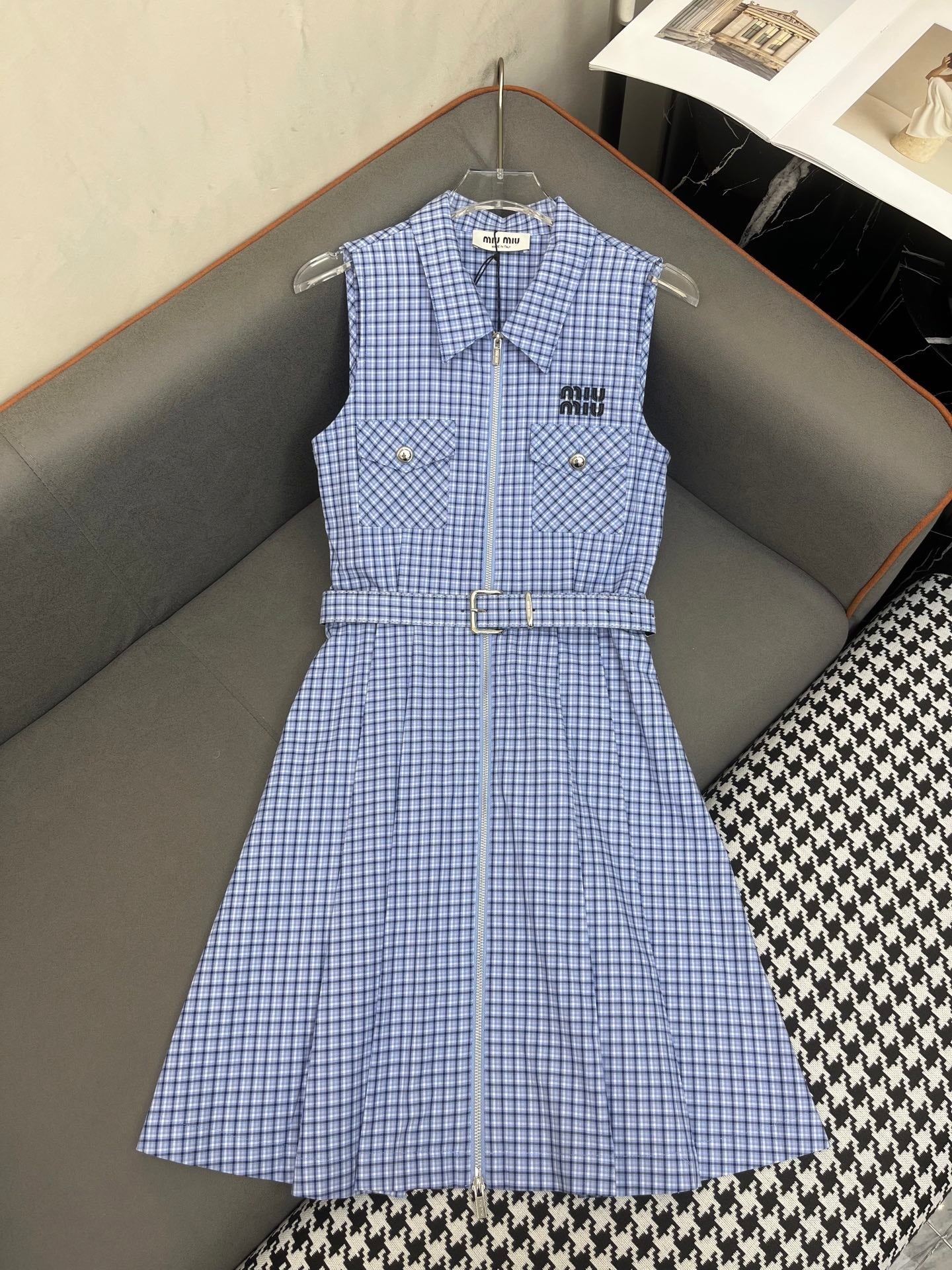 SLEEVELESS CHECKED DRESS WITH MATCHING BELT