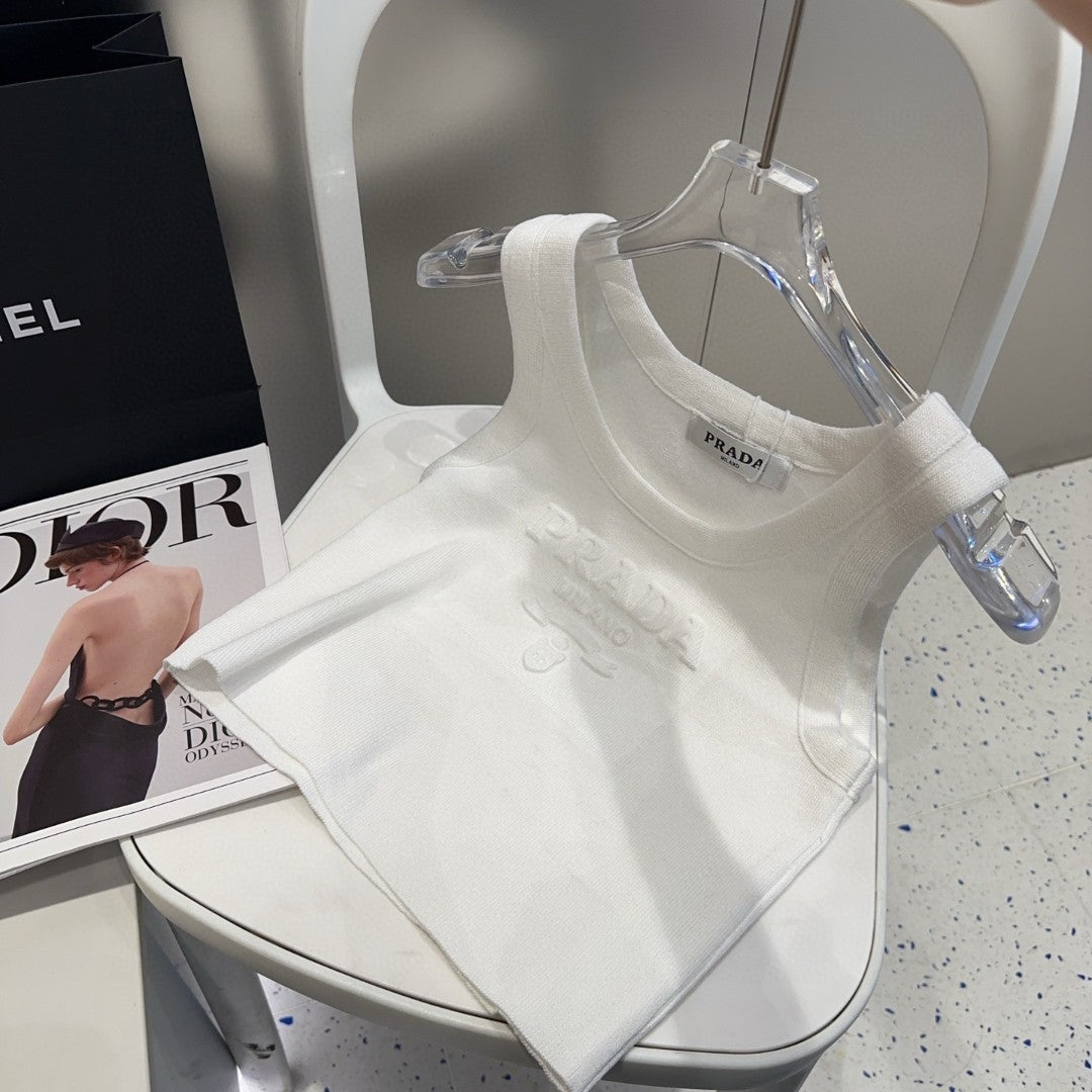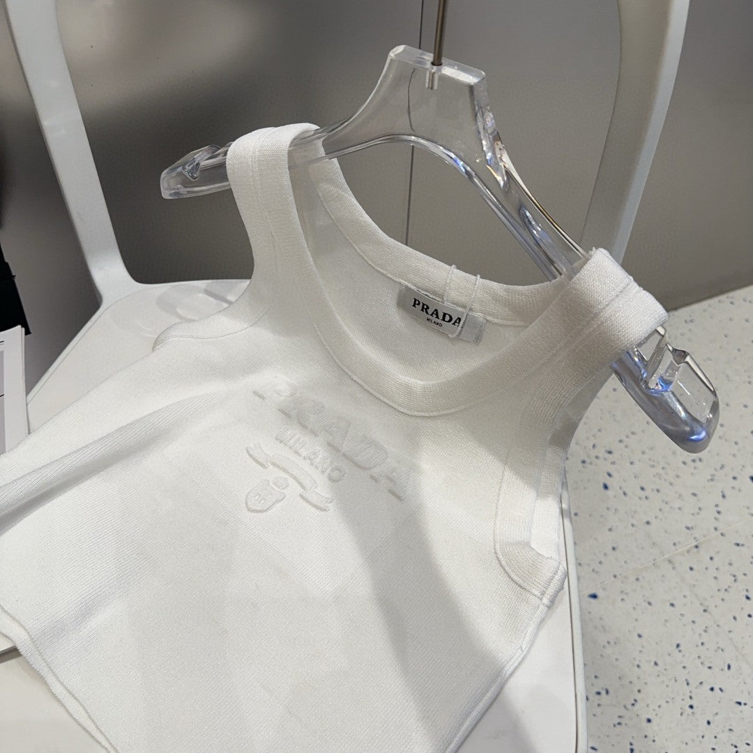 SLEEVELESS TOP 640630 IN WHITE COTTON EMBOSSED LOGO
