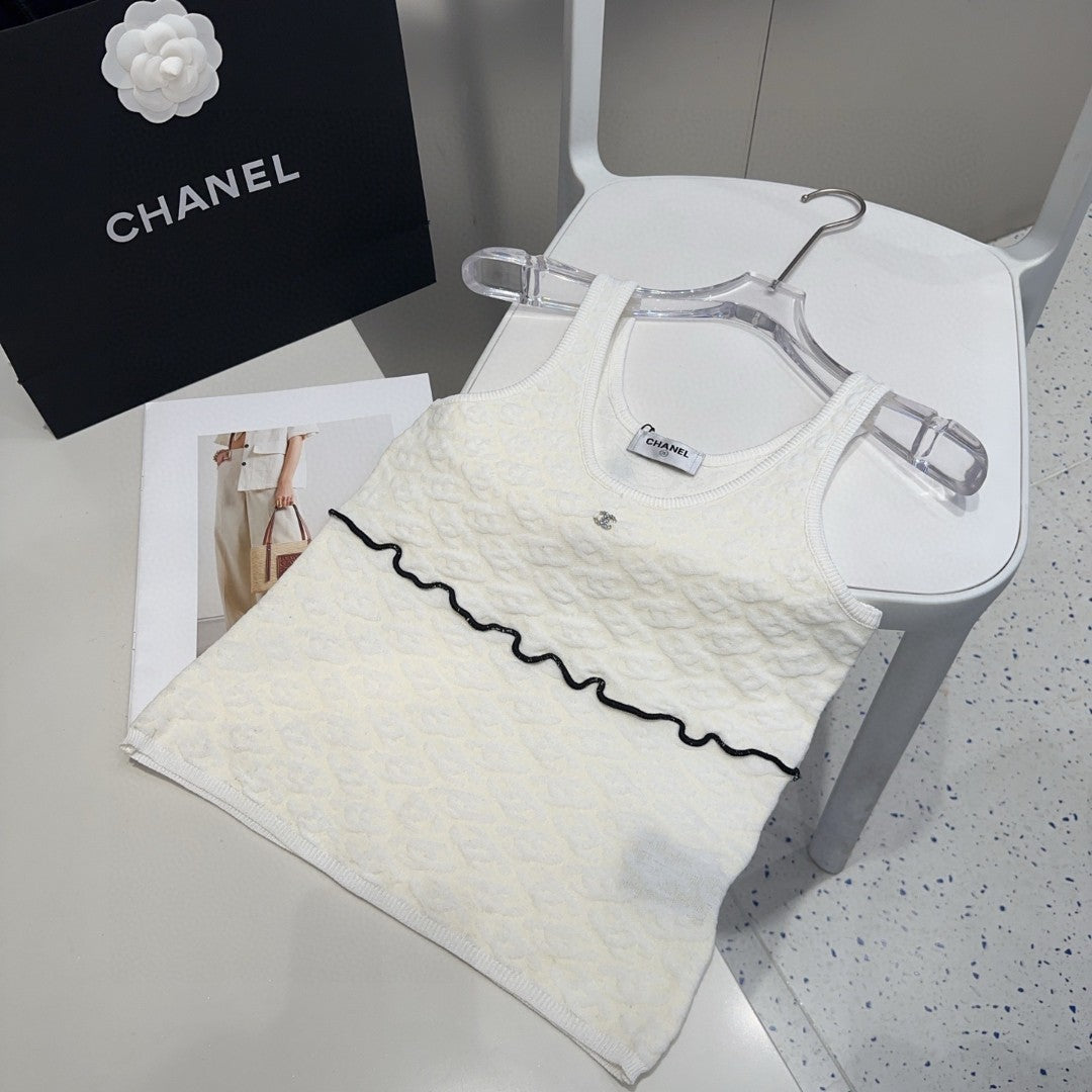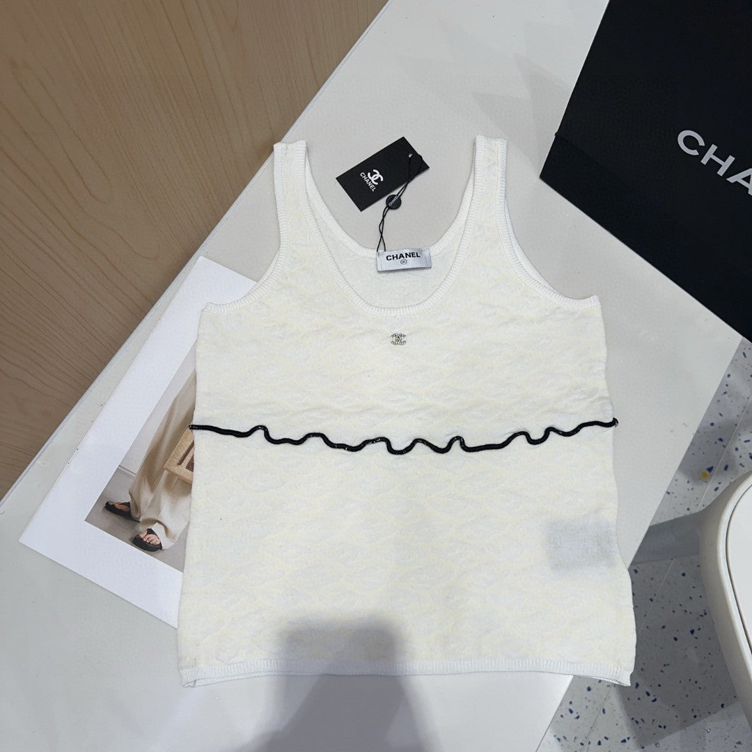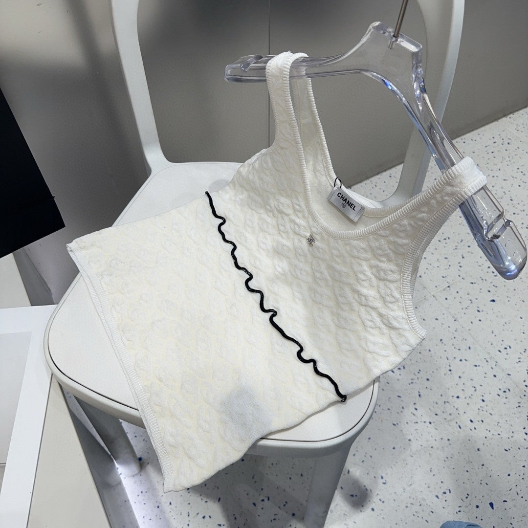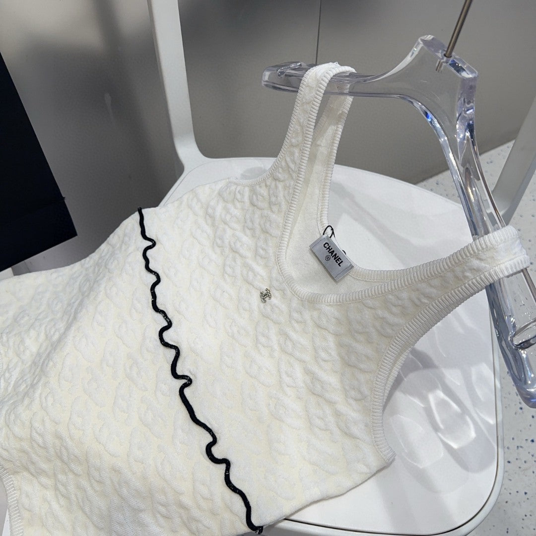 SLEEVELESS TOP 640633 IN WHITE COTTON RAISED LOGO
