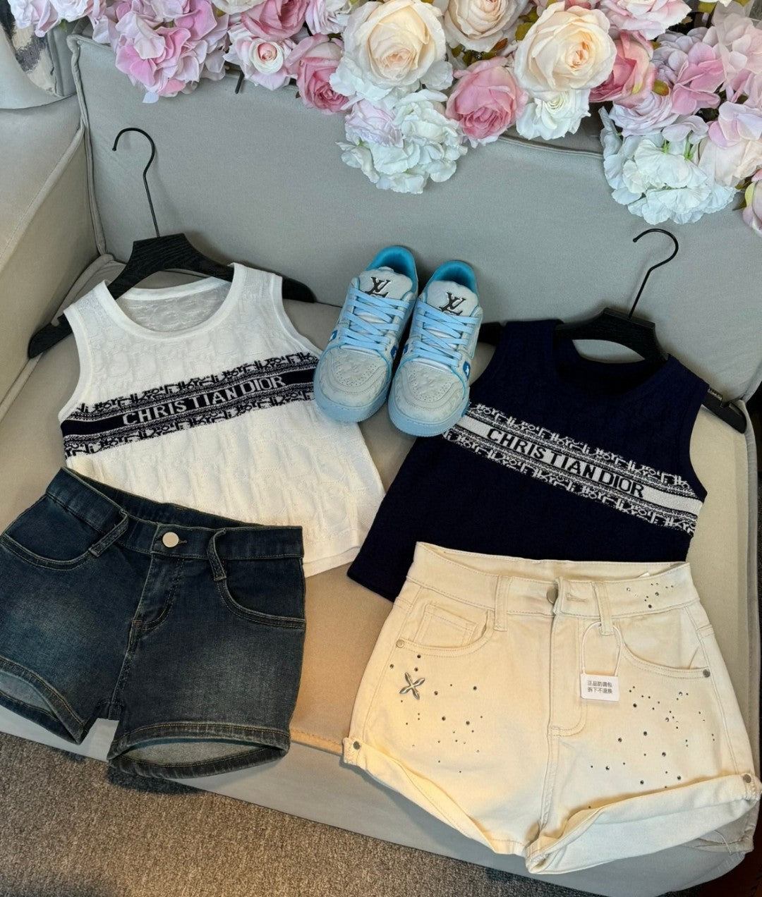 SLEEVELESS TOP 643221 IN BLACK COTTON WHITE LOGO