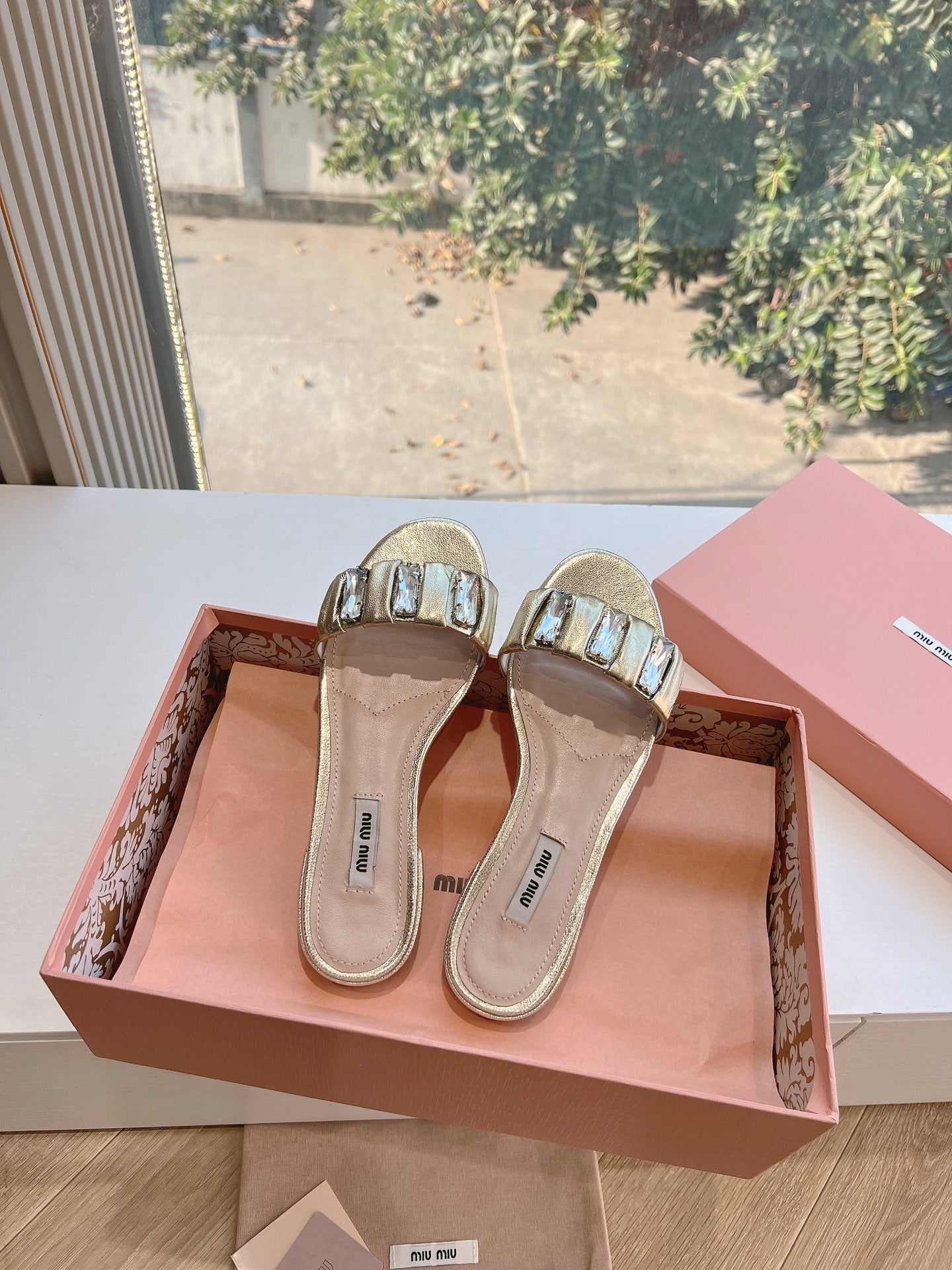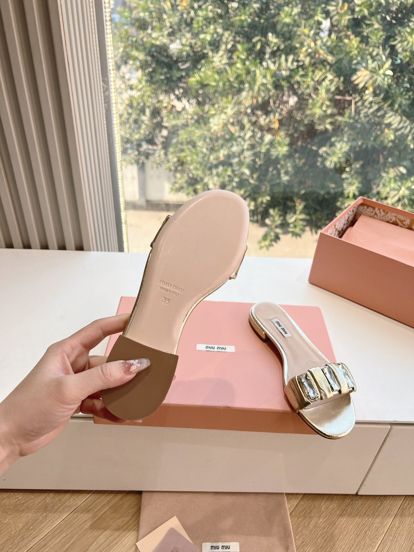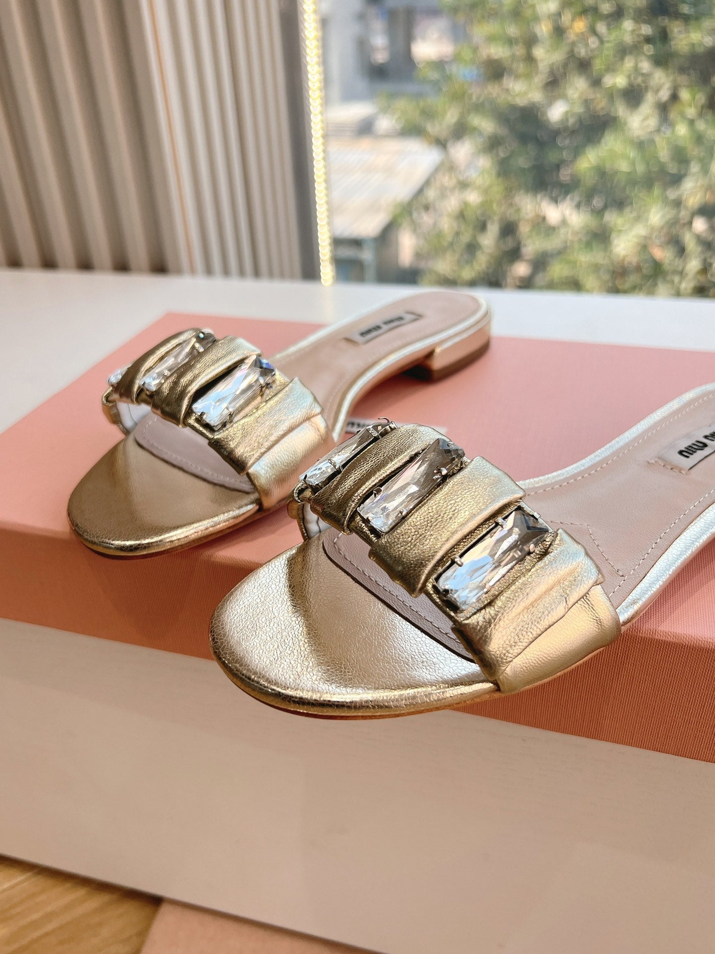 SLIDE SANDALS ATTACHED DIAMOND IN GOLD METALLIC LAMBSKIN