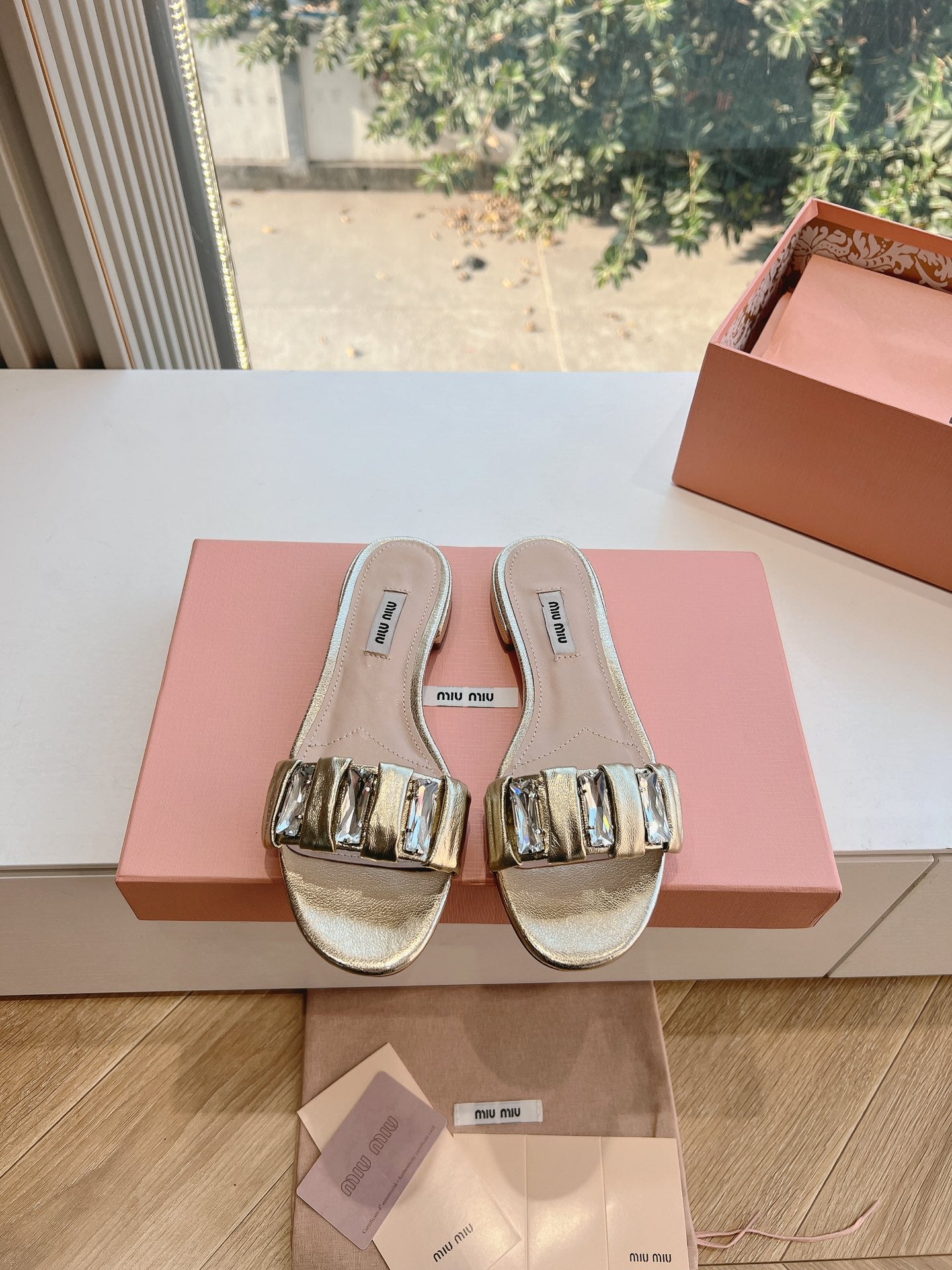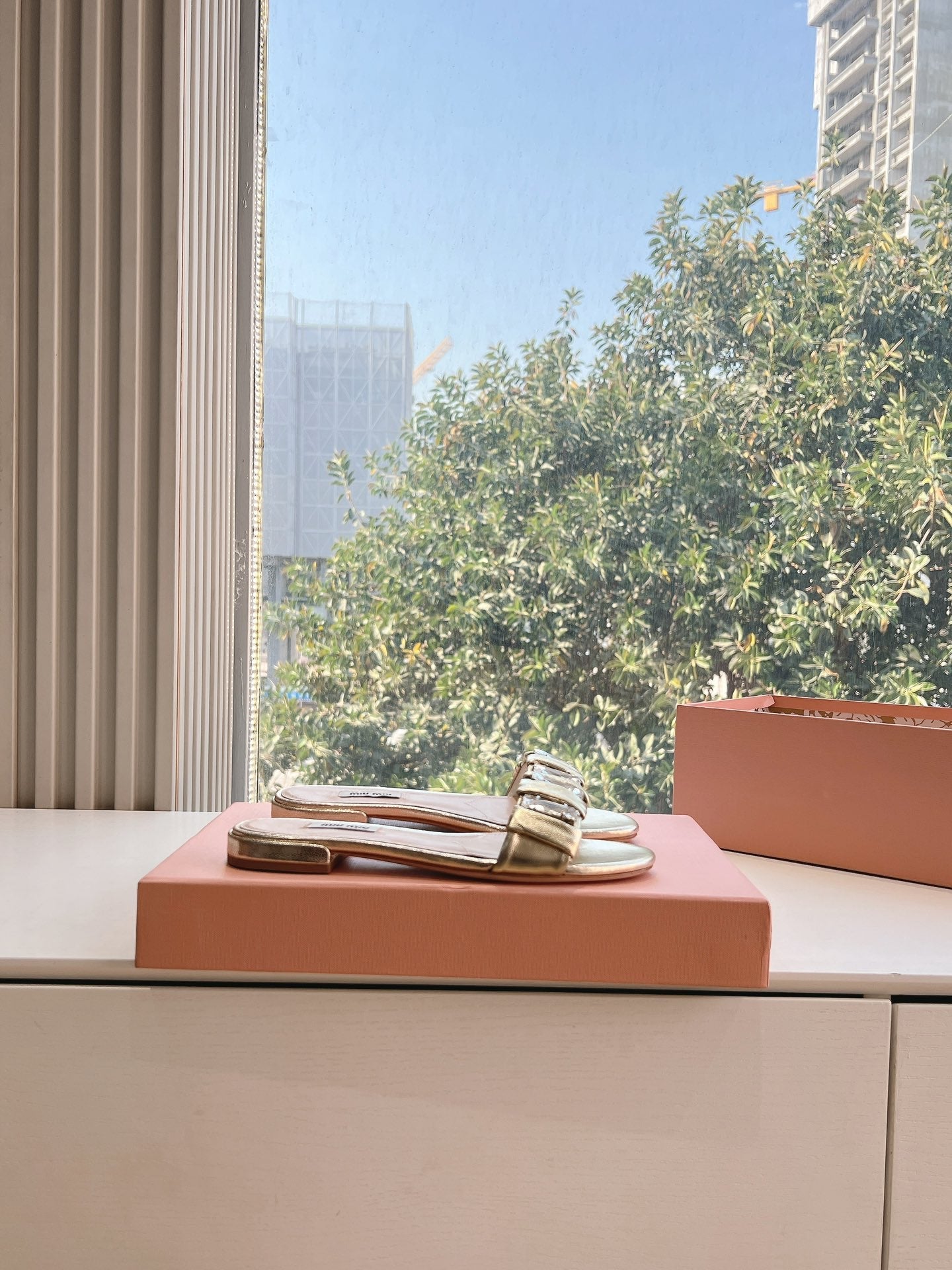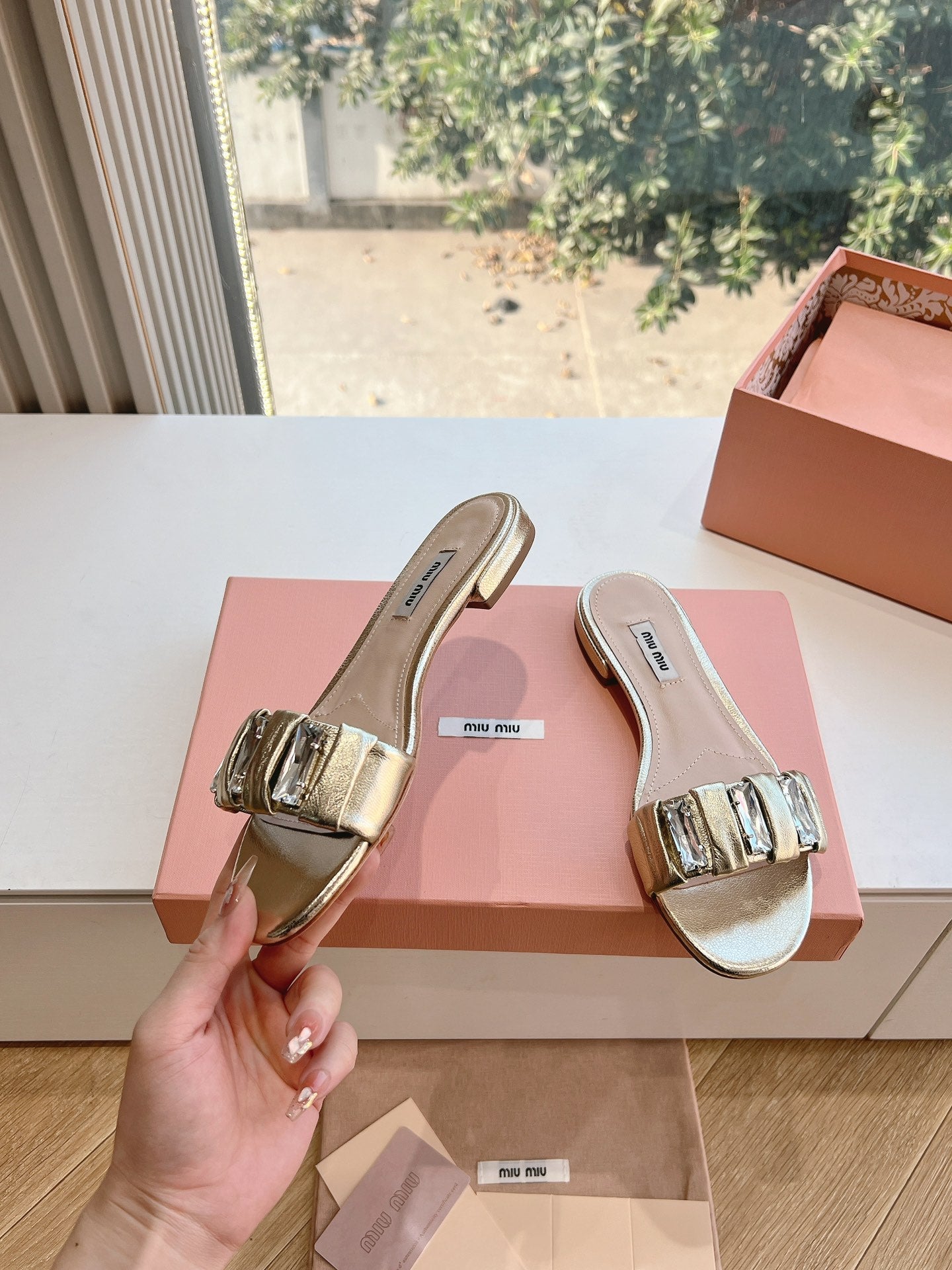 SLIDE SANDALS ATTACHED DIAMOND IN GOLD METALLIC LAMBSKIN