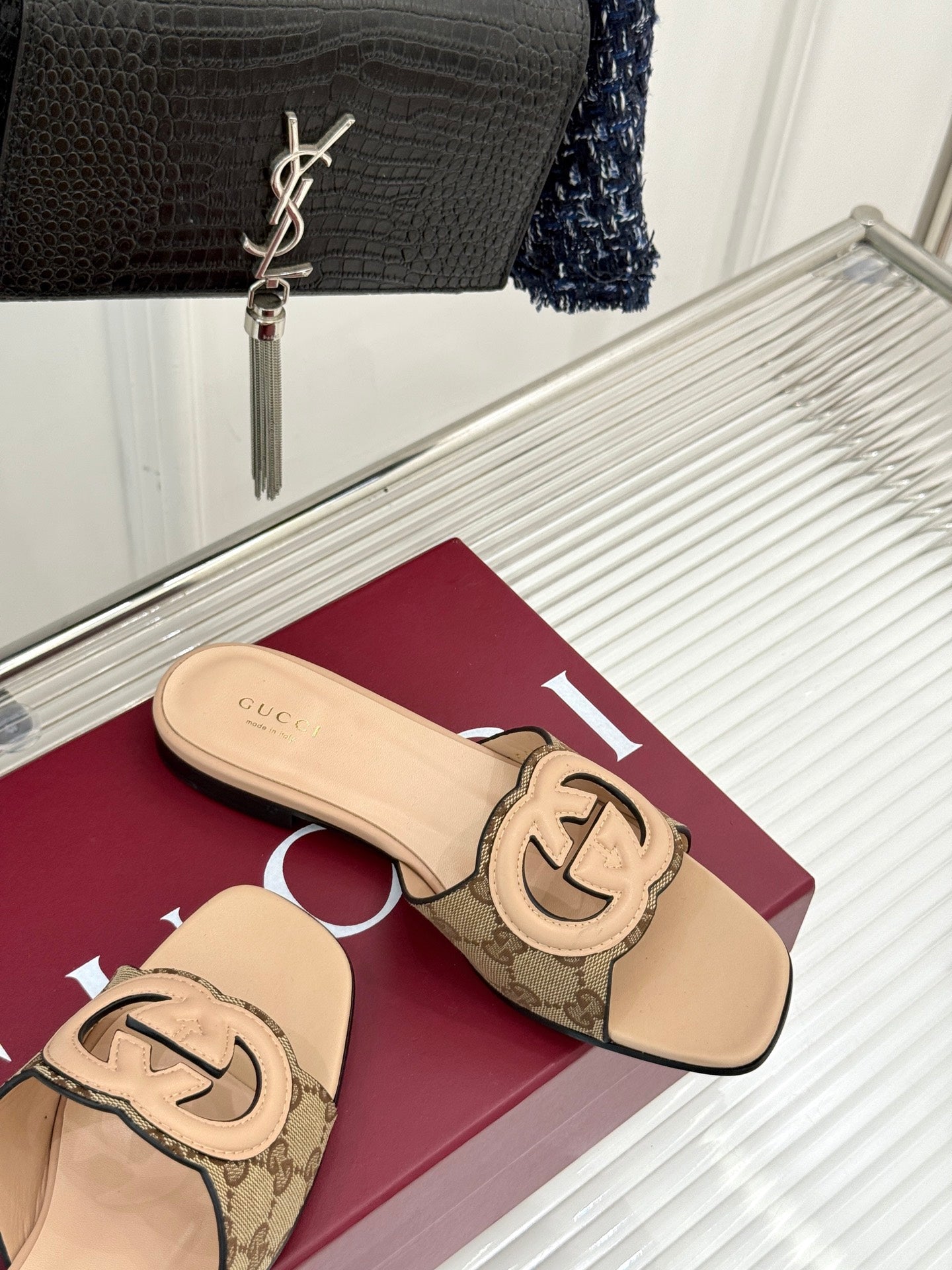 SLIDE SANDALS IN BEIGE CALFSKIN
