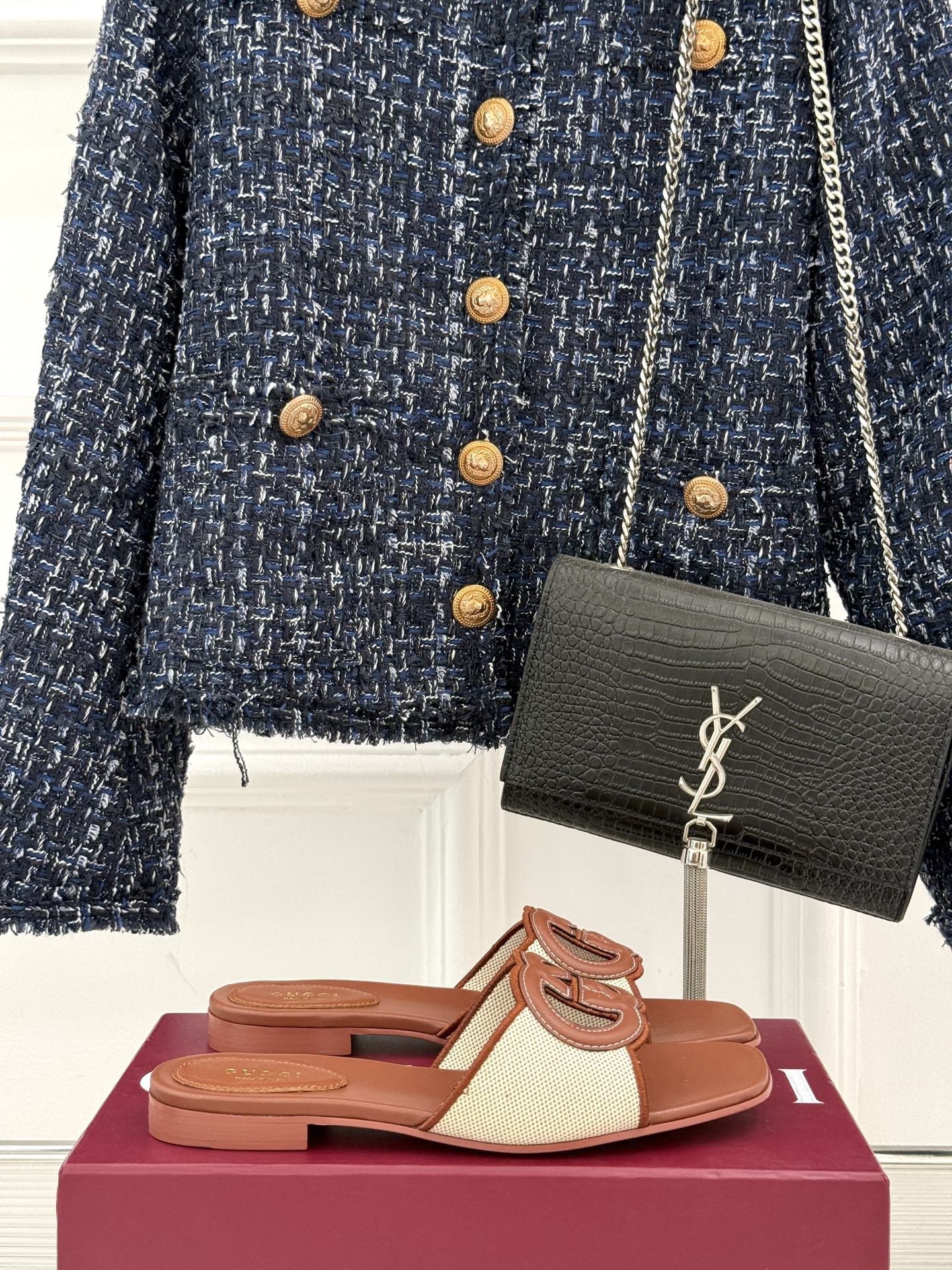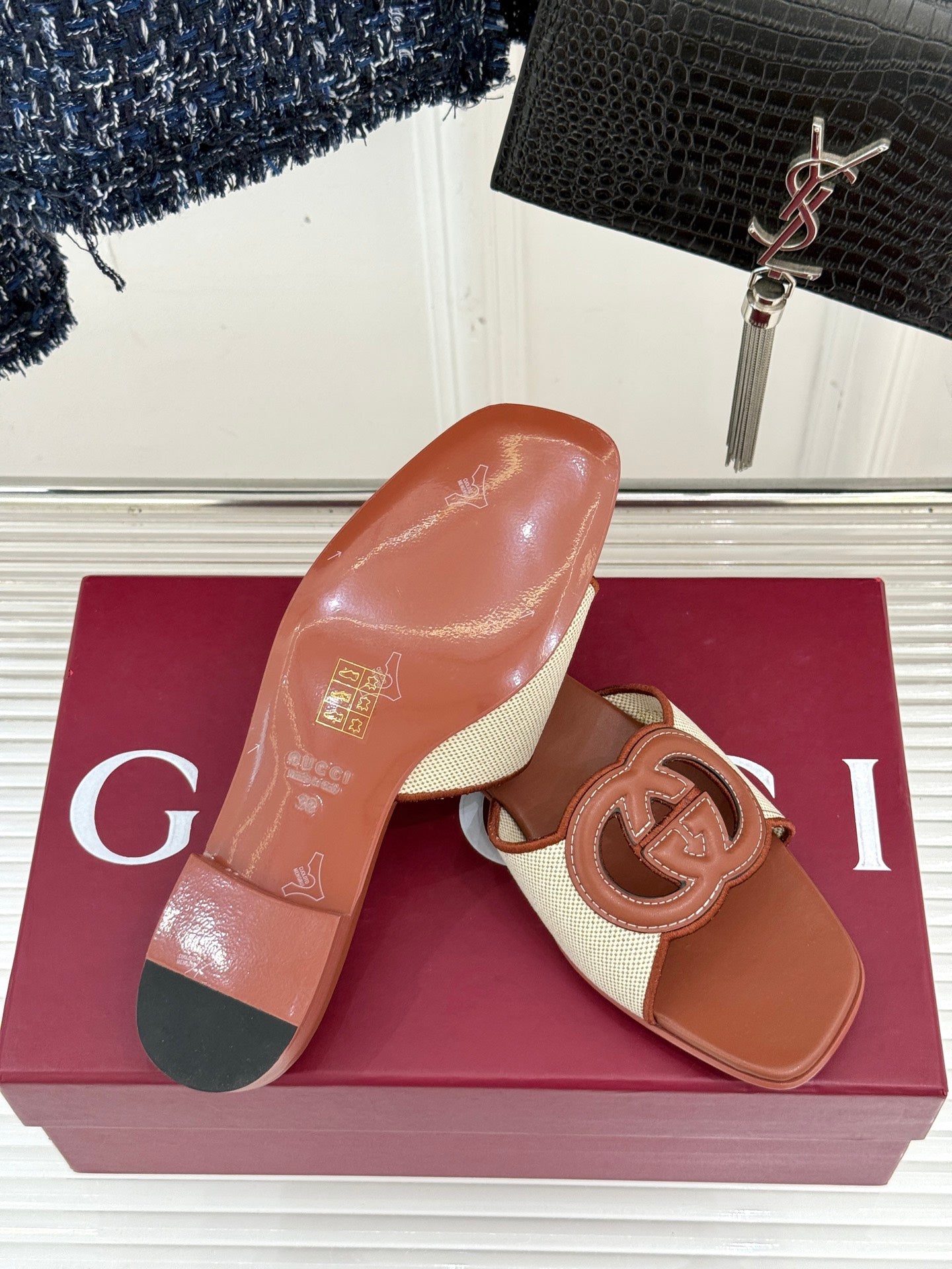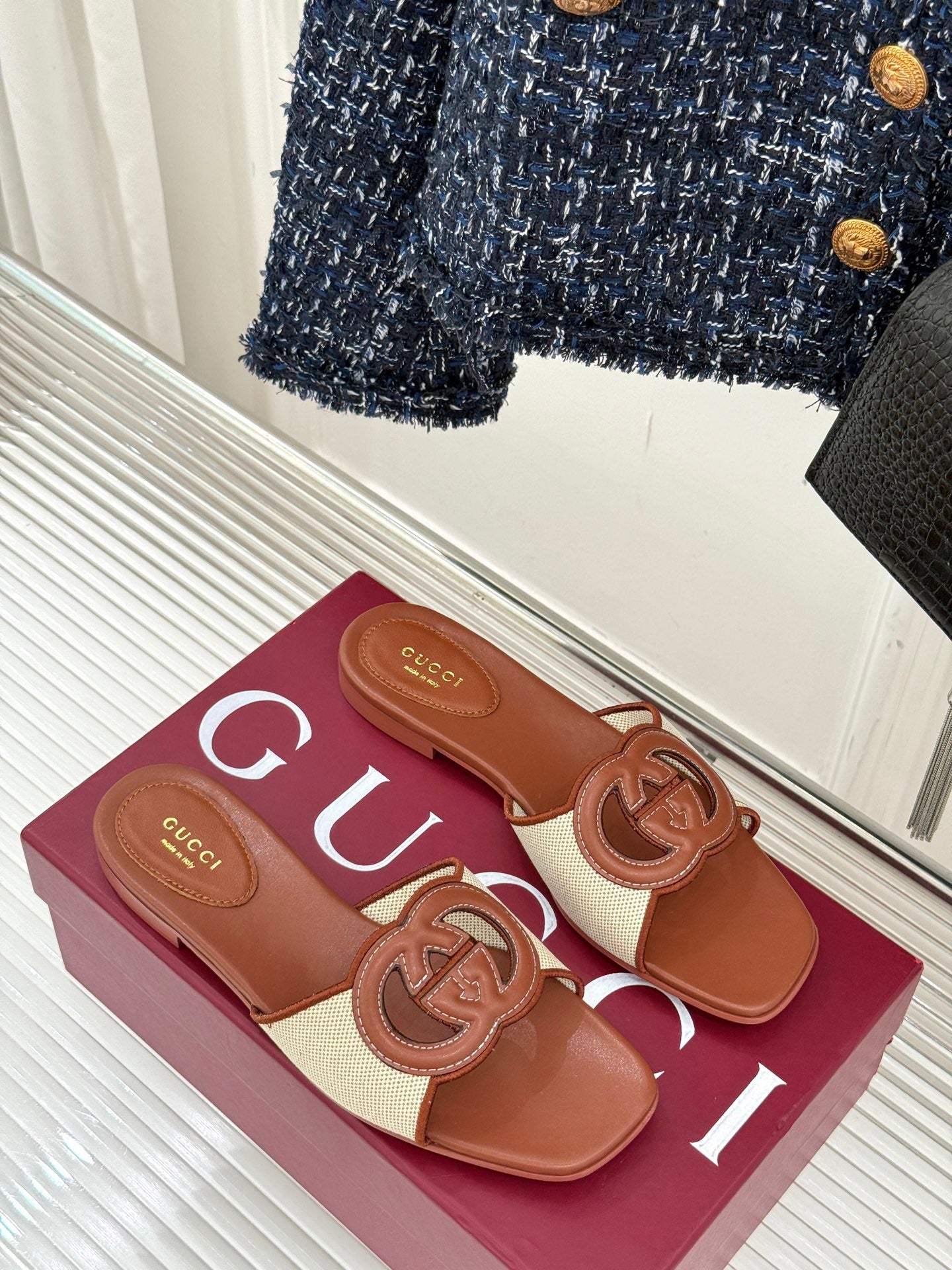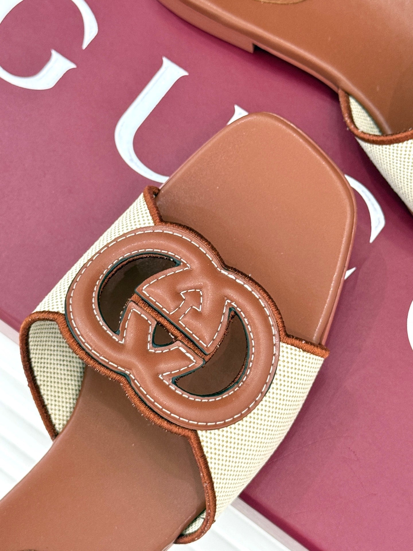 SLIDE SANDALS IN BROWN AND CREAM WHITE CALFSKIN