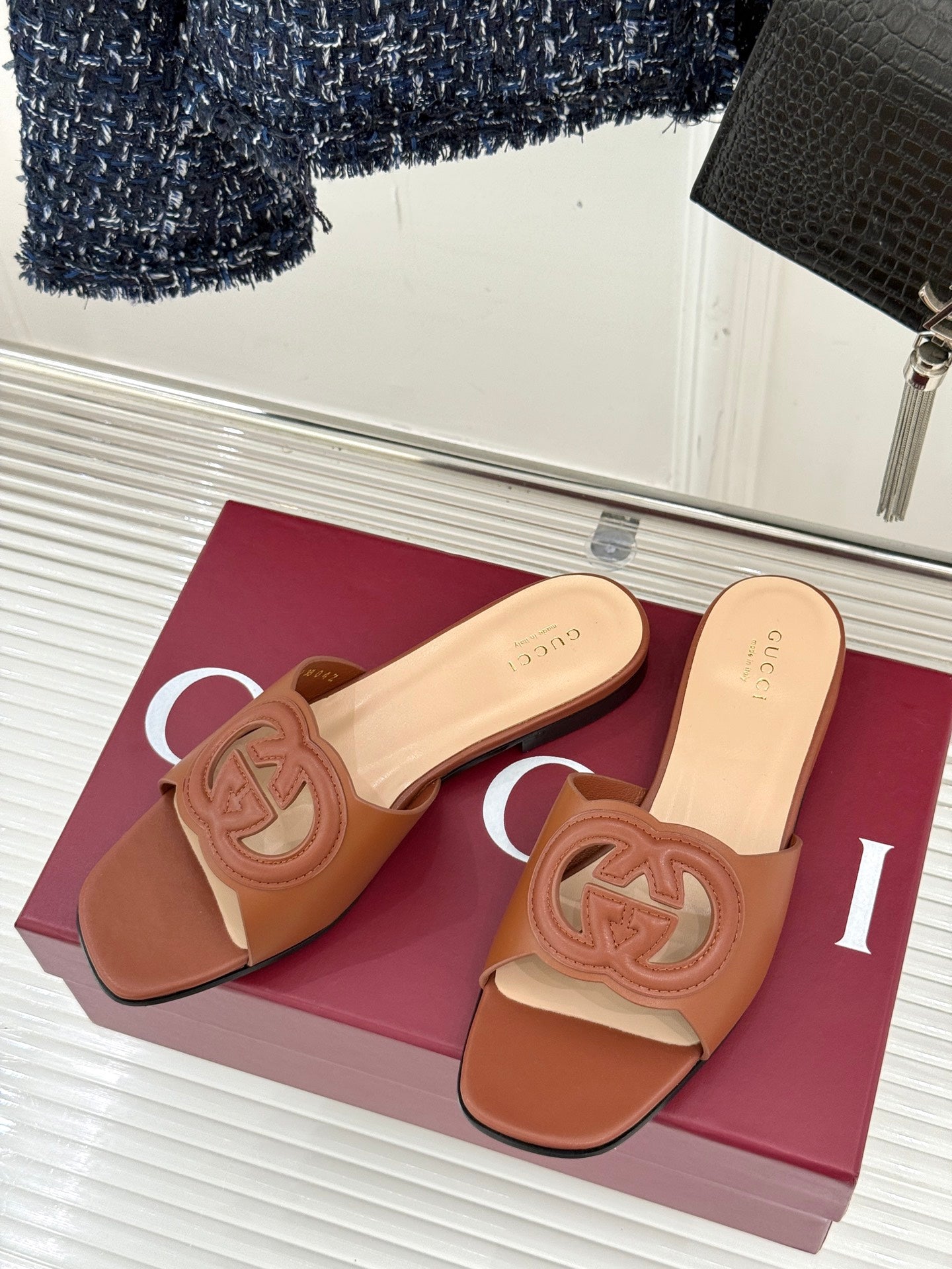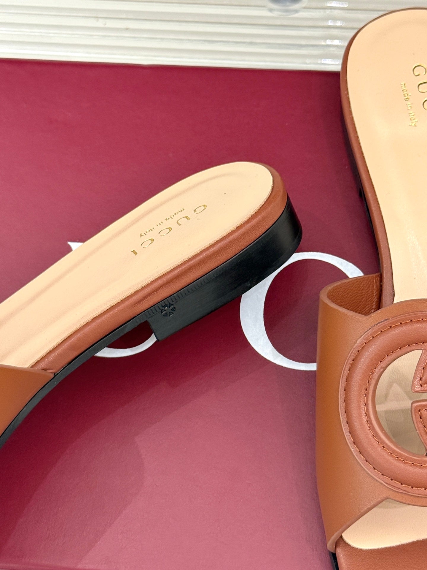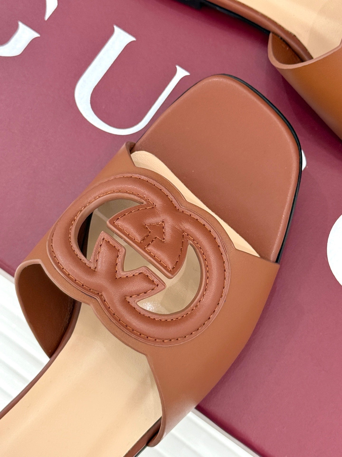 SLIDE SANDALS IN BROWN CALFSKIN