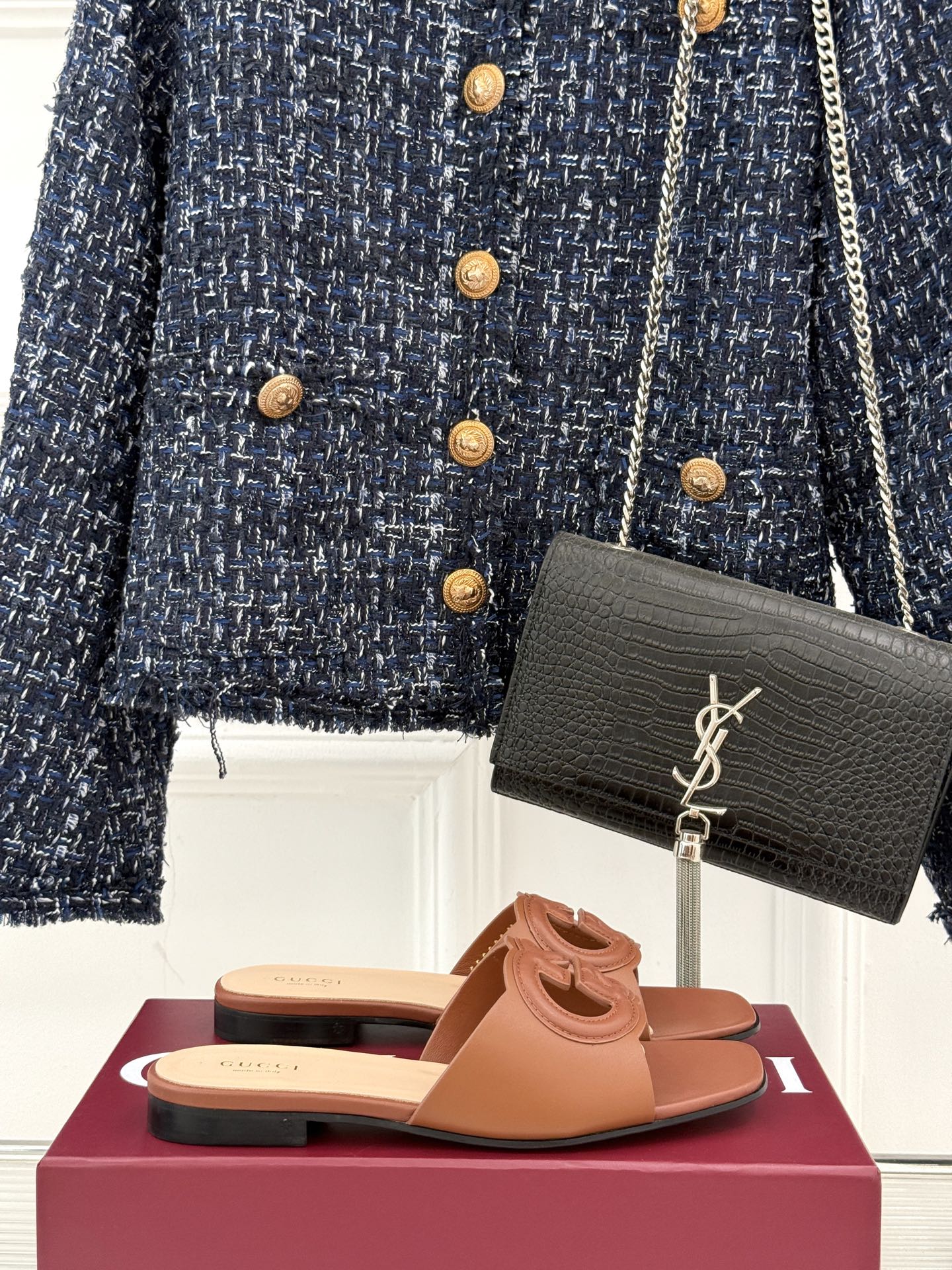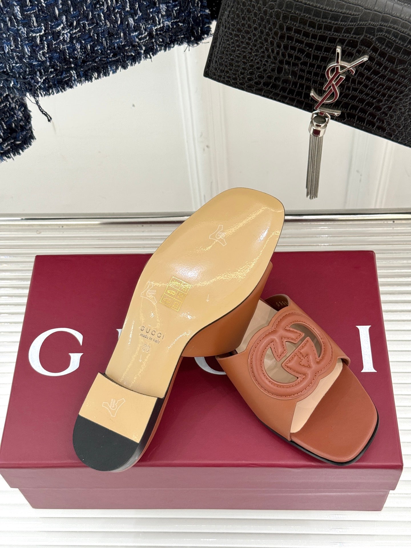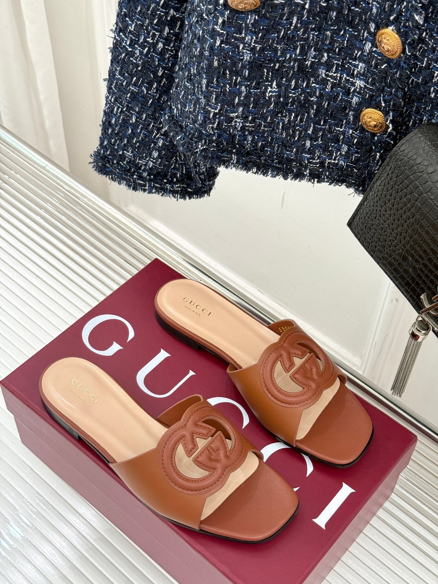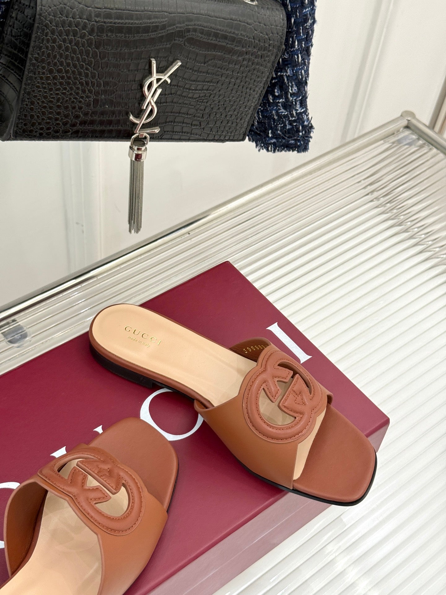 SLIDE SANDALS IN BROWN CALFSKIN