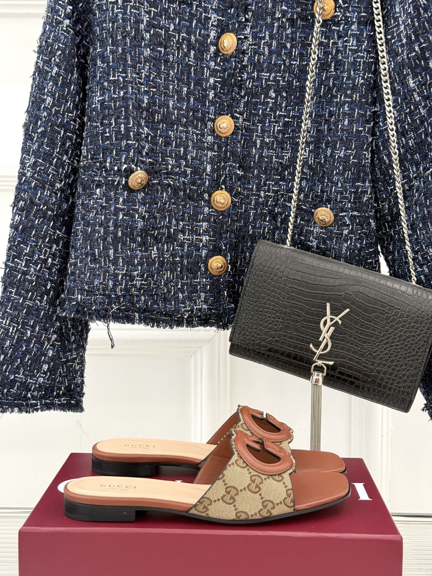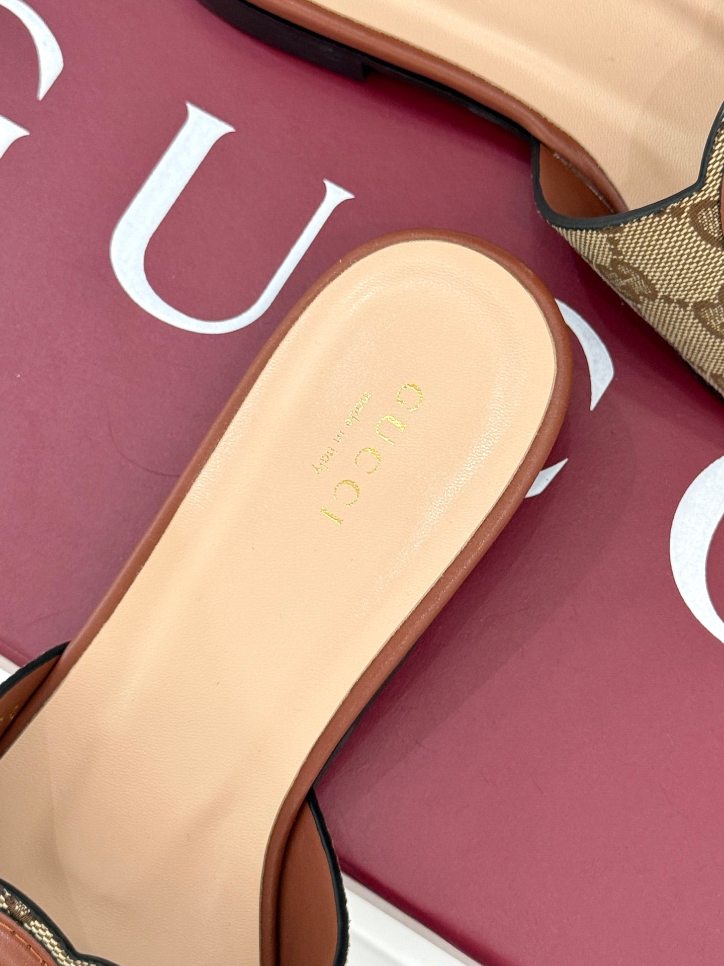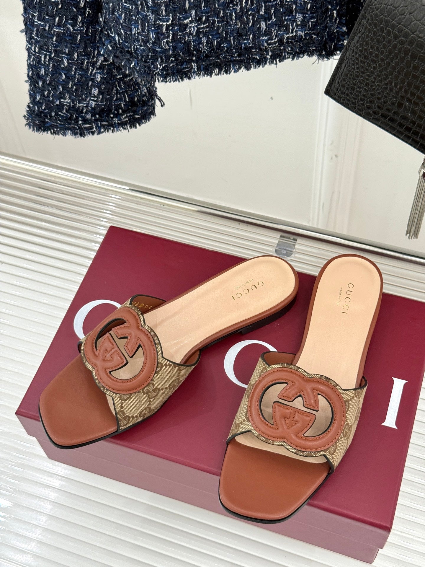 SLIDE SANDALS IN BURNT BROWN AND LIGHT BEIGE CALFSKIN