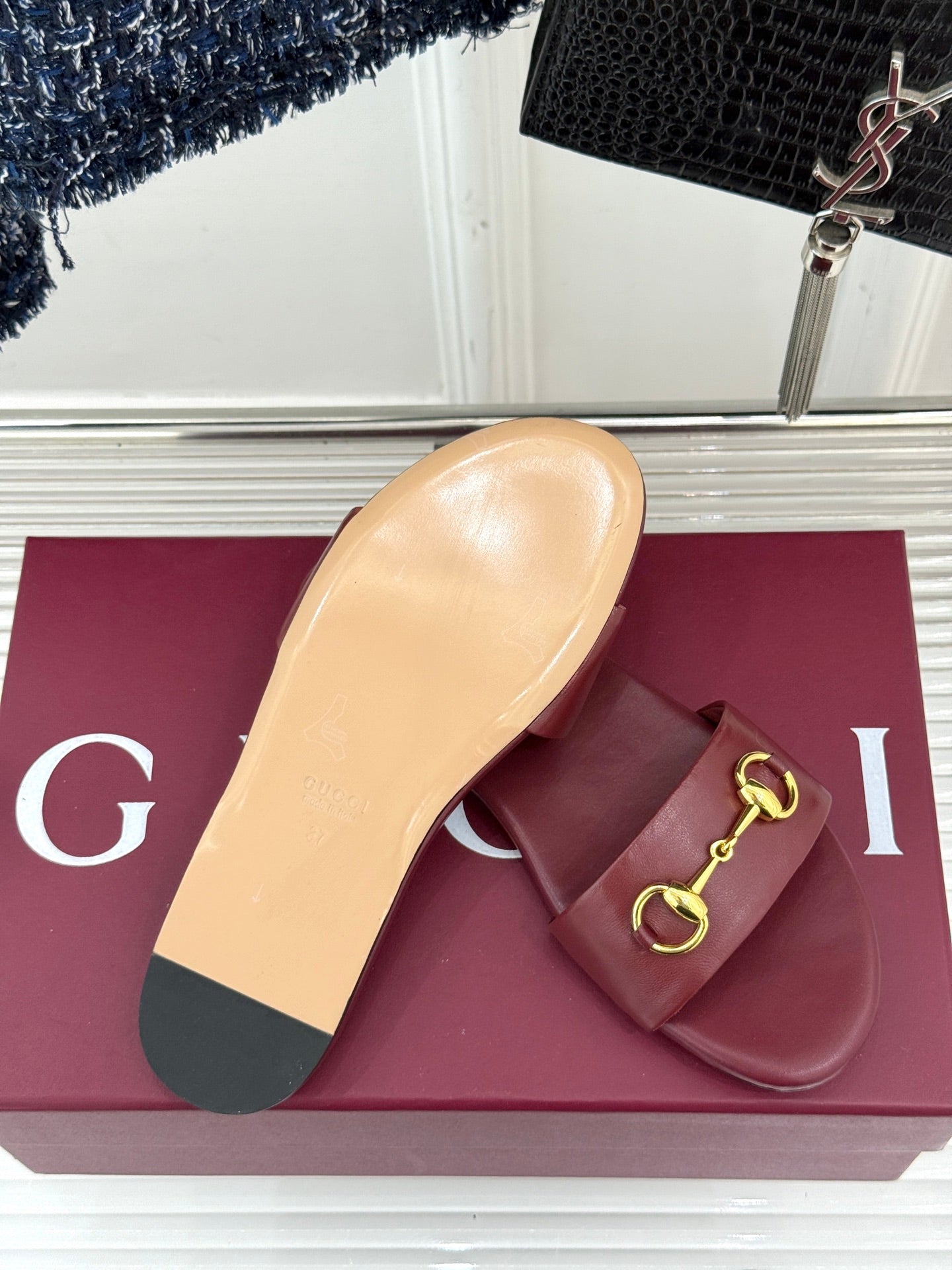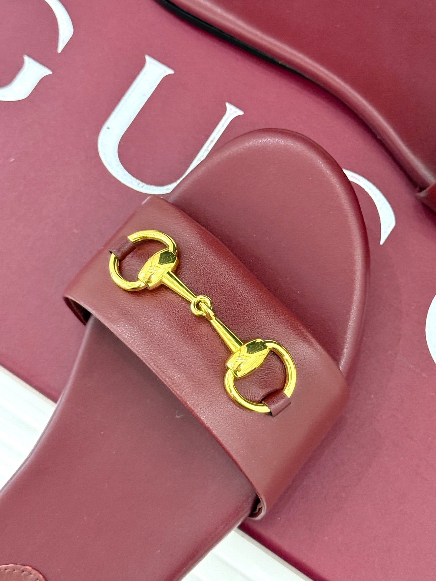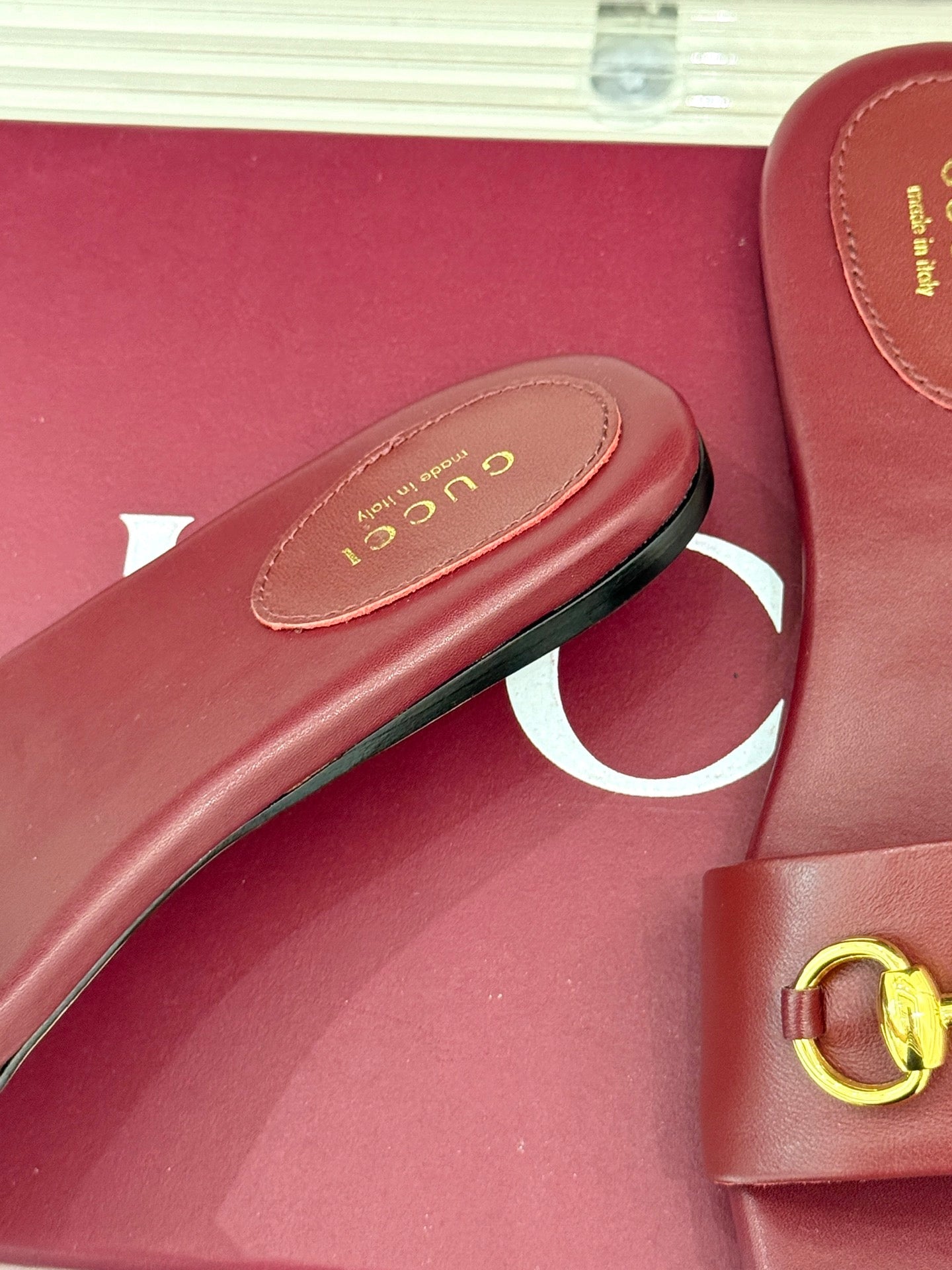 SLIDE SANDALS IN RED CALFSKIN WITH GOLD HARDWARE