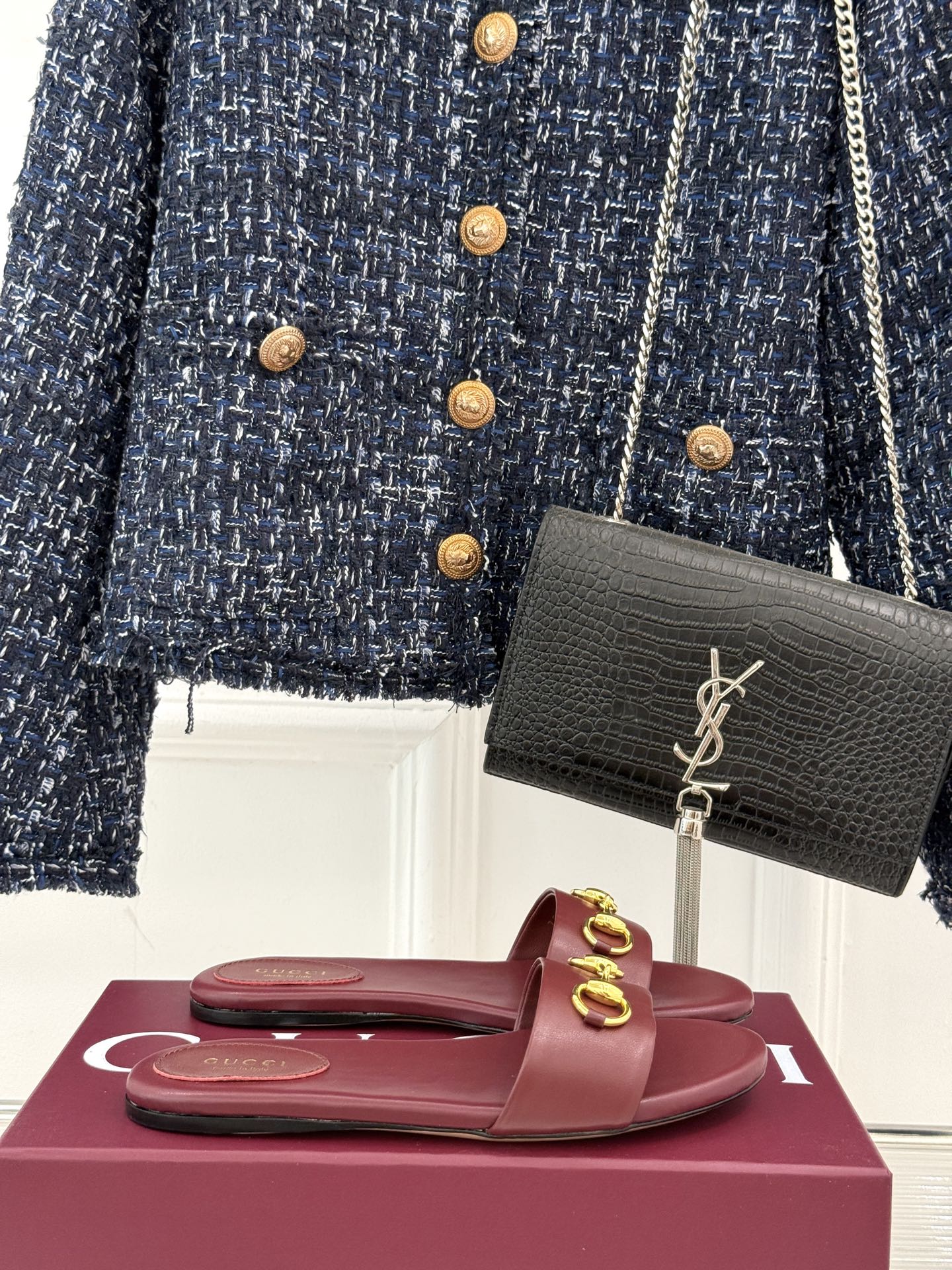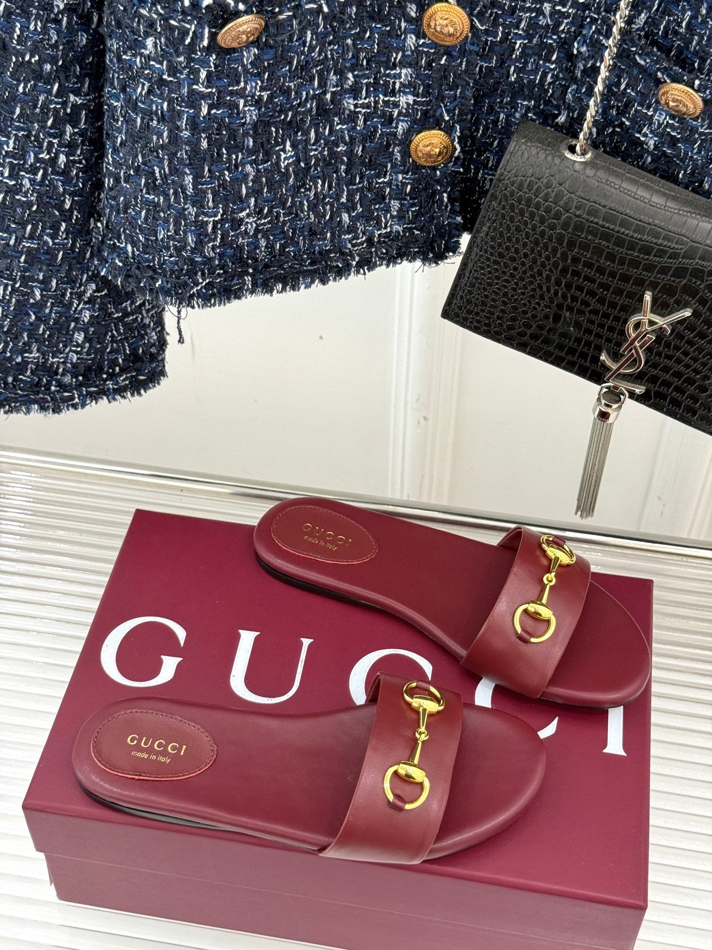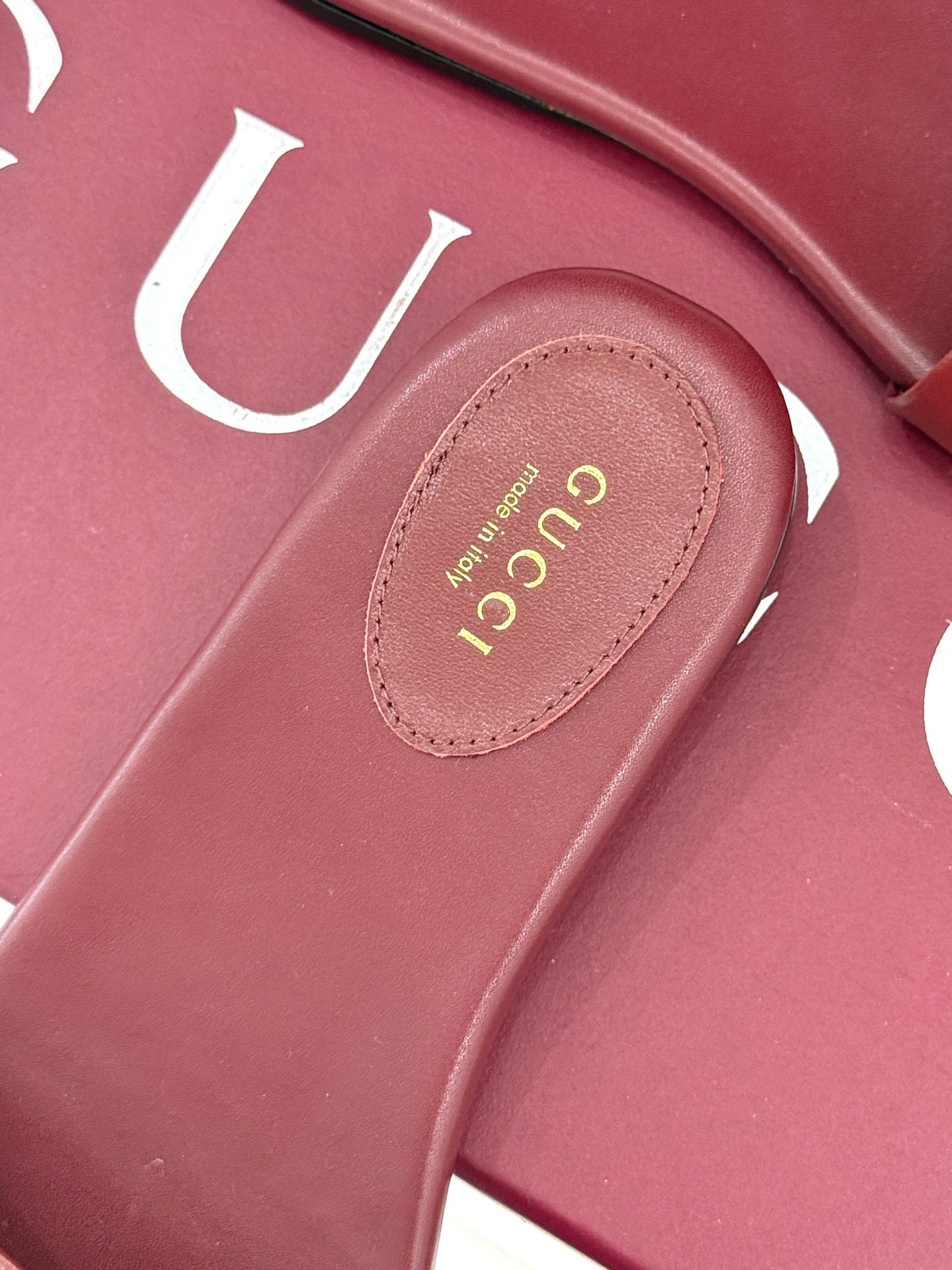 SLIDE SANDALS IN RED CALFSKIN WITH GOLD HARDWARE