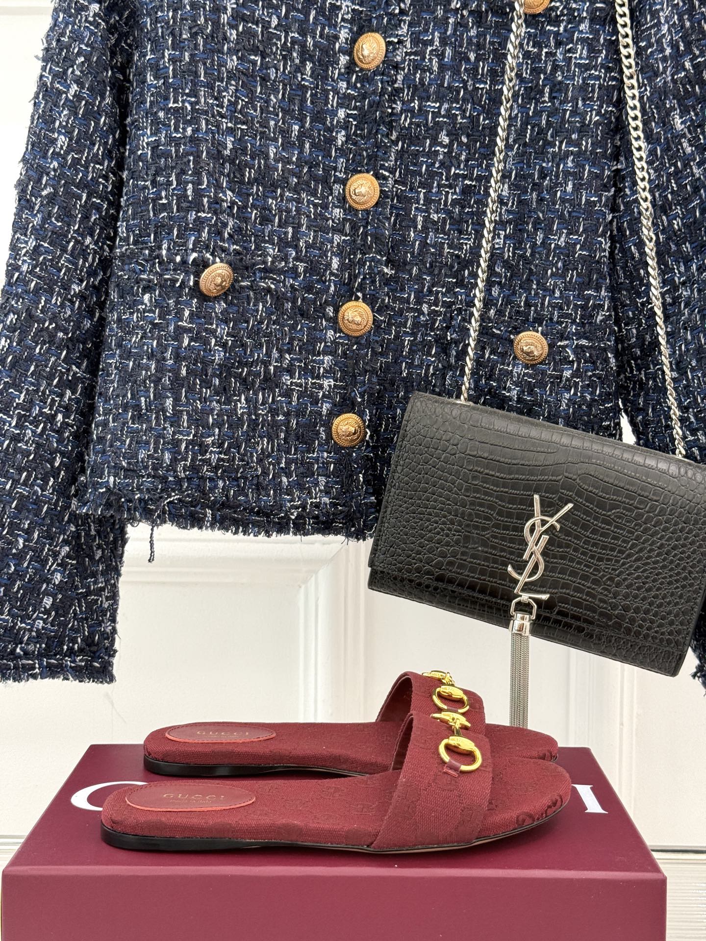 SLIDE SANDALS IN RED FABRIC EMBOSSED LOGO