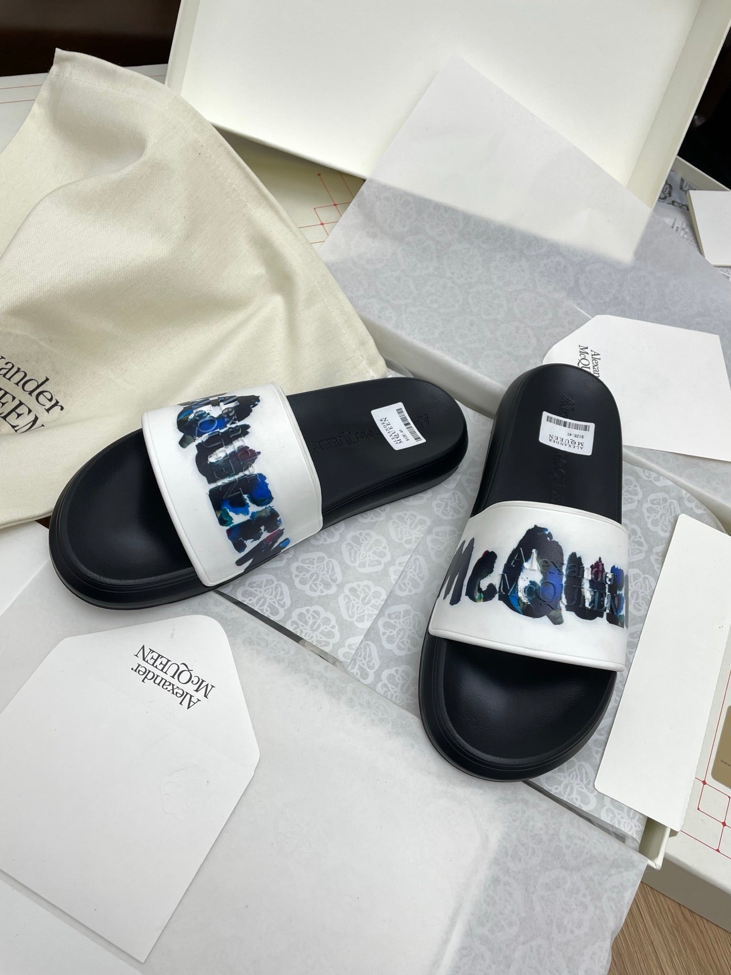 SLIDES SANDAL IN BLACK TPU WHITE STRAP WITH 3D LOGO