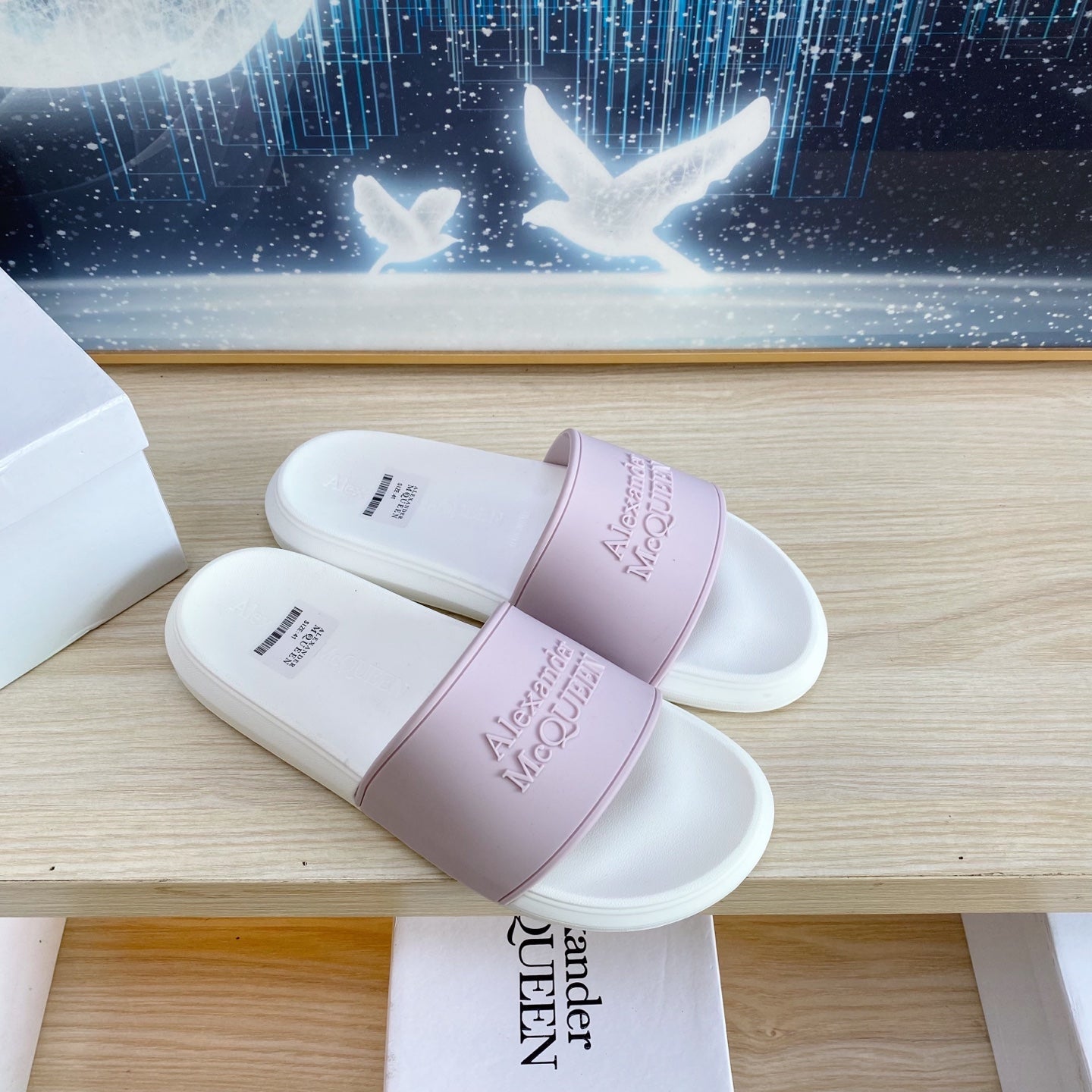 SLIDES SANDAL IN WHITE TPU VIOLET STRAP EMBOSSED LOGO