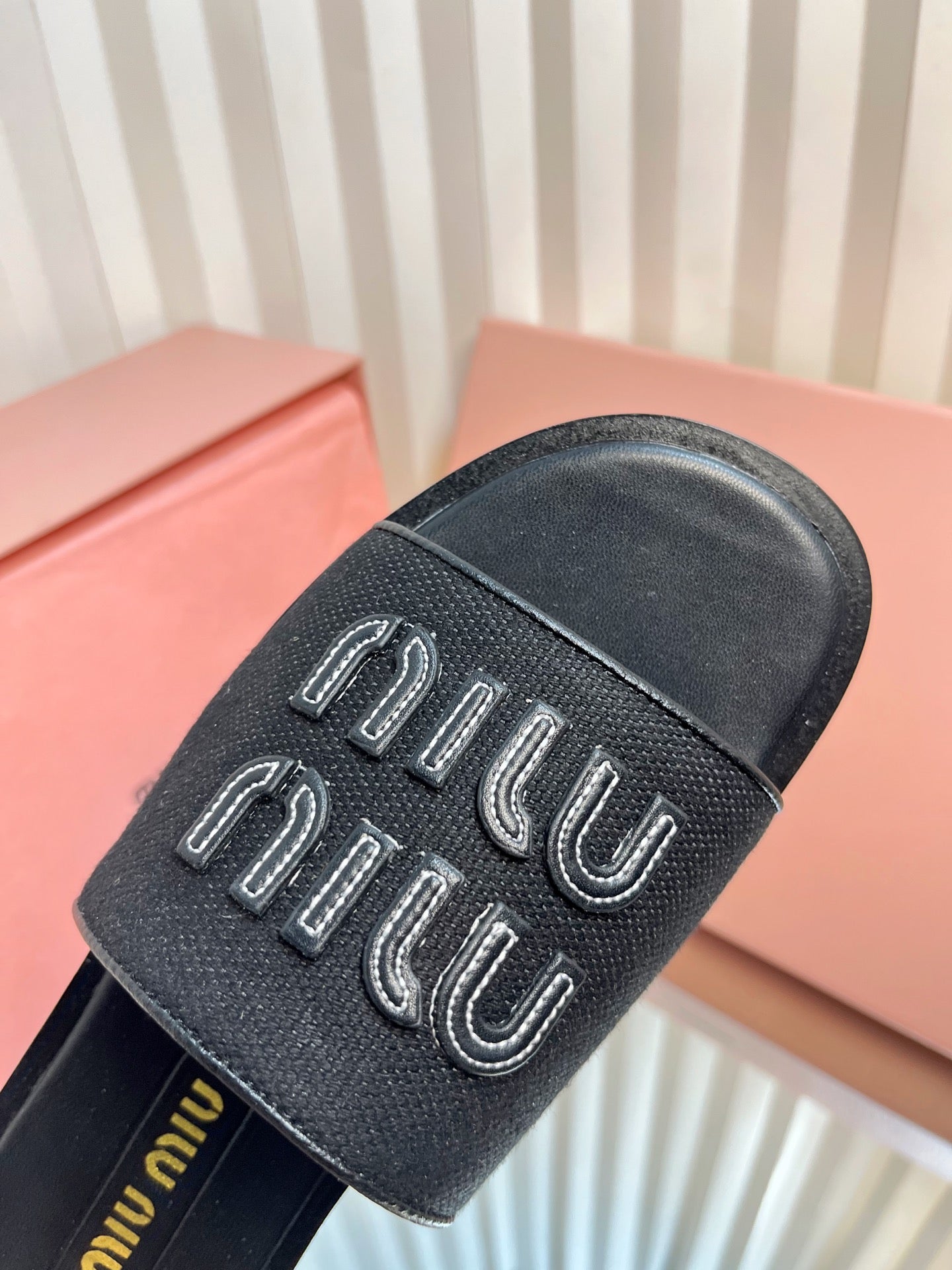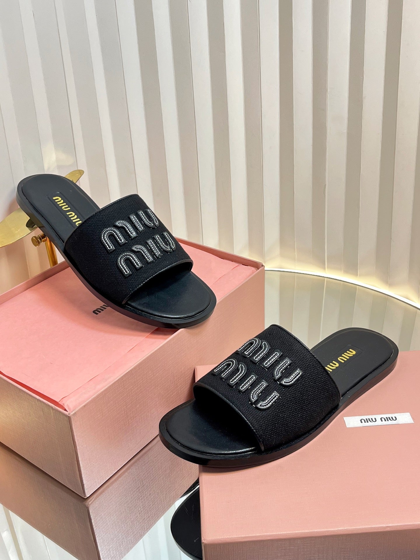 SLIDES SANDALS IN BLACK STRAW WOVEN