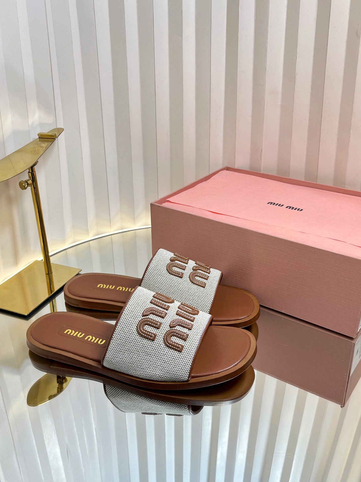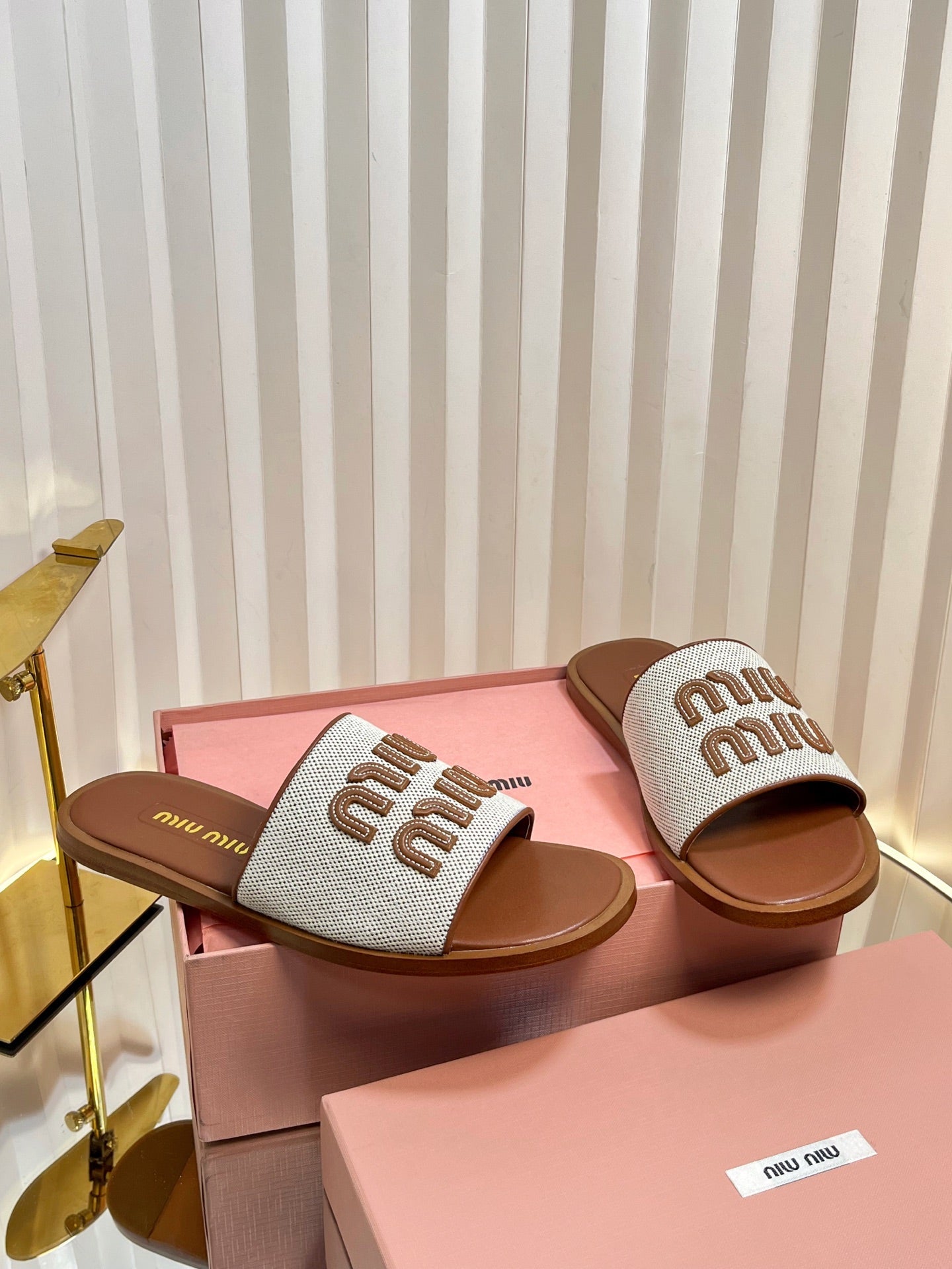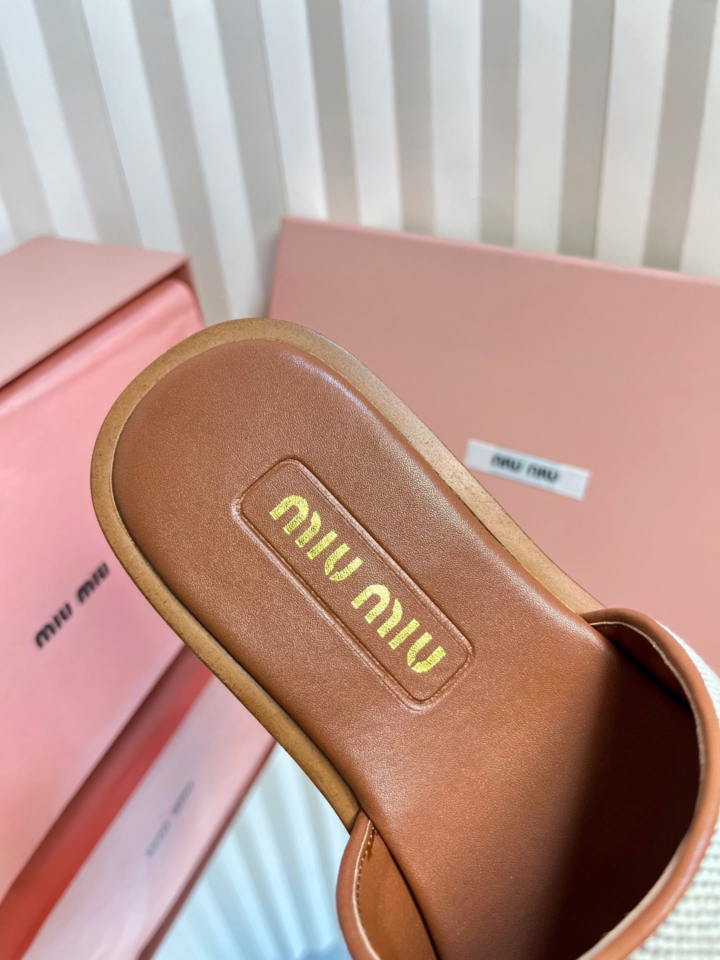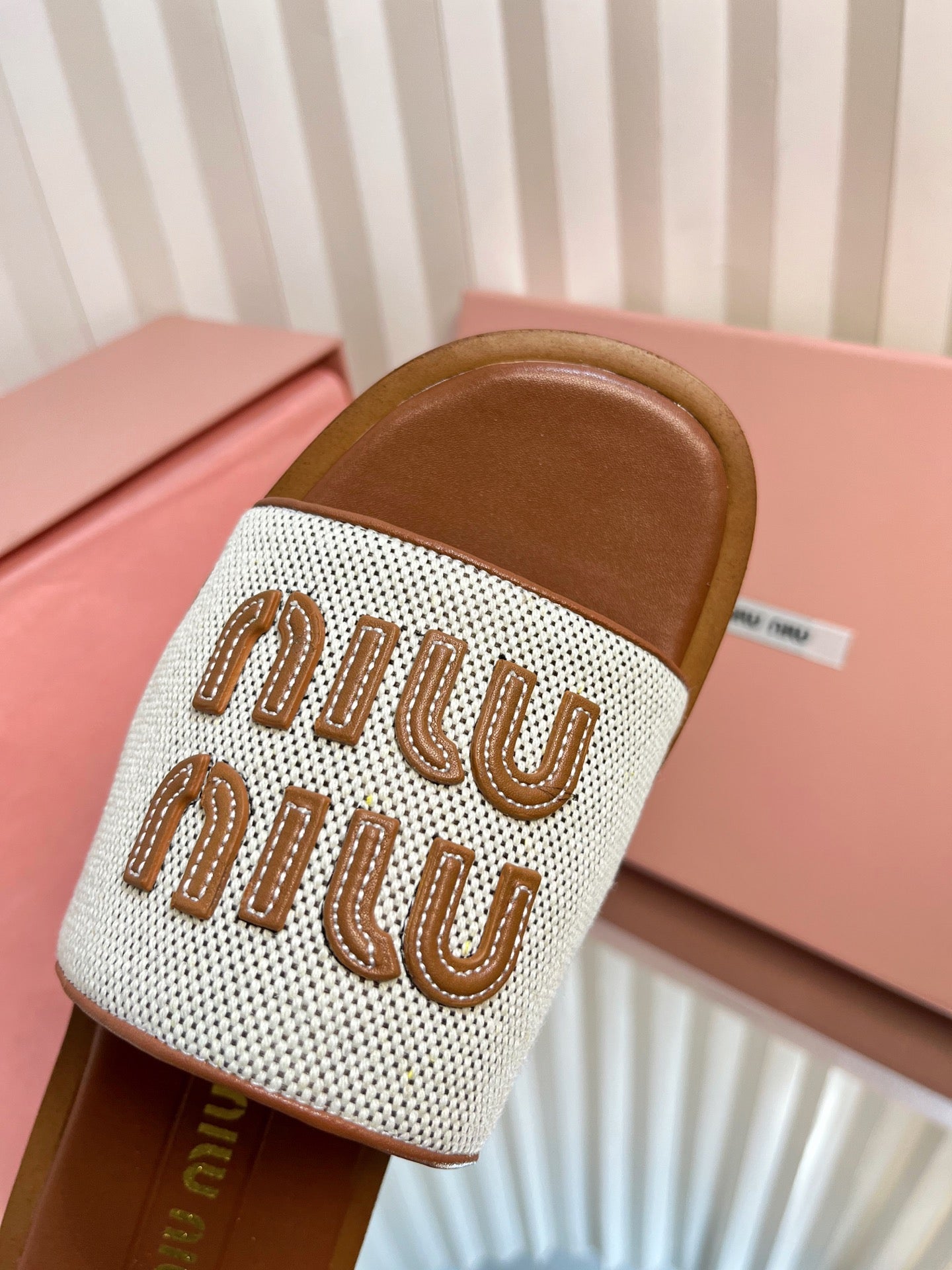 SLIDES SANDALS IN BROWN STRAW WOVEN