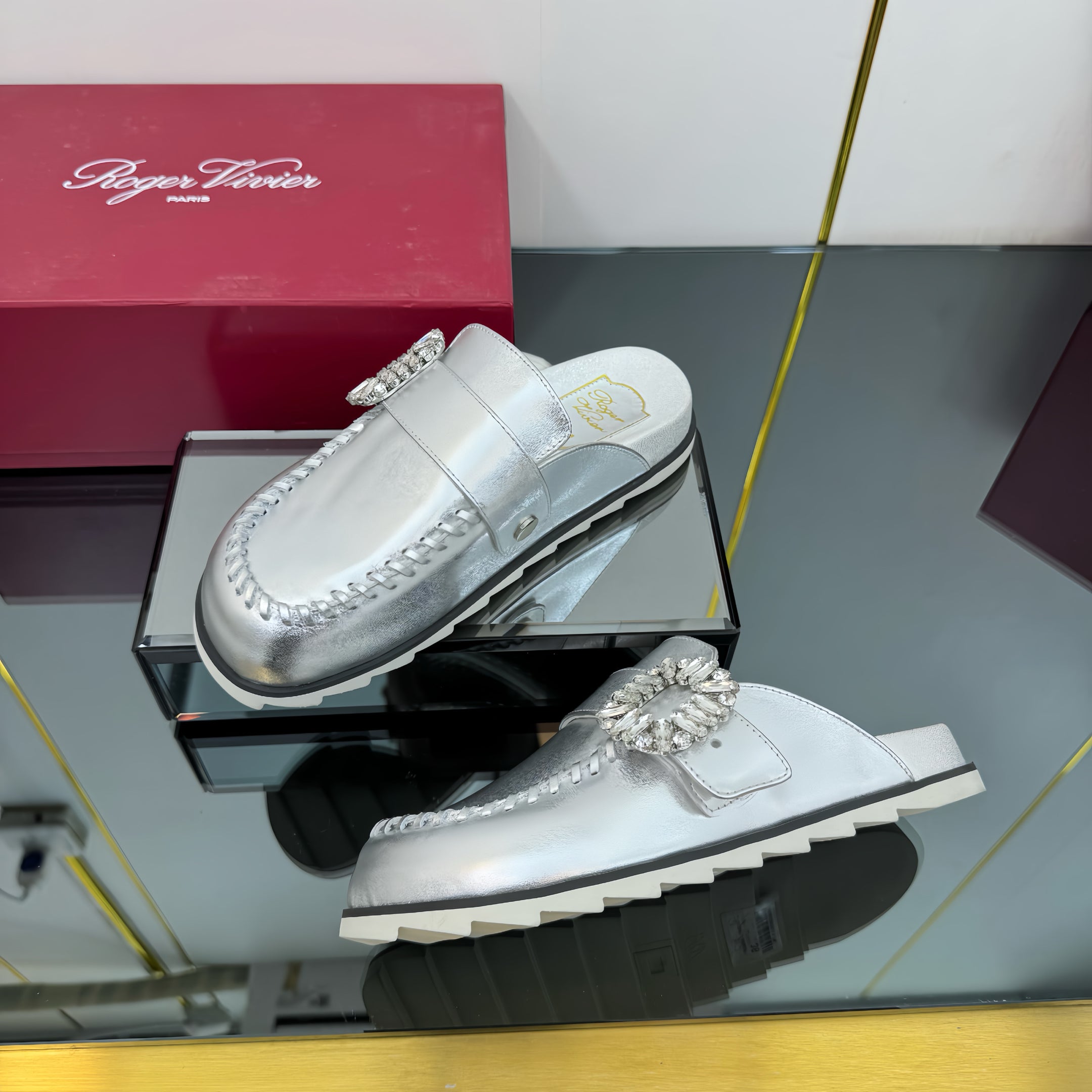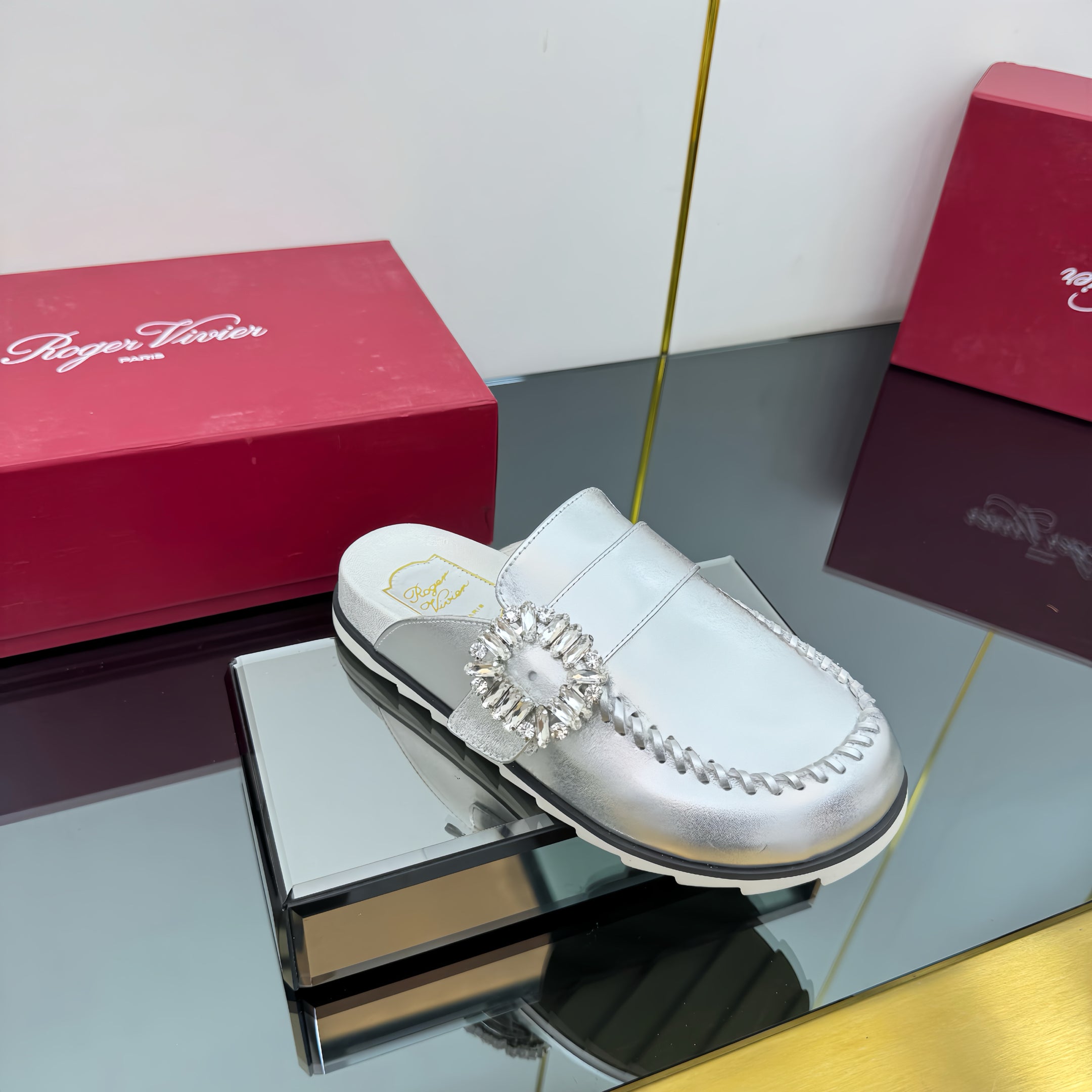 SLIDY VIV' MULES IN SILVER PATENT CALFSKIN