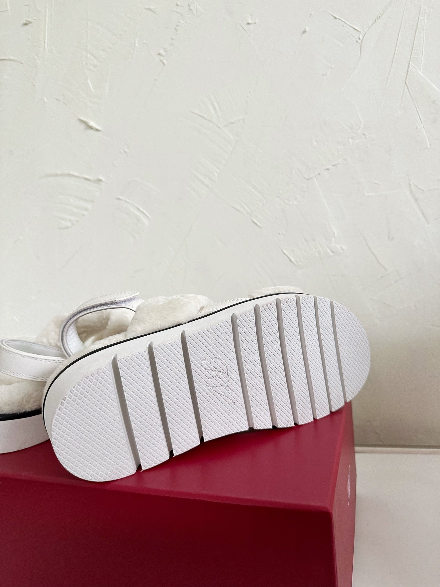 SLIDY VIV' WINTER FUR STRASS BUCKLE SANDALS IN WHITE SHEARLING
