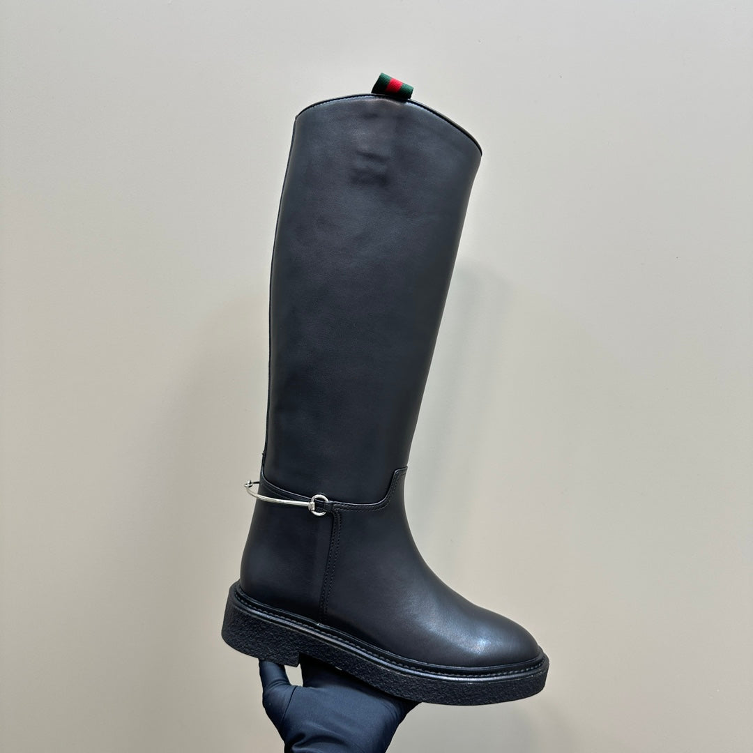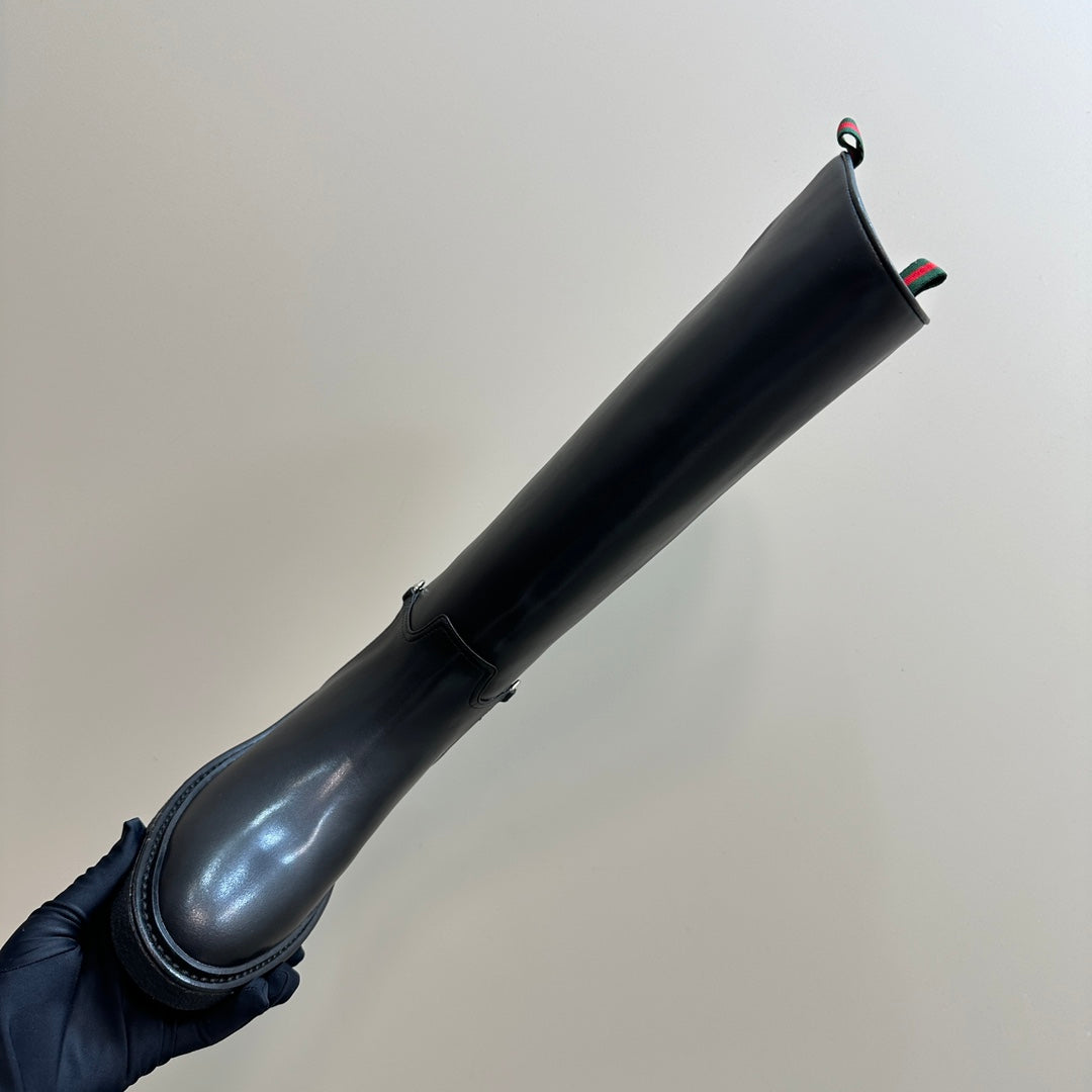 SLIM HORSEBIT KNEE BOOTS WITH WEB IN BLACK CALFSKIN