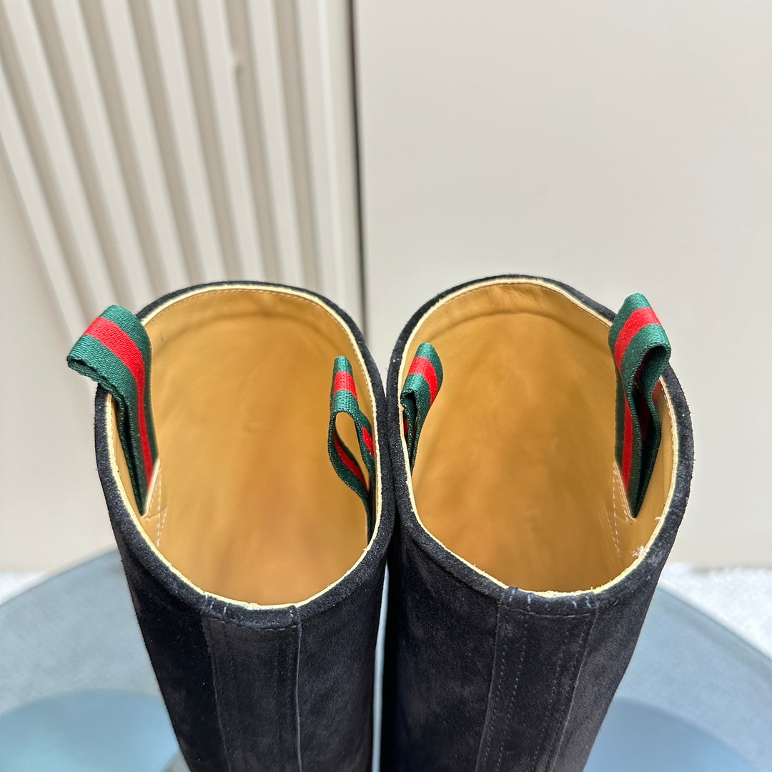 SLIM HORSEBIT KNEE BOOTS WITH WEB IN BLACK SUEDE
