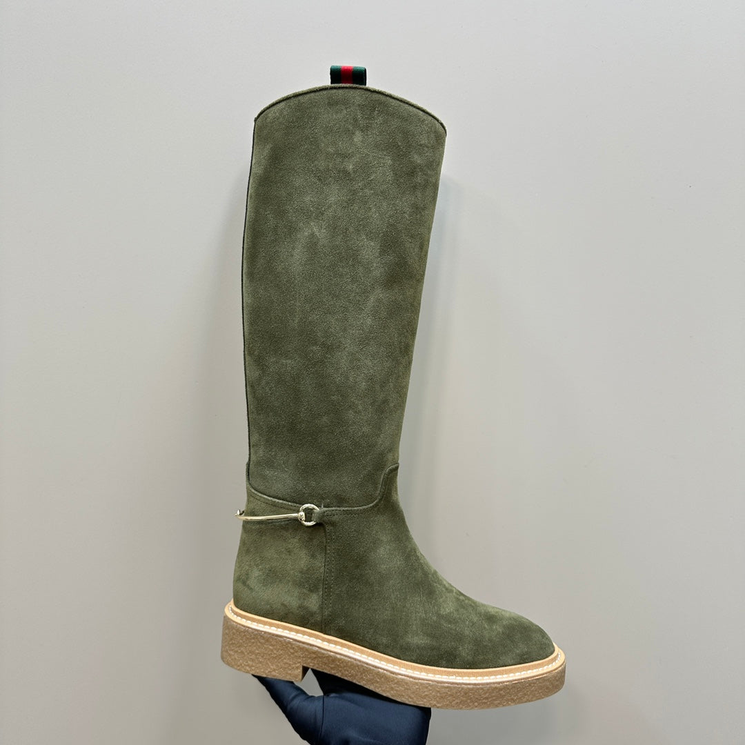 SLIM HORSEBIT KNEE BOOTS WITH WEB IN KHAKI GREEN SUEDE