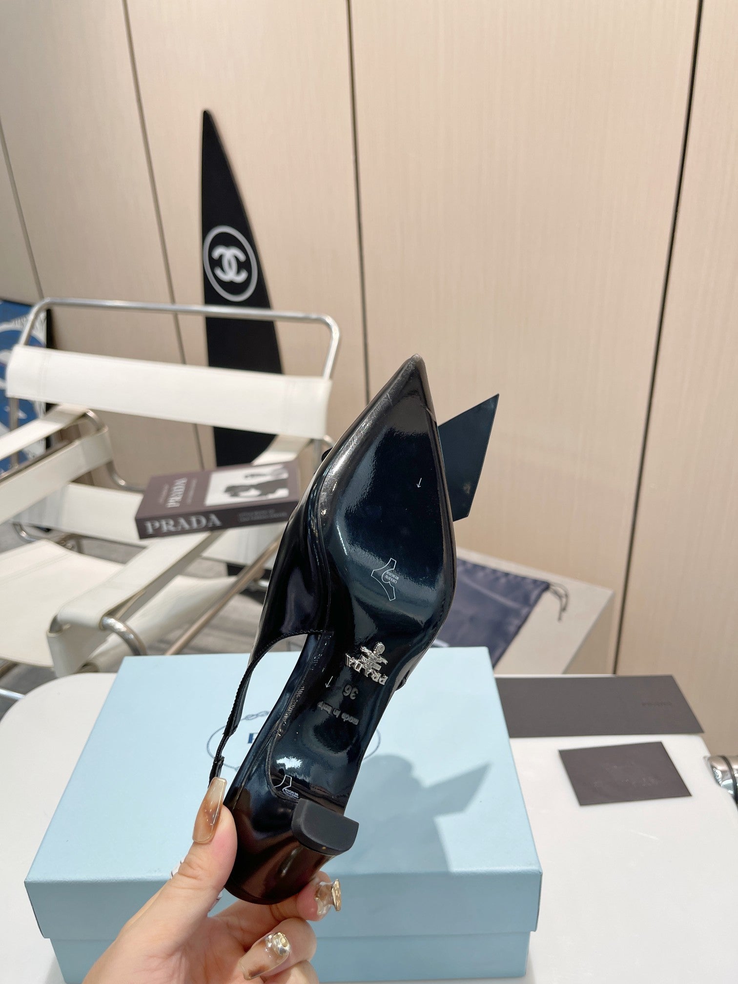 SLINGBACK KITTEN HEEL IN BLACK SHINY CALFSKIN ATTACHED FLOWERS