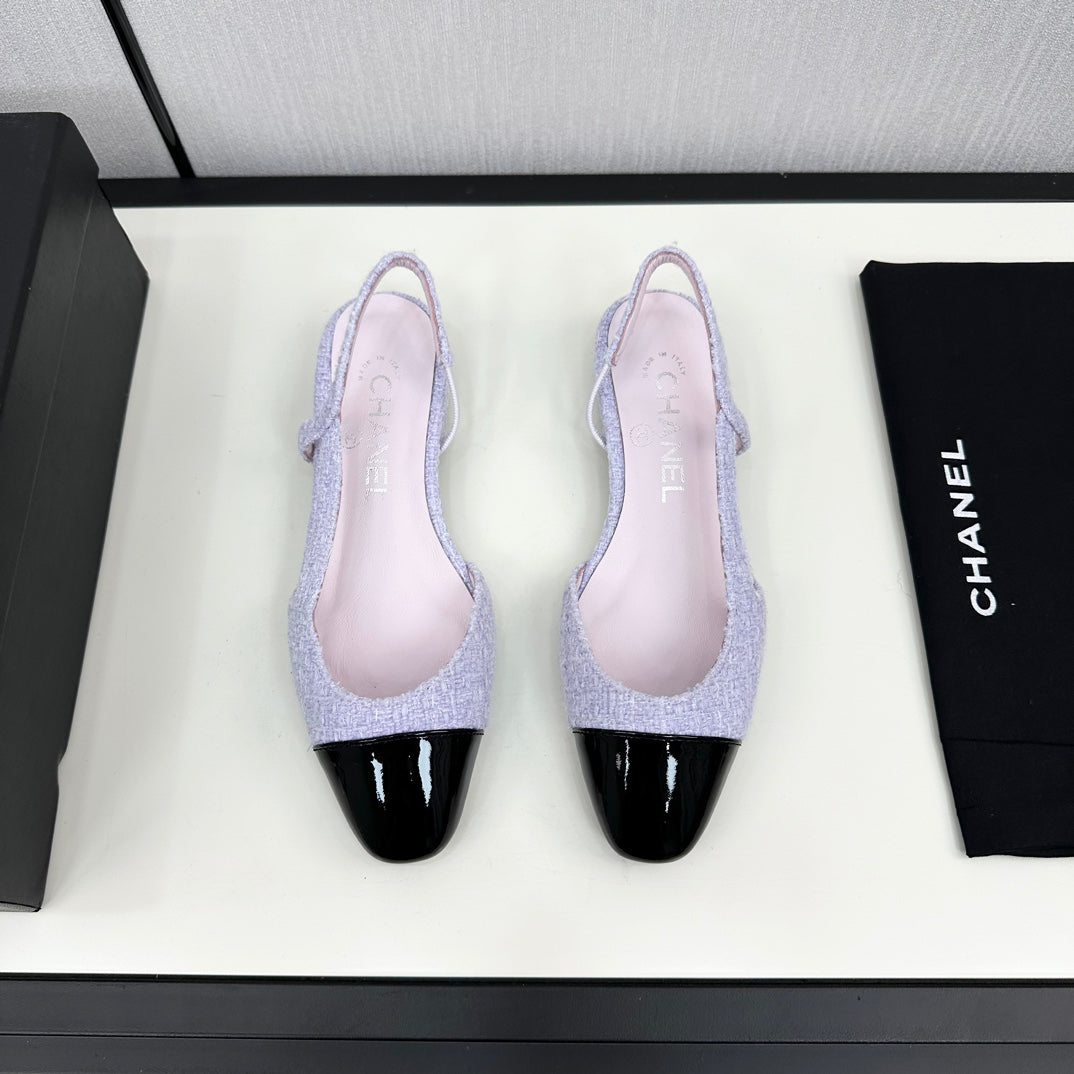SLINGBACK LIGHT BLUE TWEED AND BLACK CALFSKIN