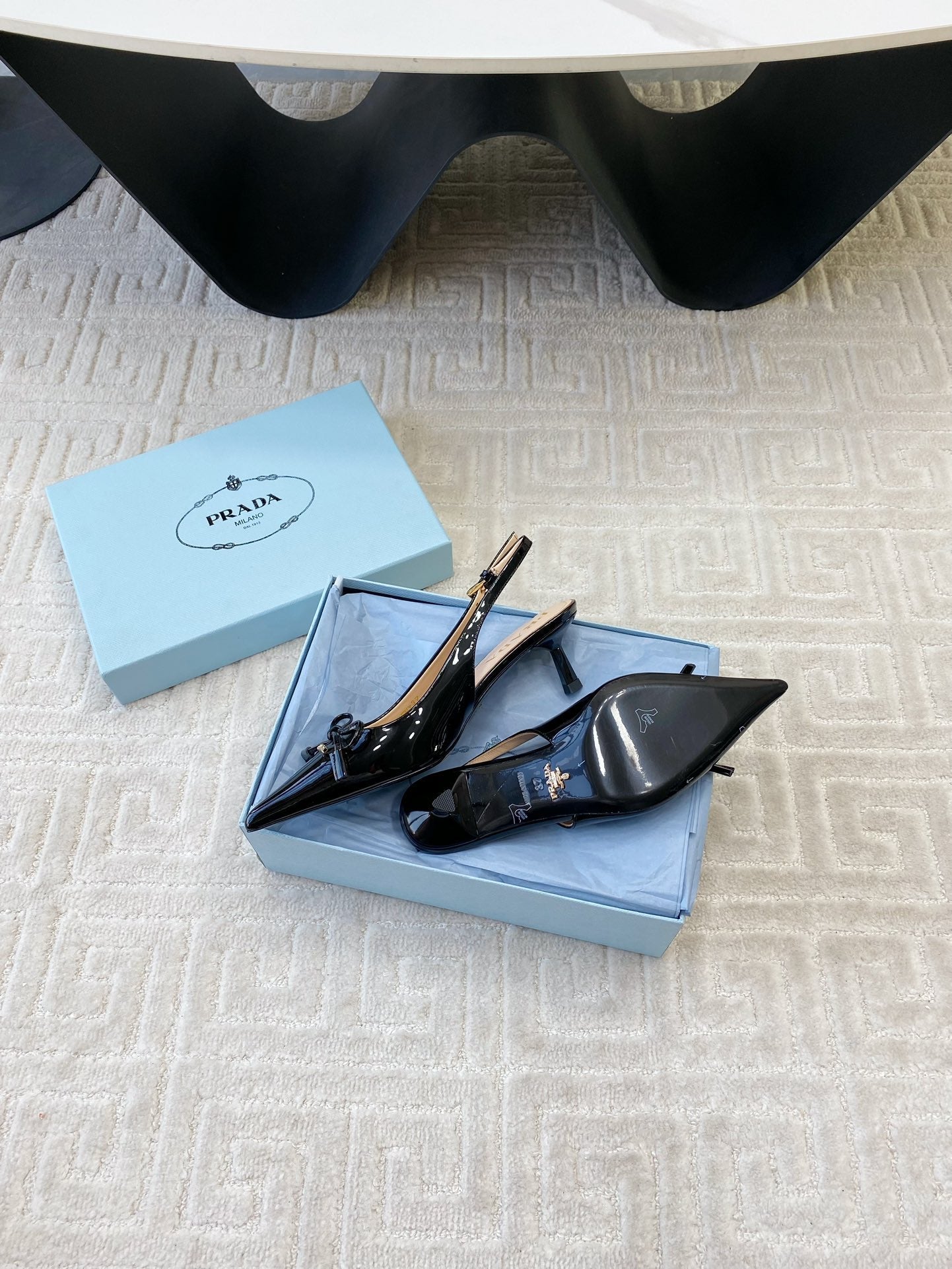 SLINGBACK PUMPS ATTACHED BOW IN BLACK GLOSSY CALFSKIN