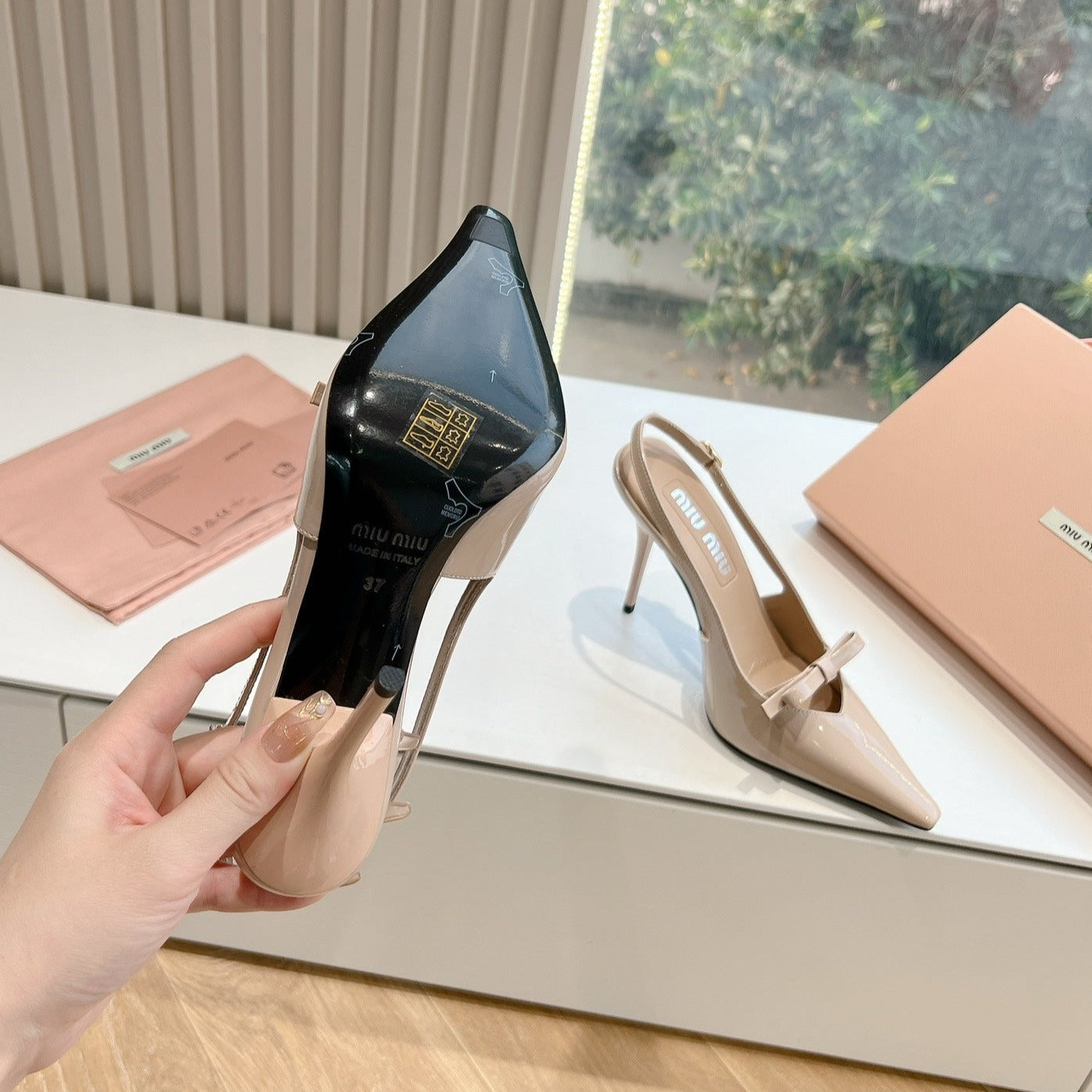 Slingback Warm Ivory Imported Patent Leather