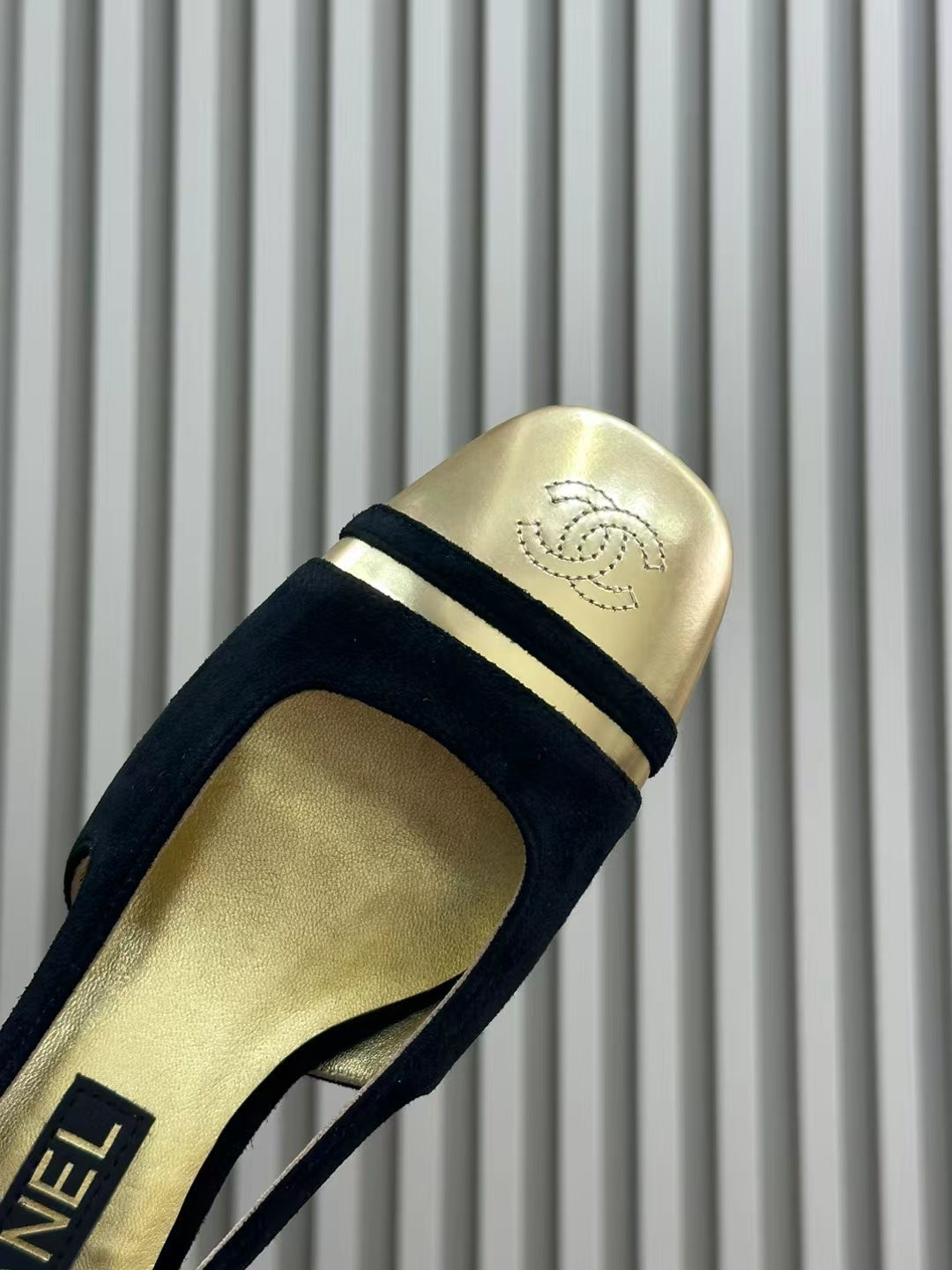 SLINGBACKS IN BLACK SUEDE AND GOLDEN LAMBSKIN