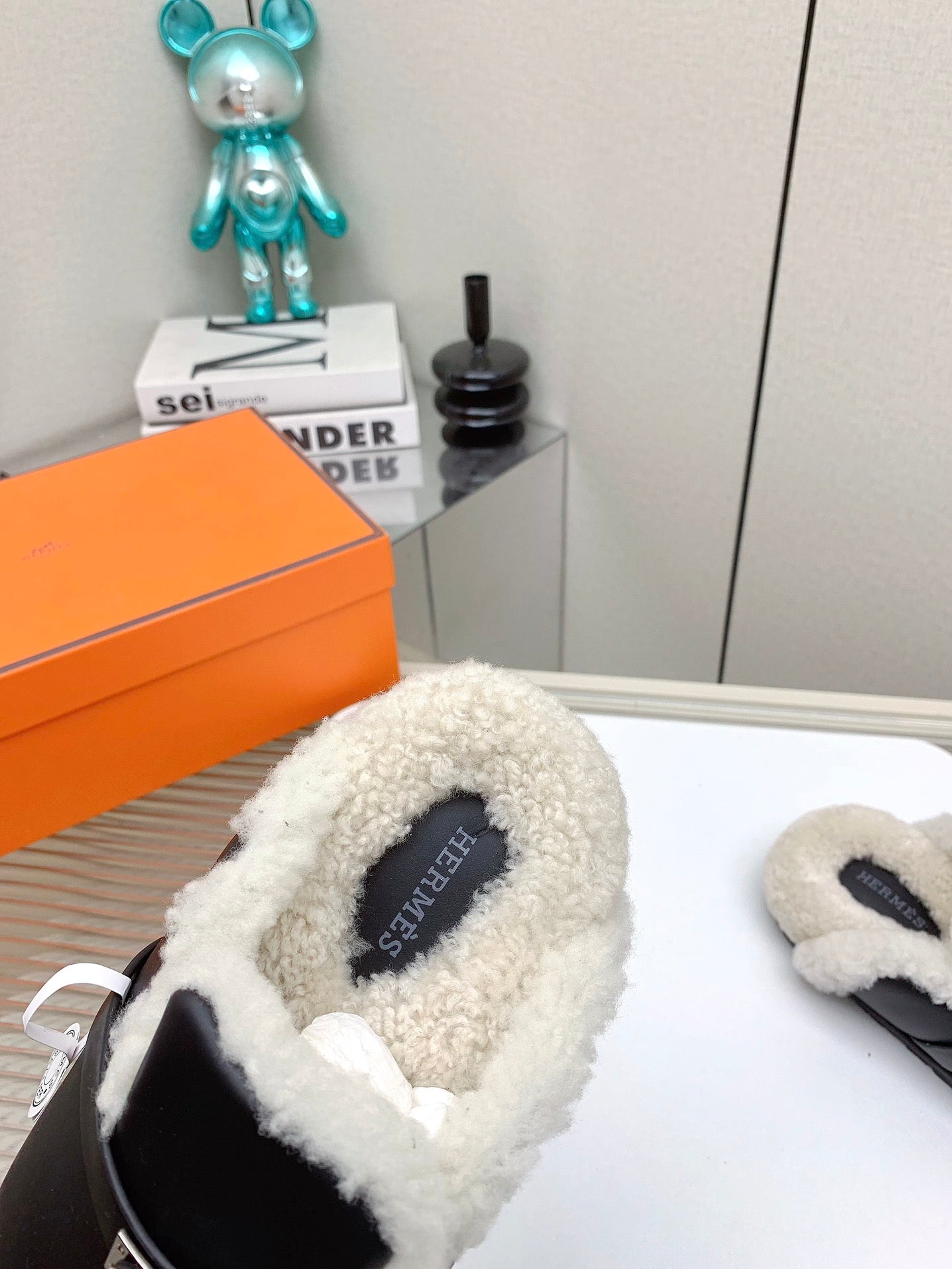 SLIP-ON MULE IN BLACK CALFSKIN AND SHEARLING LINING
