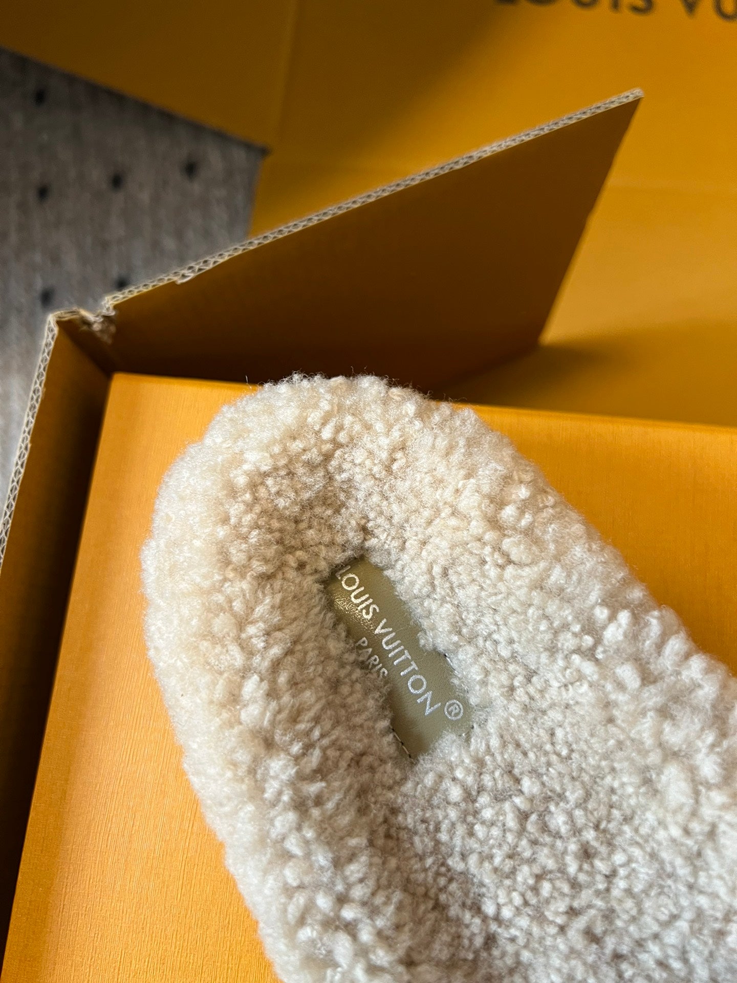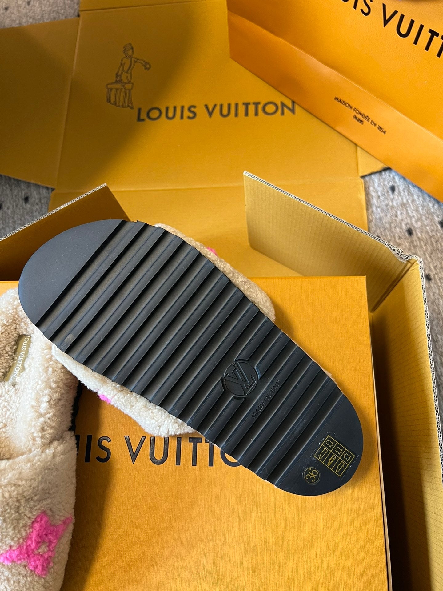 SLIPPER IN CAMEL BEIGE FLEECE WITH BRIGHT PINK LOGO