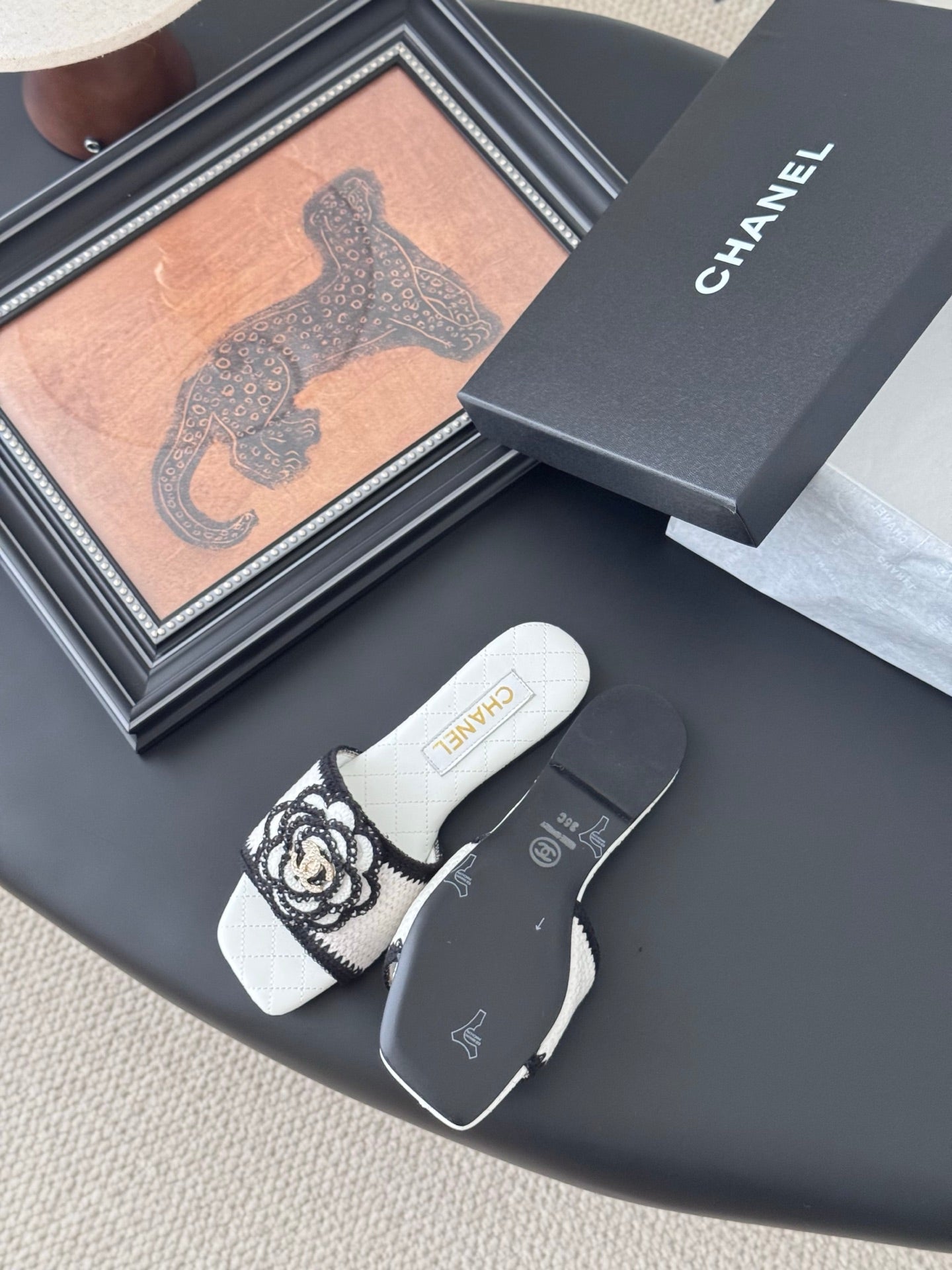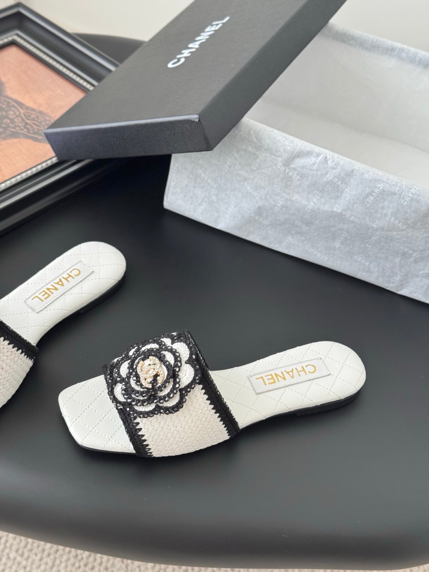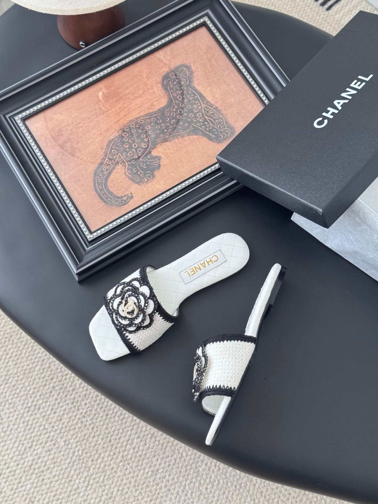 SLIPPER IN WHITE AND BLACK CALFSKIN MIX WOOL