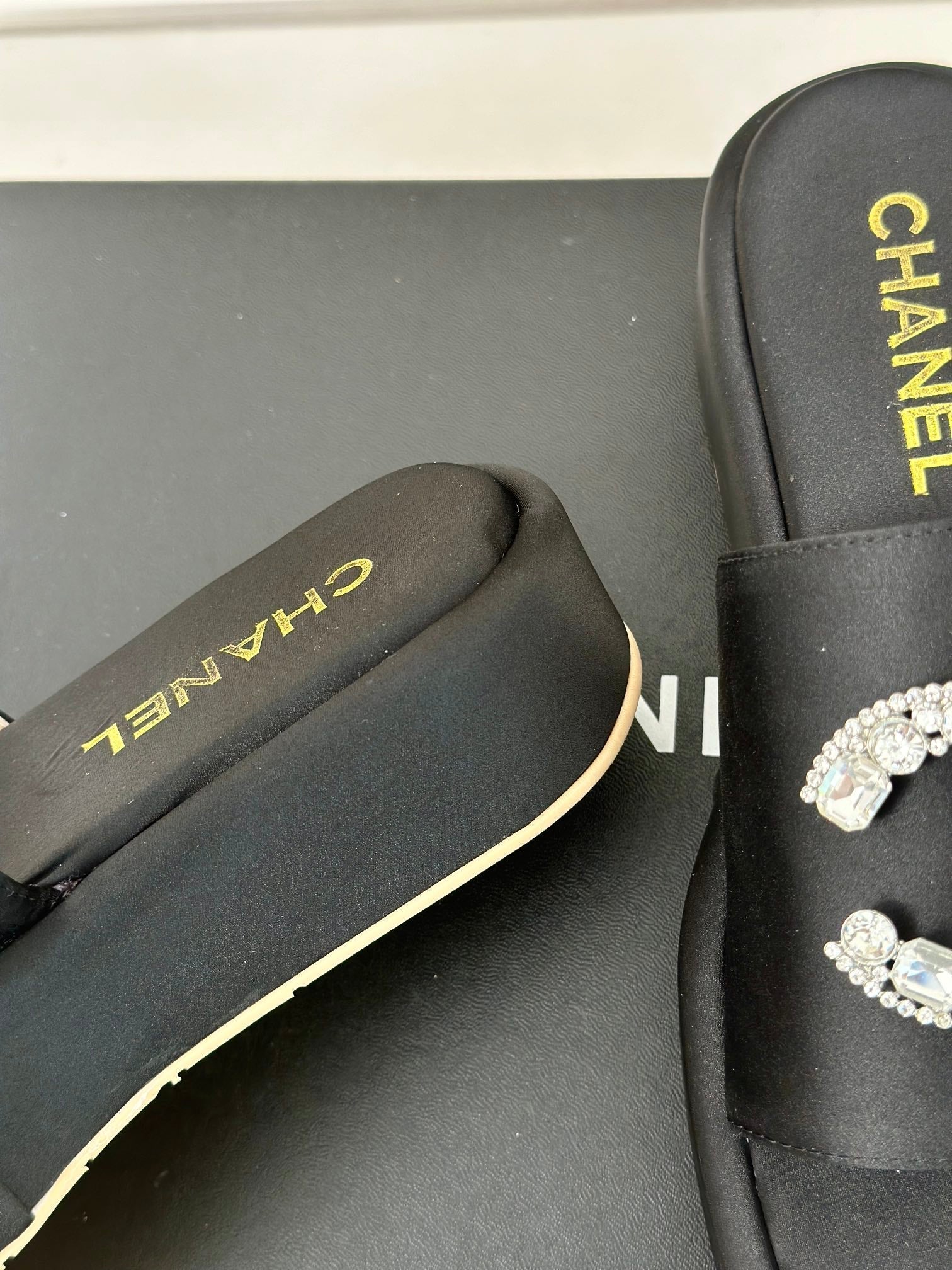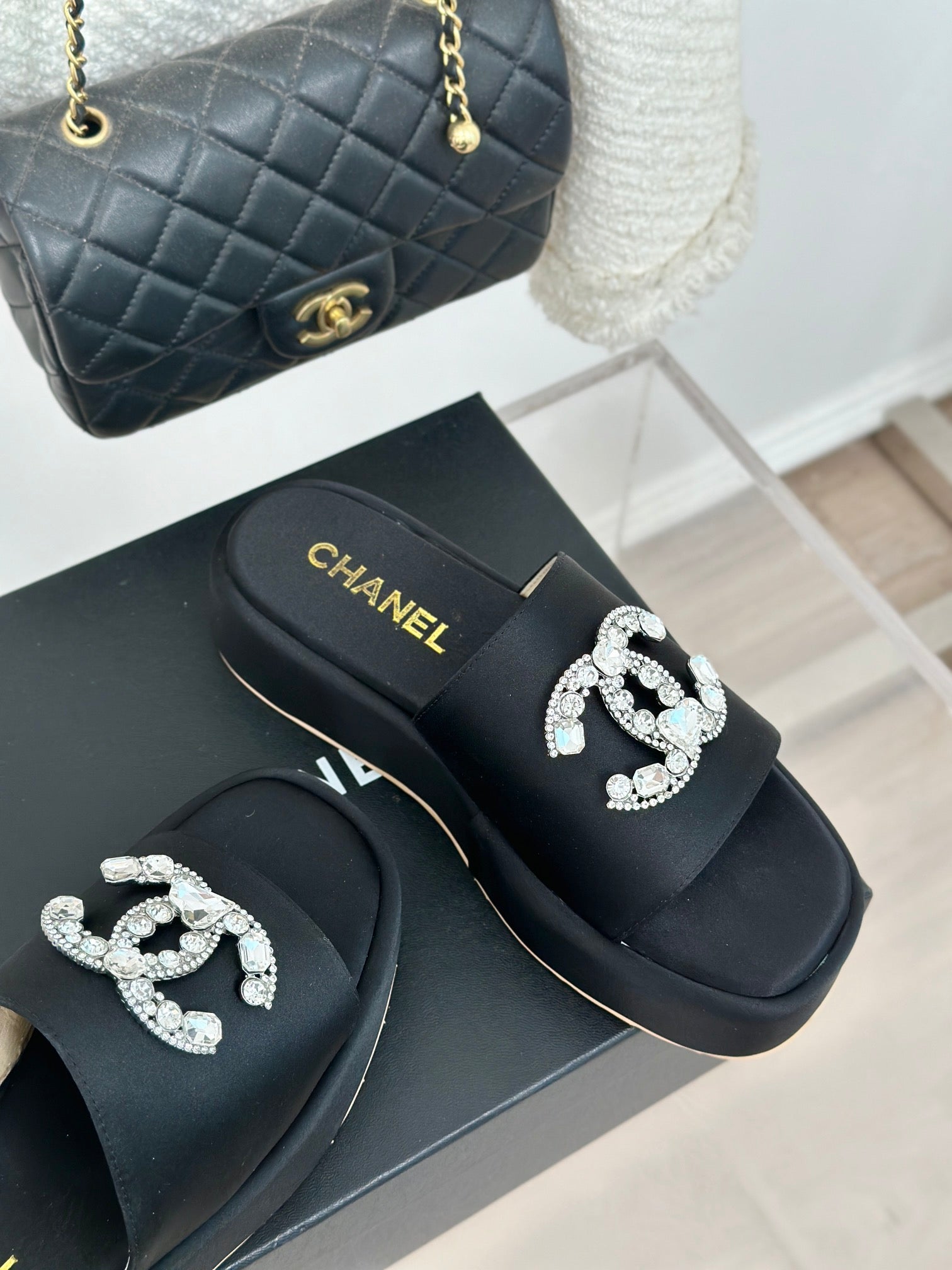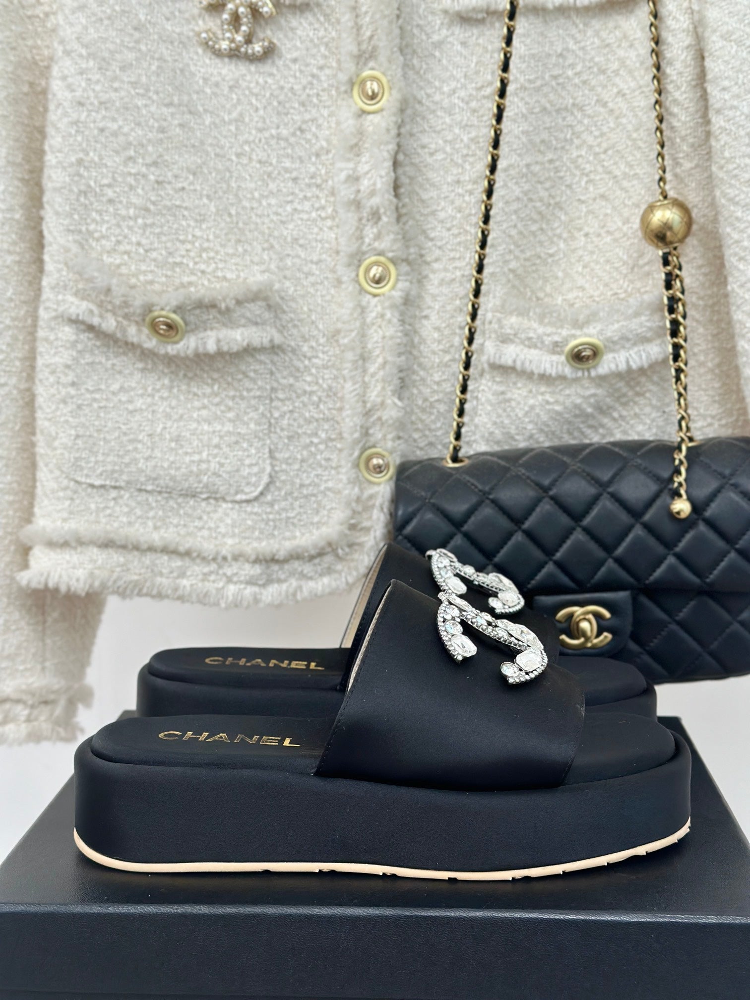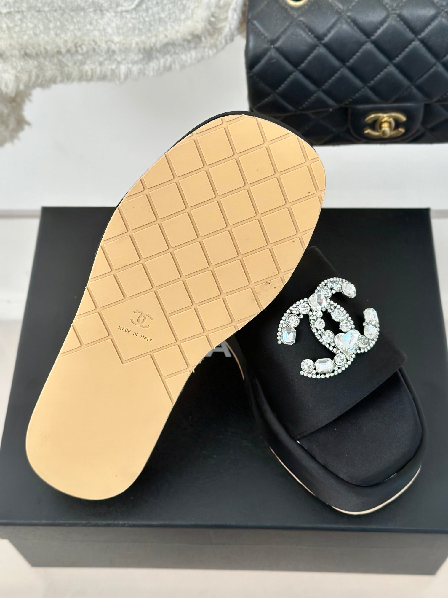 SLIPPERS THICK SOLE IN BLACK SATIN