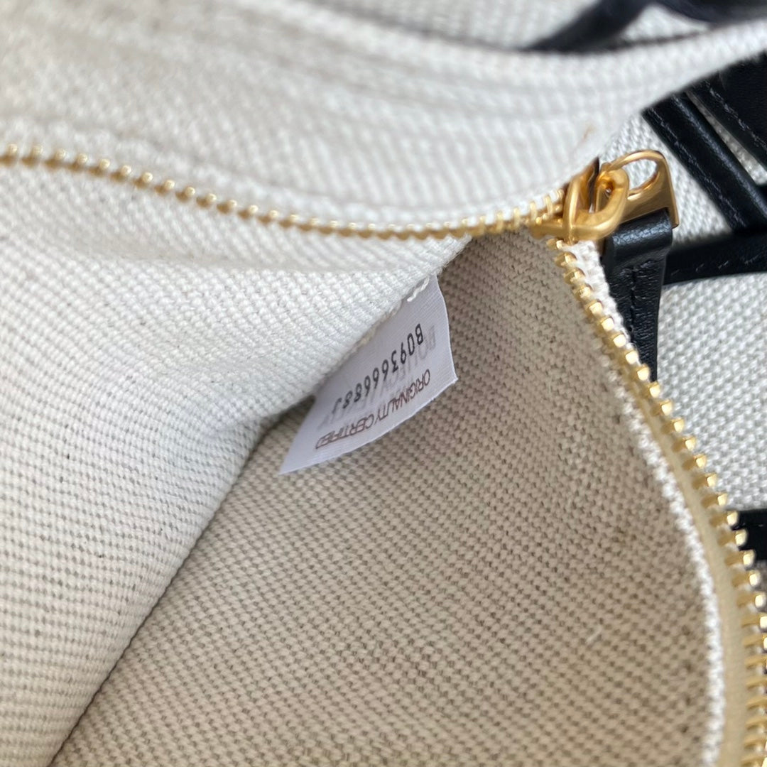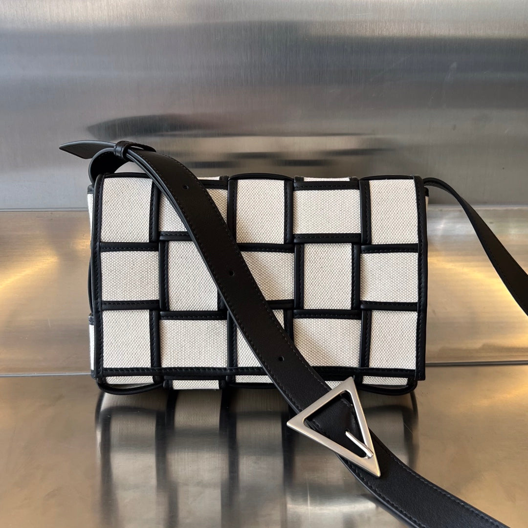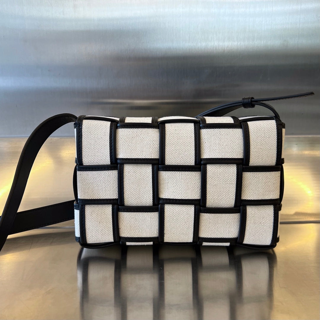 SMALL CASSETTE 23 IN WHITE CANVAS AND BLACK CALFSKIN TRIM