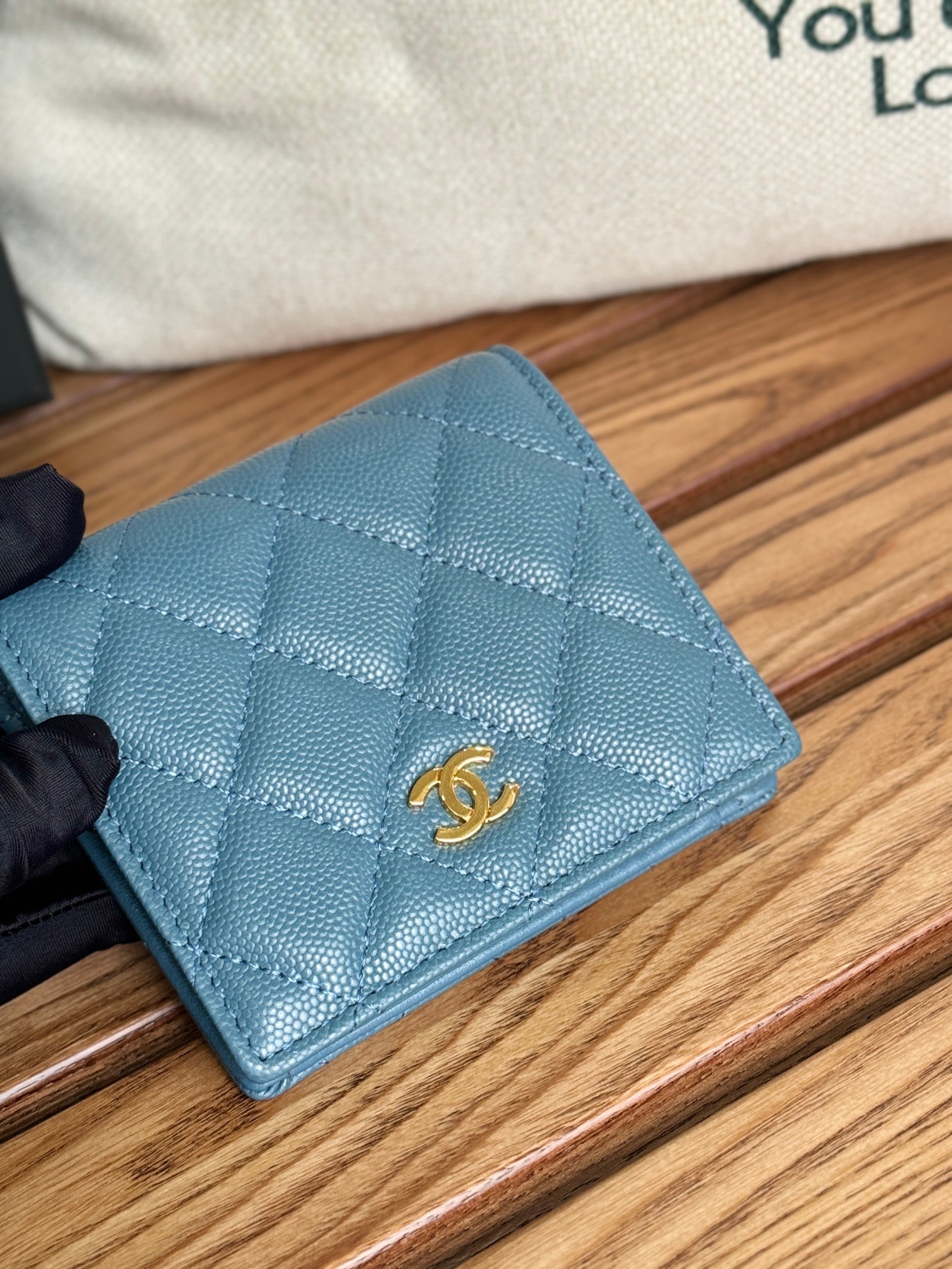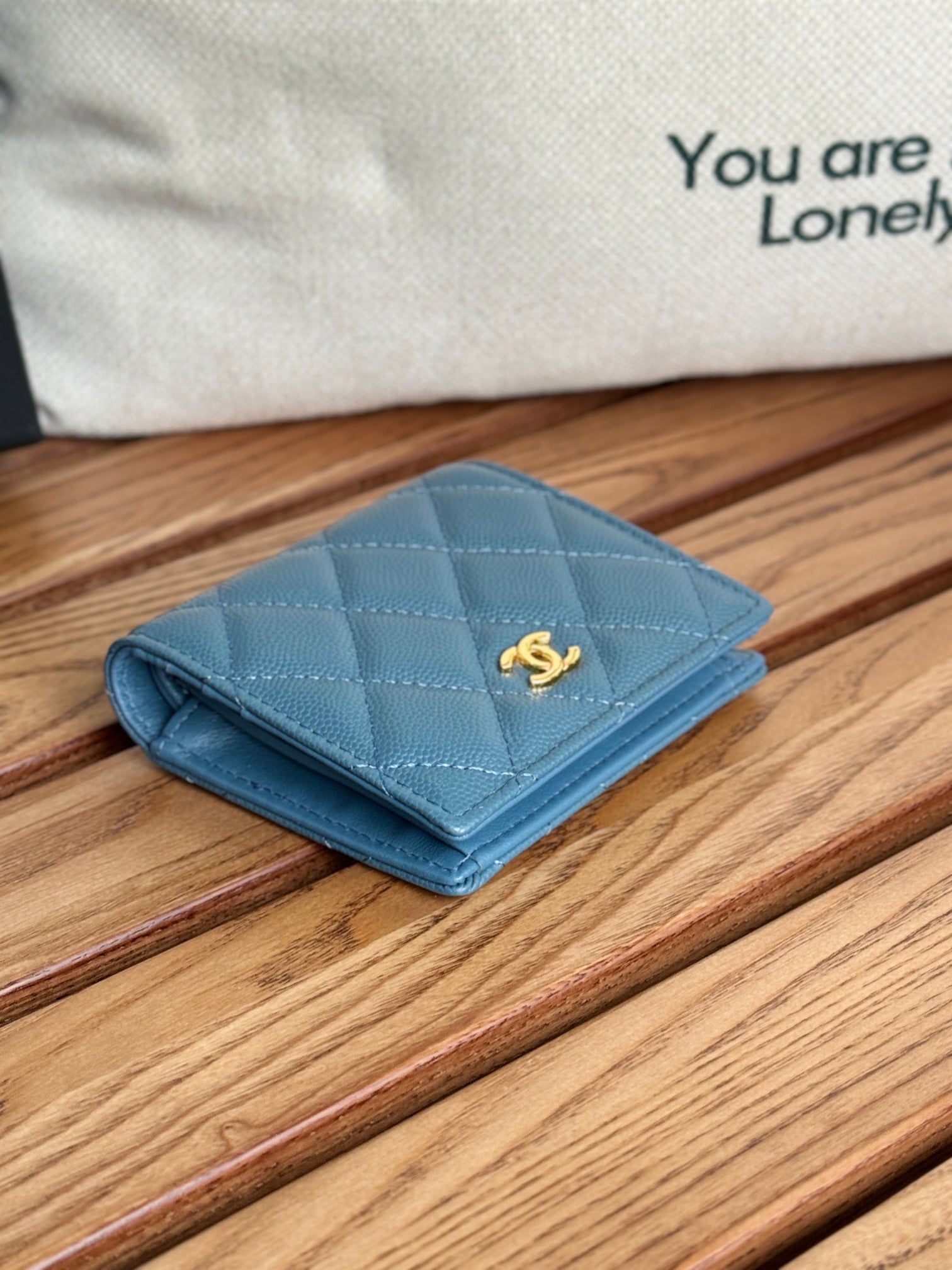 SMALL FLAP WALLET 12 IN NEPAL BLUE GRAINED CALFSKIN GOLD-TONE HARDWARE