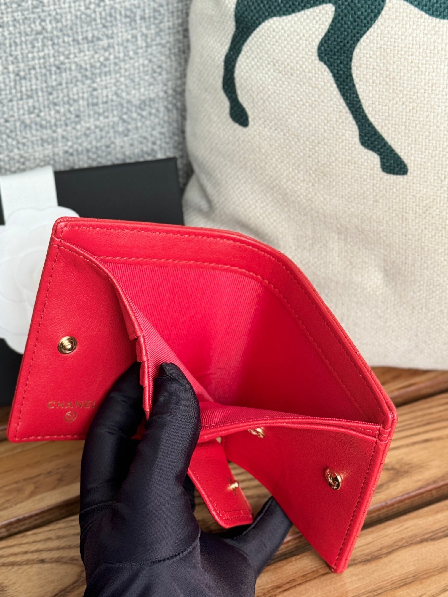 SMALL FLAP WALLET 12 IN RED GRAINED CALFSKIN GOLD-TONE HARDWARE