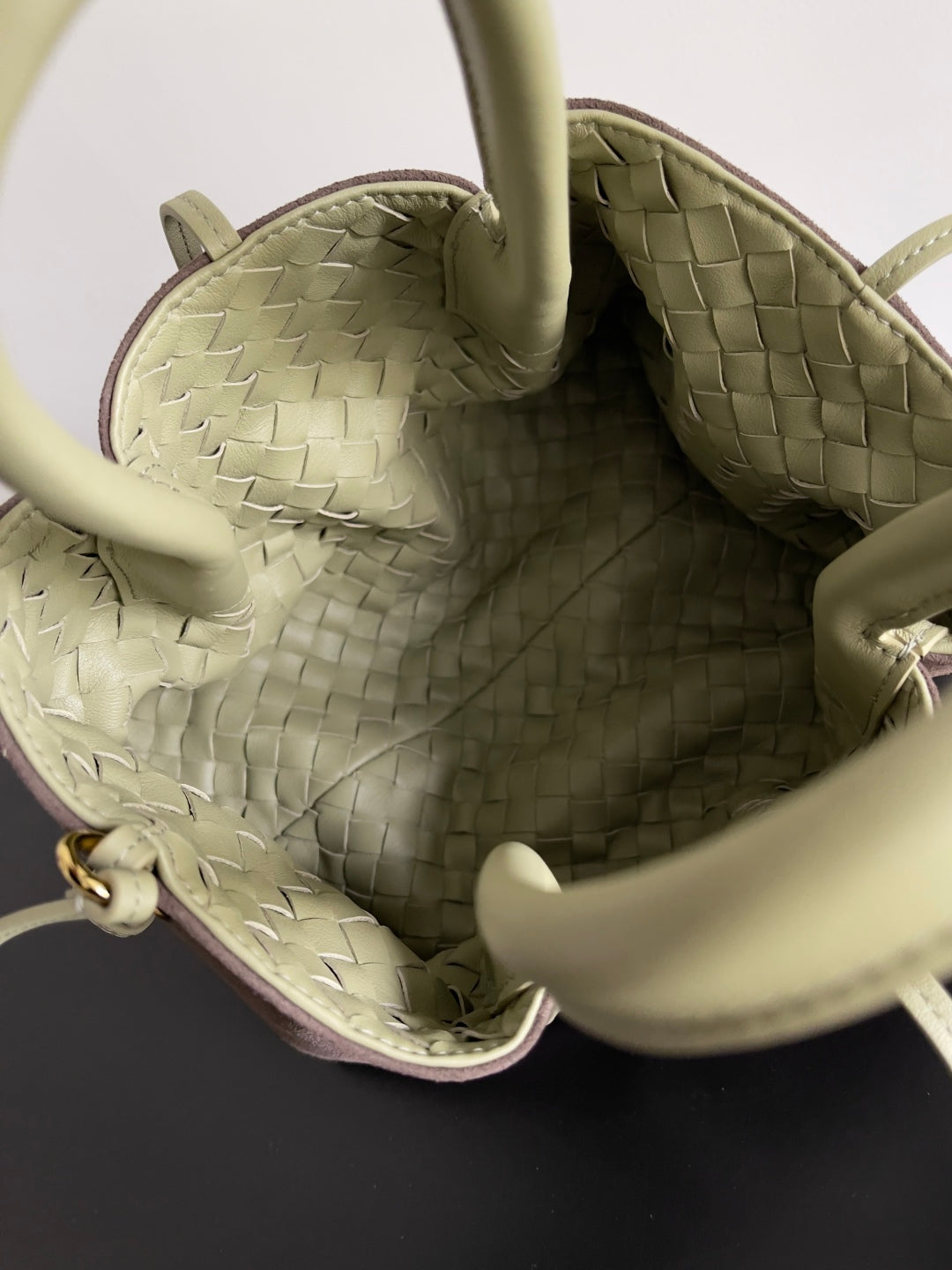SMALL PINACOTECA REVERSIBLE TOTE BAG 24 IN MATCHA LAMBSKIN AND BROWN SUEDE