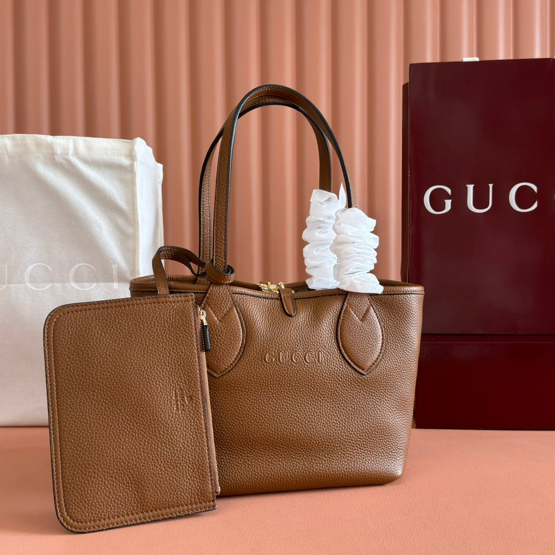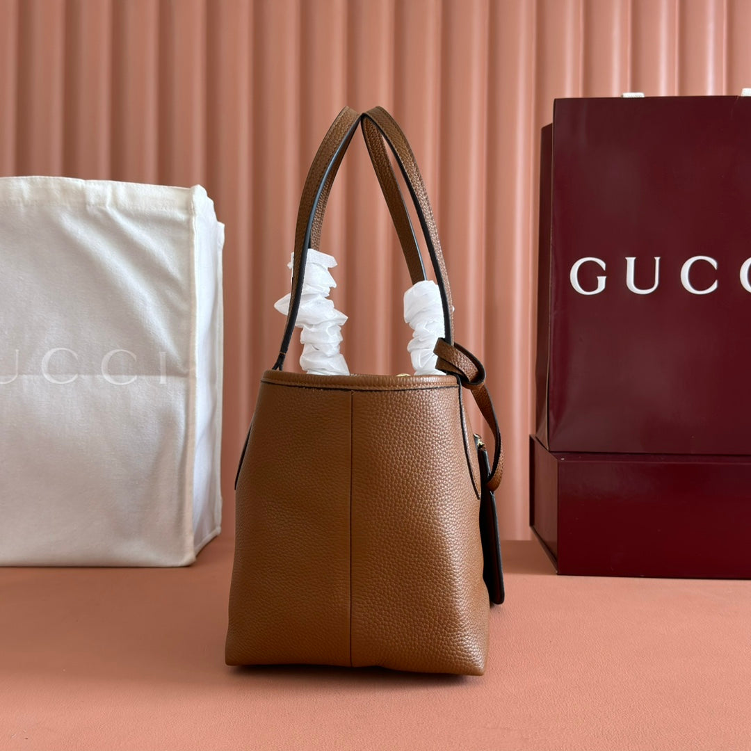 SMALL TOTISSIMA REVERSIBLE TOTE BAG 21 IN BROWN CALFSKIN BEIGE AND BROWN GG CANVAS ON SIDE