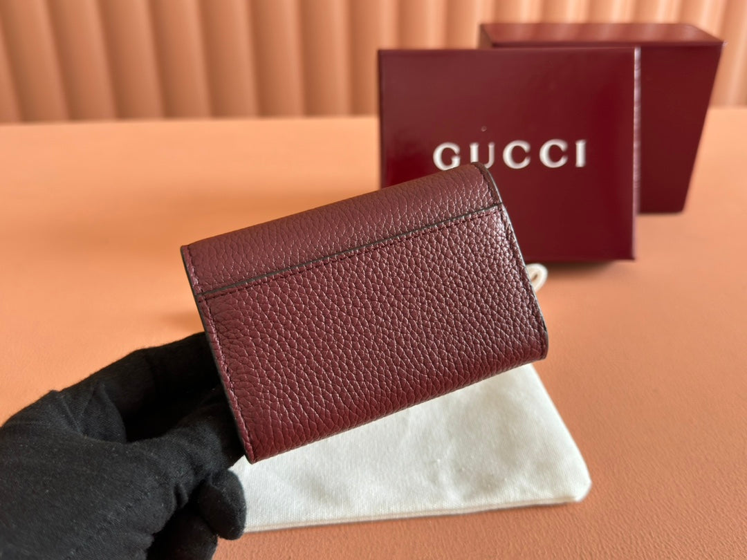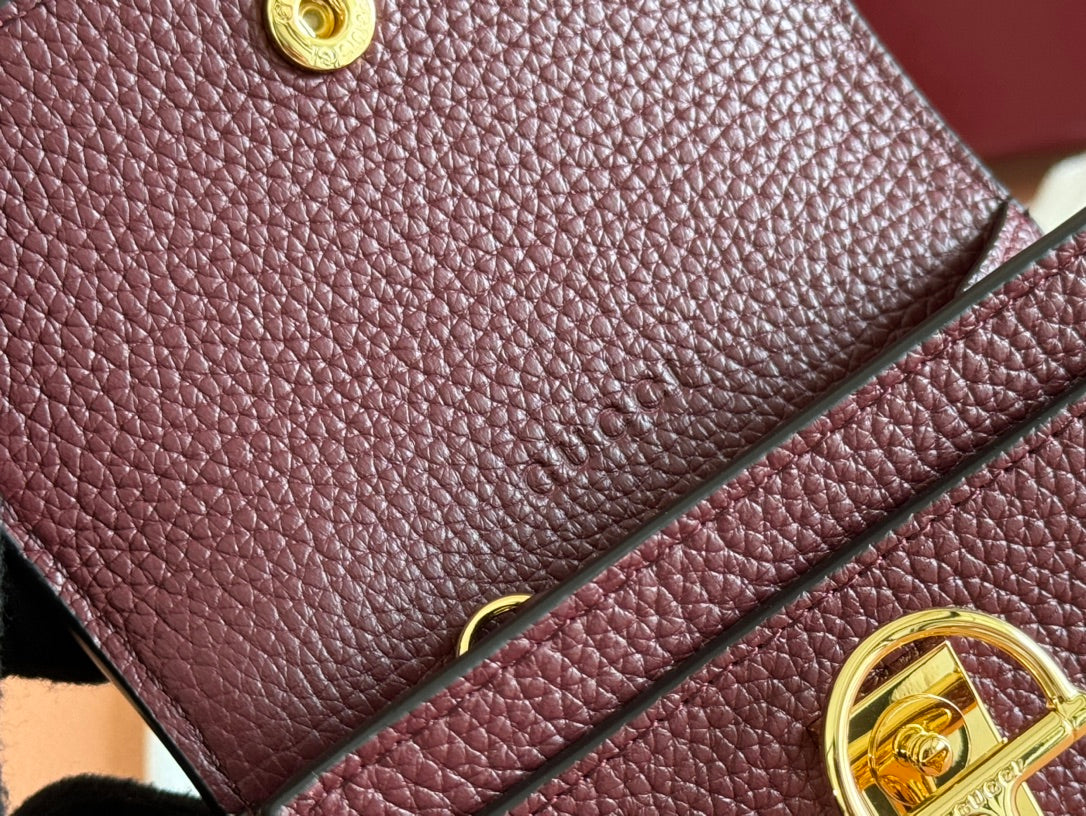 SOFTBIT CARD CASE 10.5 IN ROSSO ANCORA RED GRAINY CALFSKIN GOLD HARDWARE