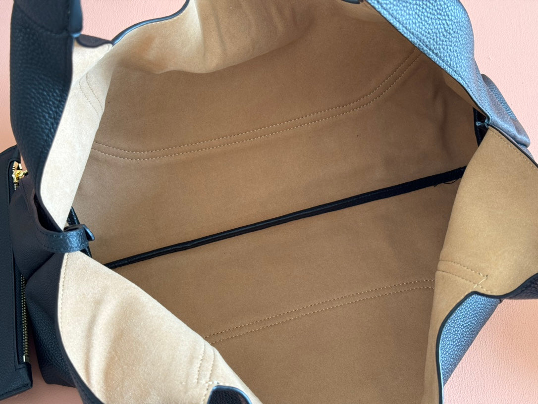 SOFTBIT MAXI SHOULDER BAG 46 IN BLACK GRAINY LAMBSKIN