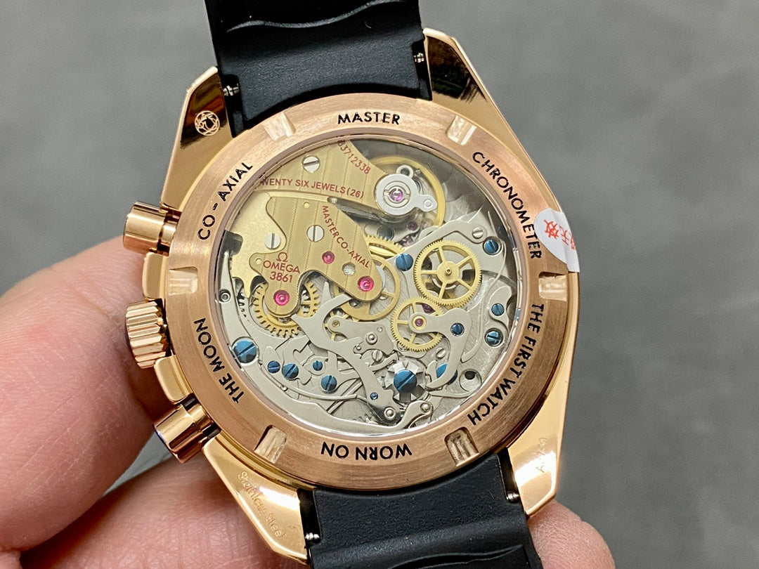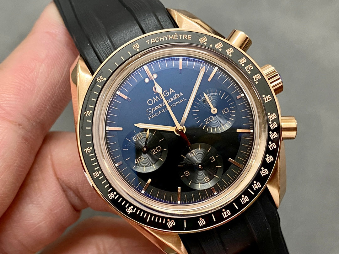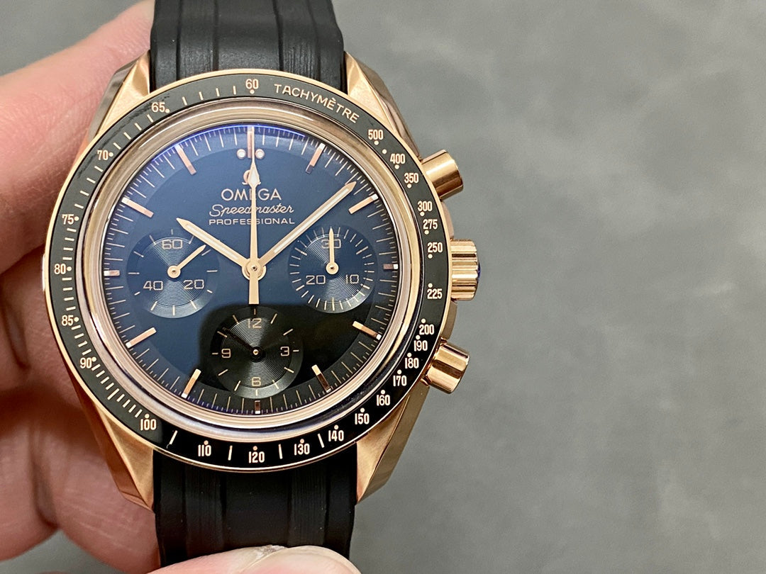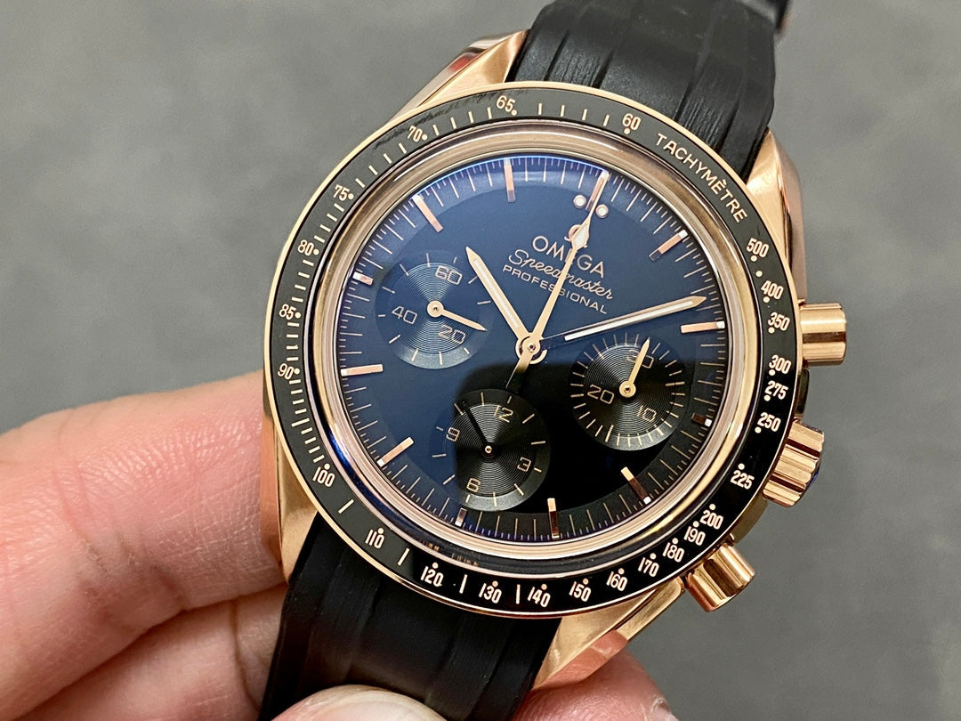 SPEEDMASTER MOONPHASE ROSE GOLD CASE AND BLACK LEATHER STRAP