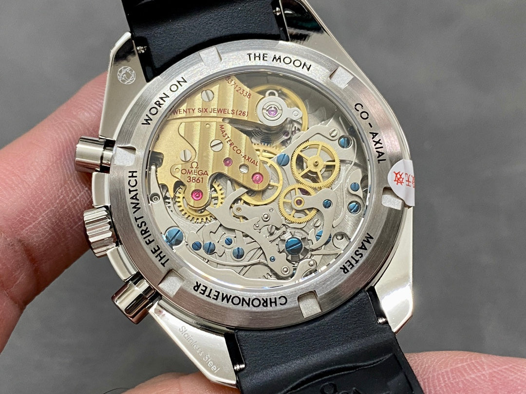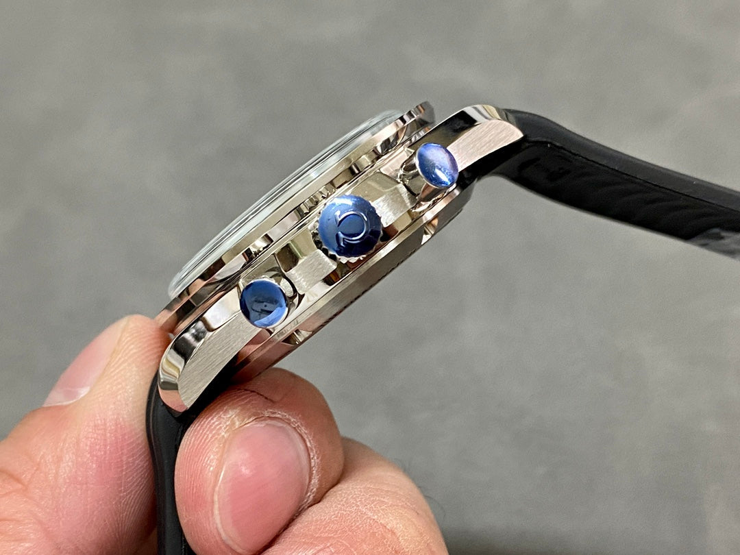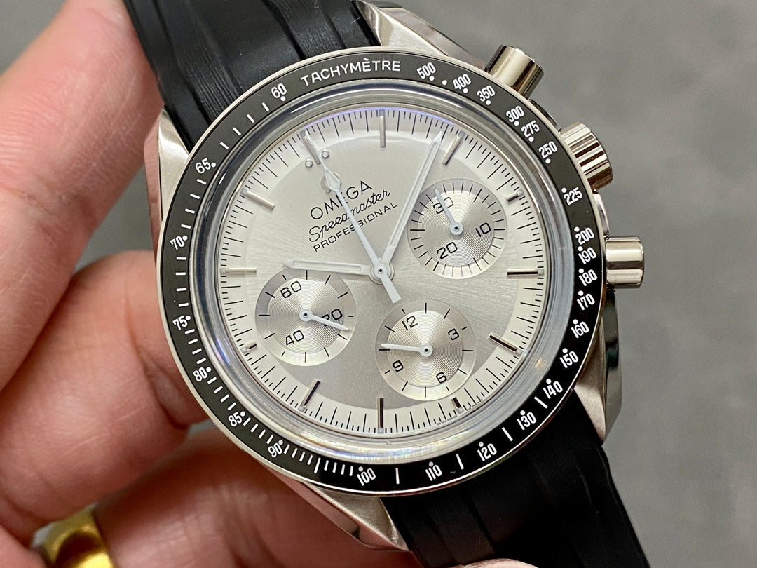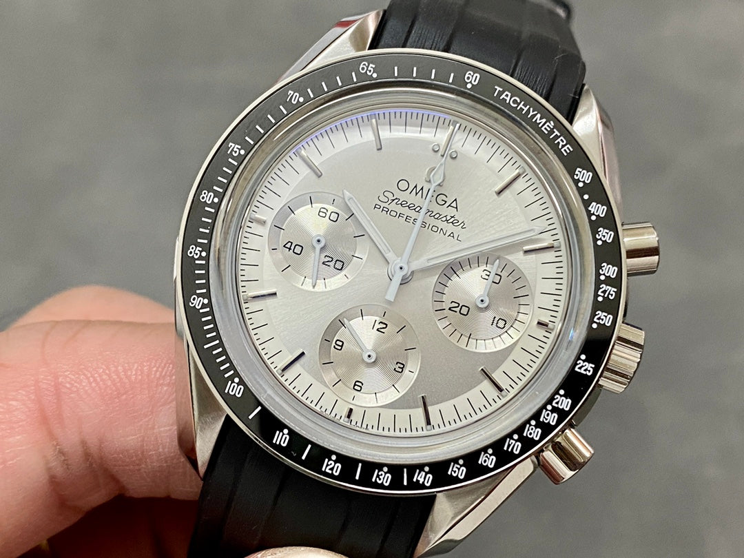 SPEEDMASTER MOONPHASE SILVER CASE AND BLACK LEATHER STRAP