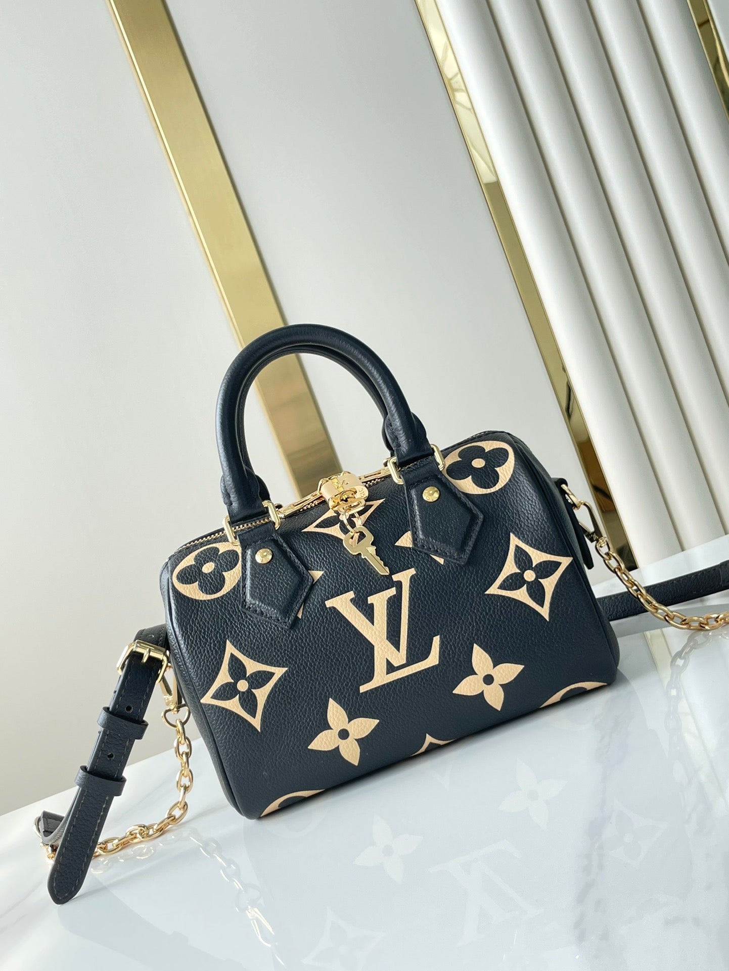 SPEEDY BANDOULIÈRE 20 IN BLACK CREAM MONOGRAM EMPREINTE LEATHER GOLD HARDWARE
